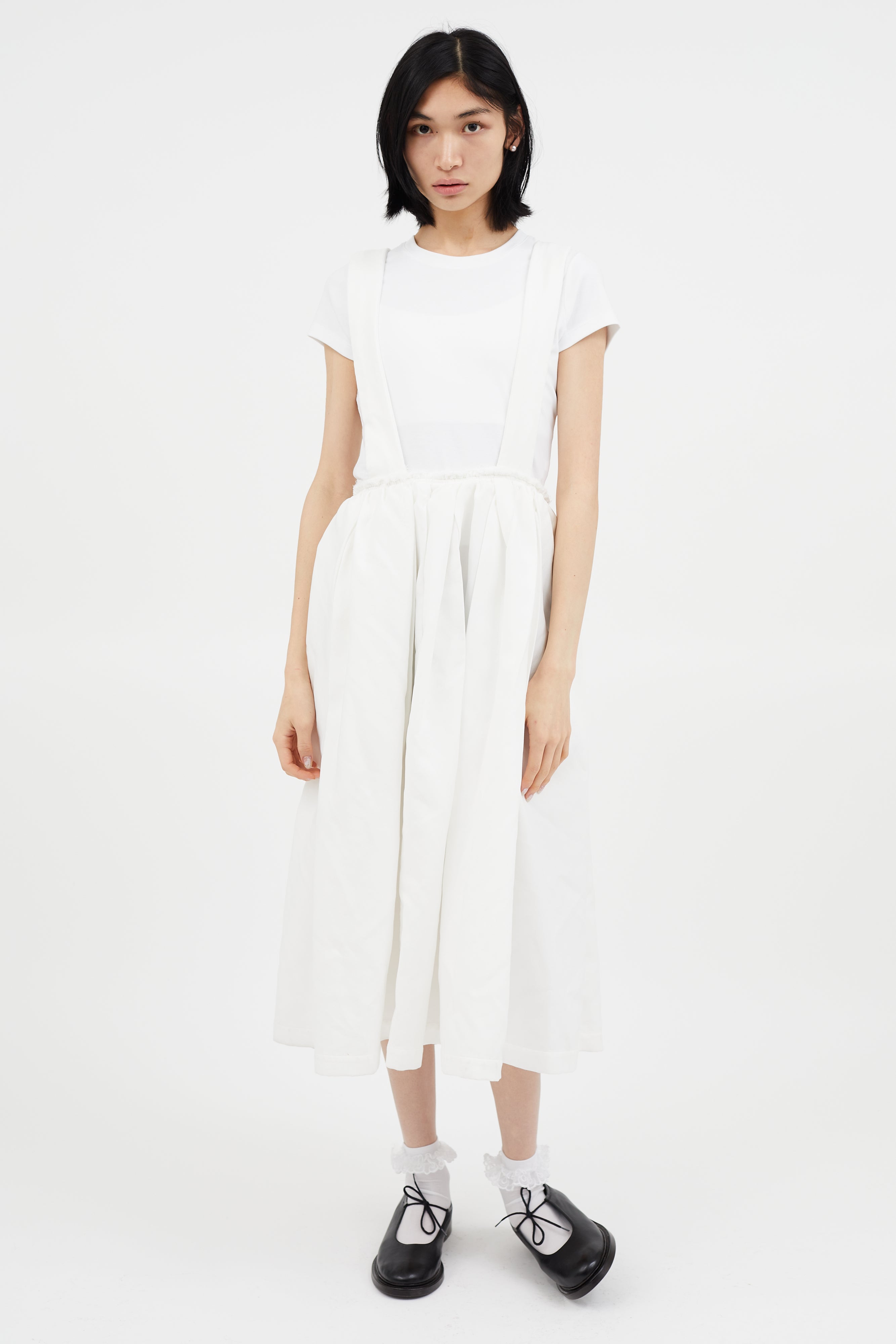 White Raw Hem Suspender Skirt Small Size Guide