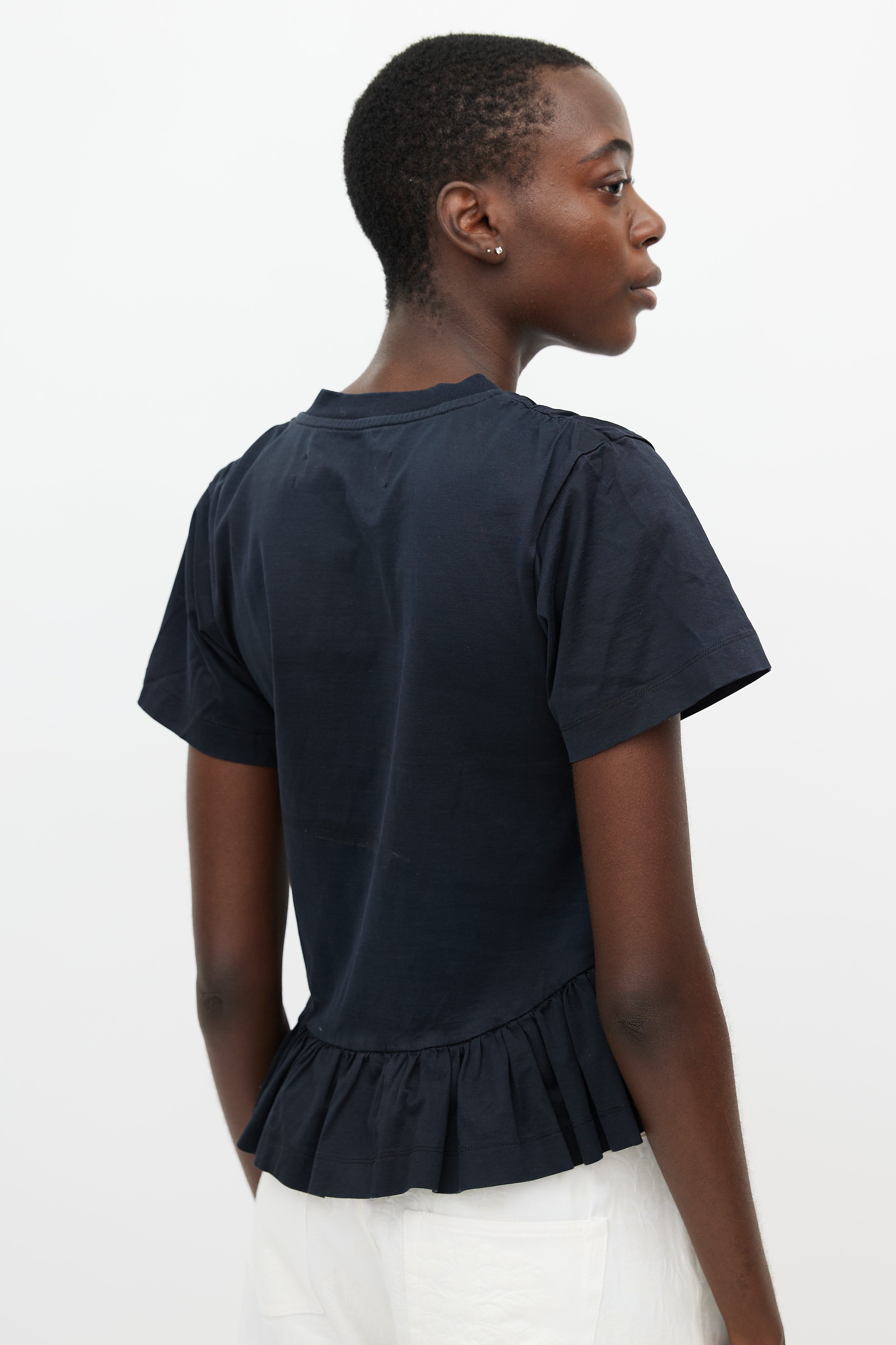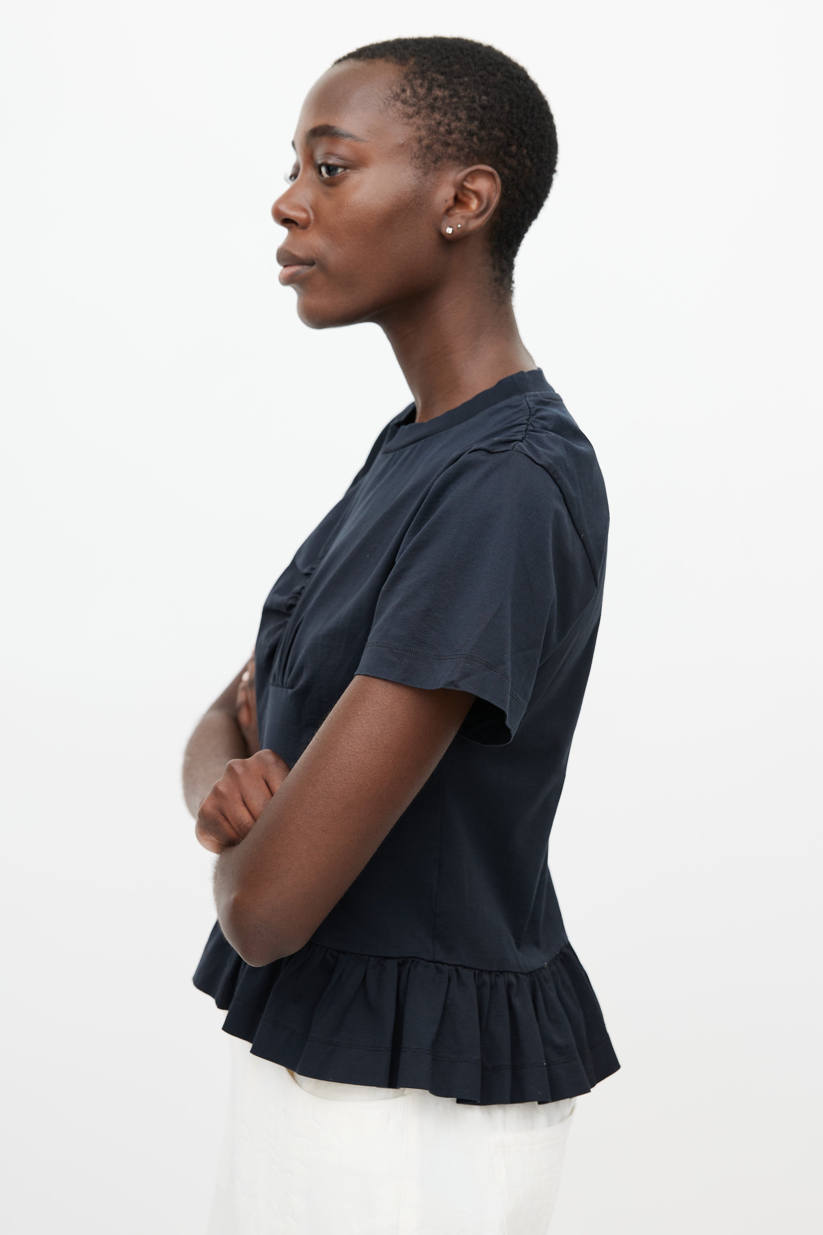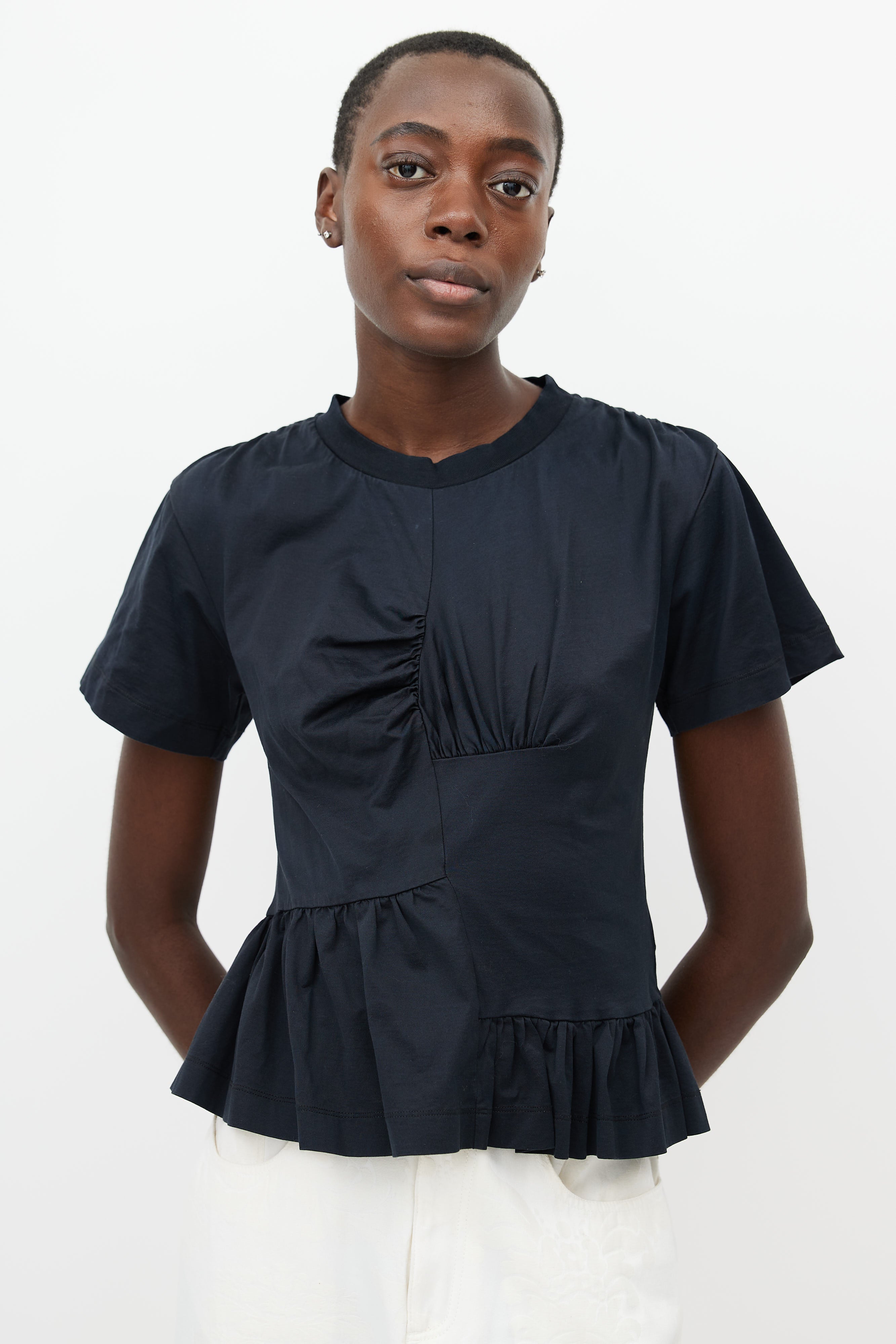 Pre-owned Marques Almeida black T-shirt featuring crew neckline, short sleeves, and asymmetrical gathered panel detail.