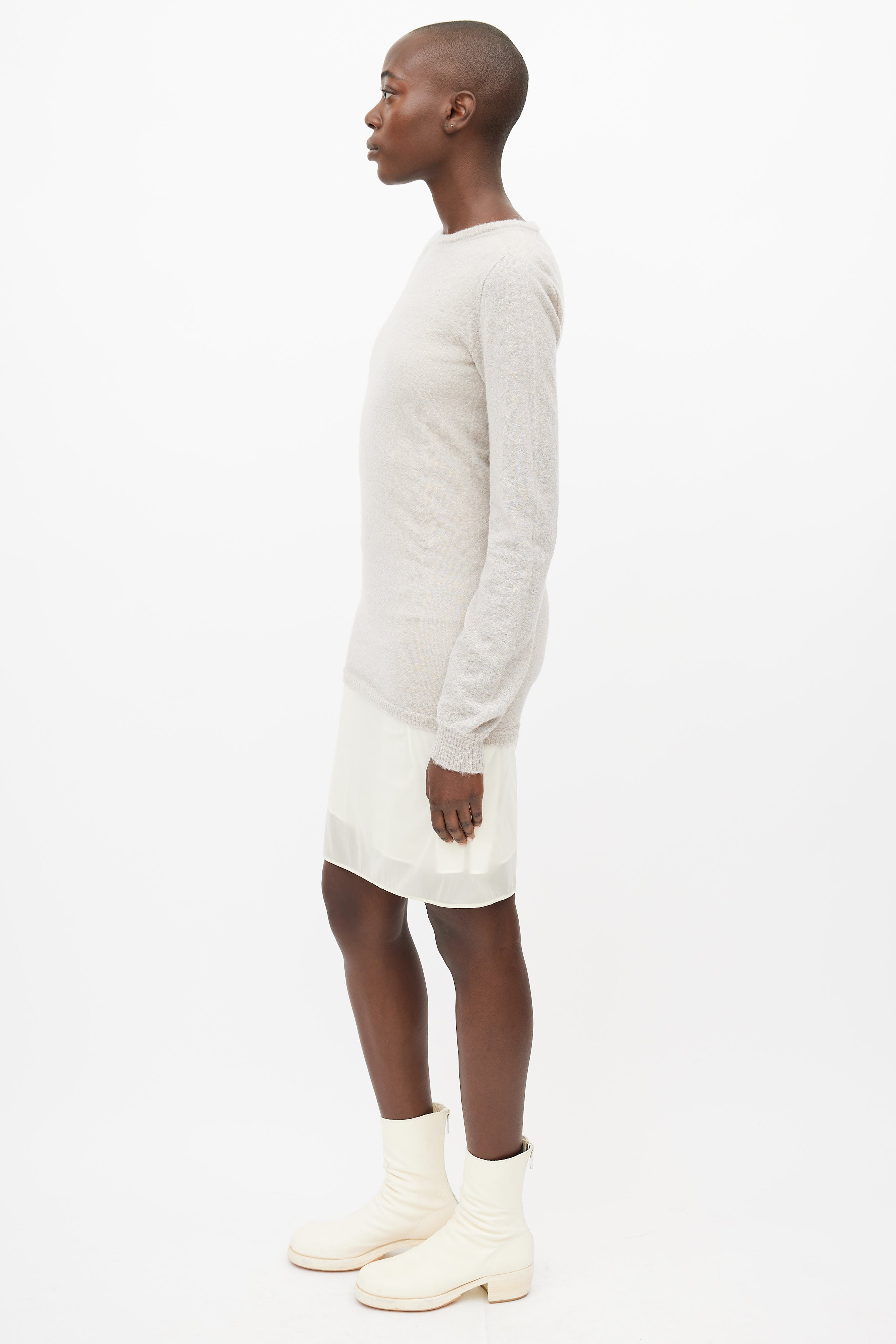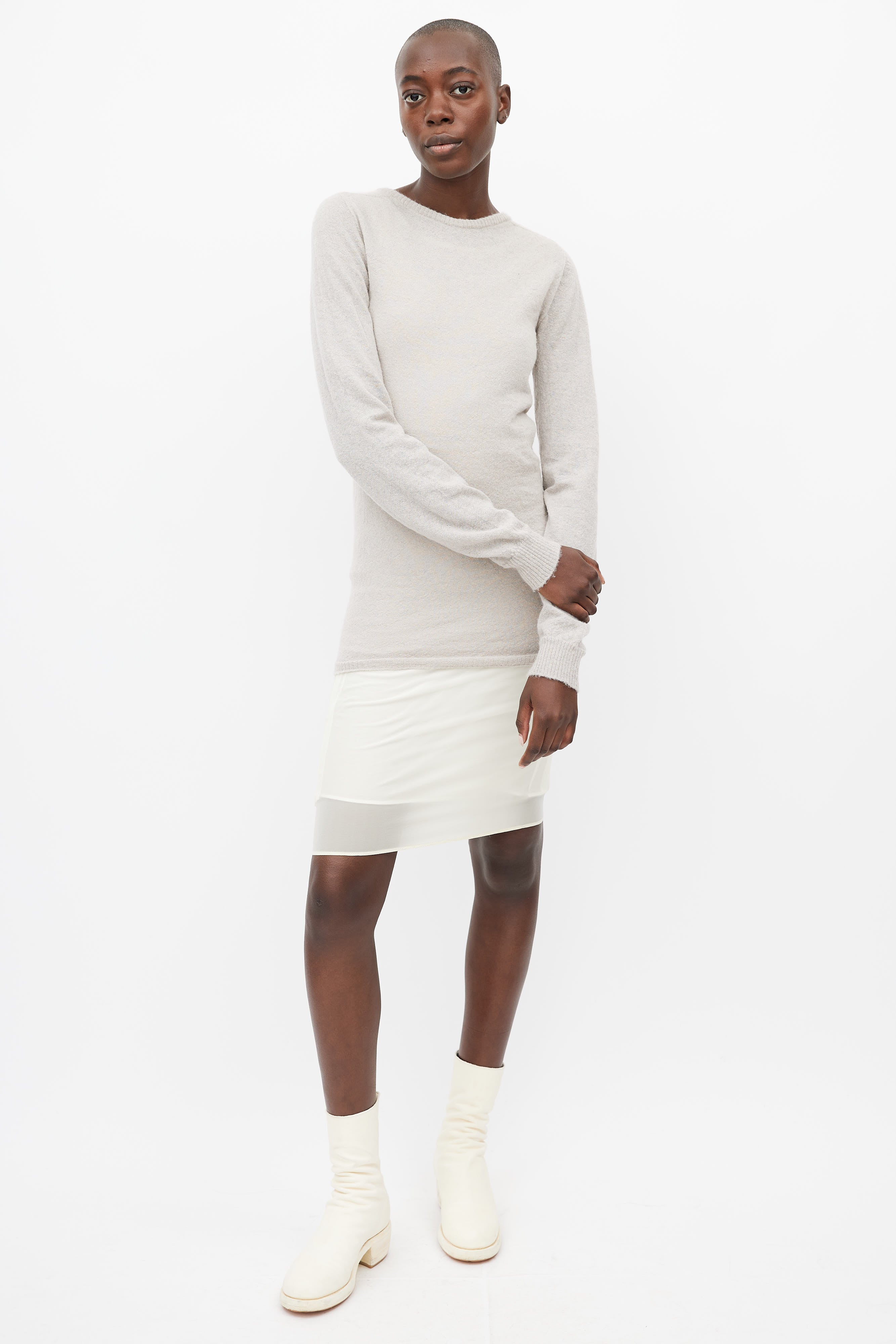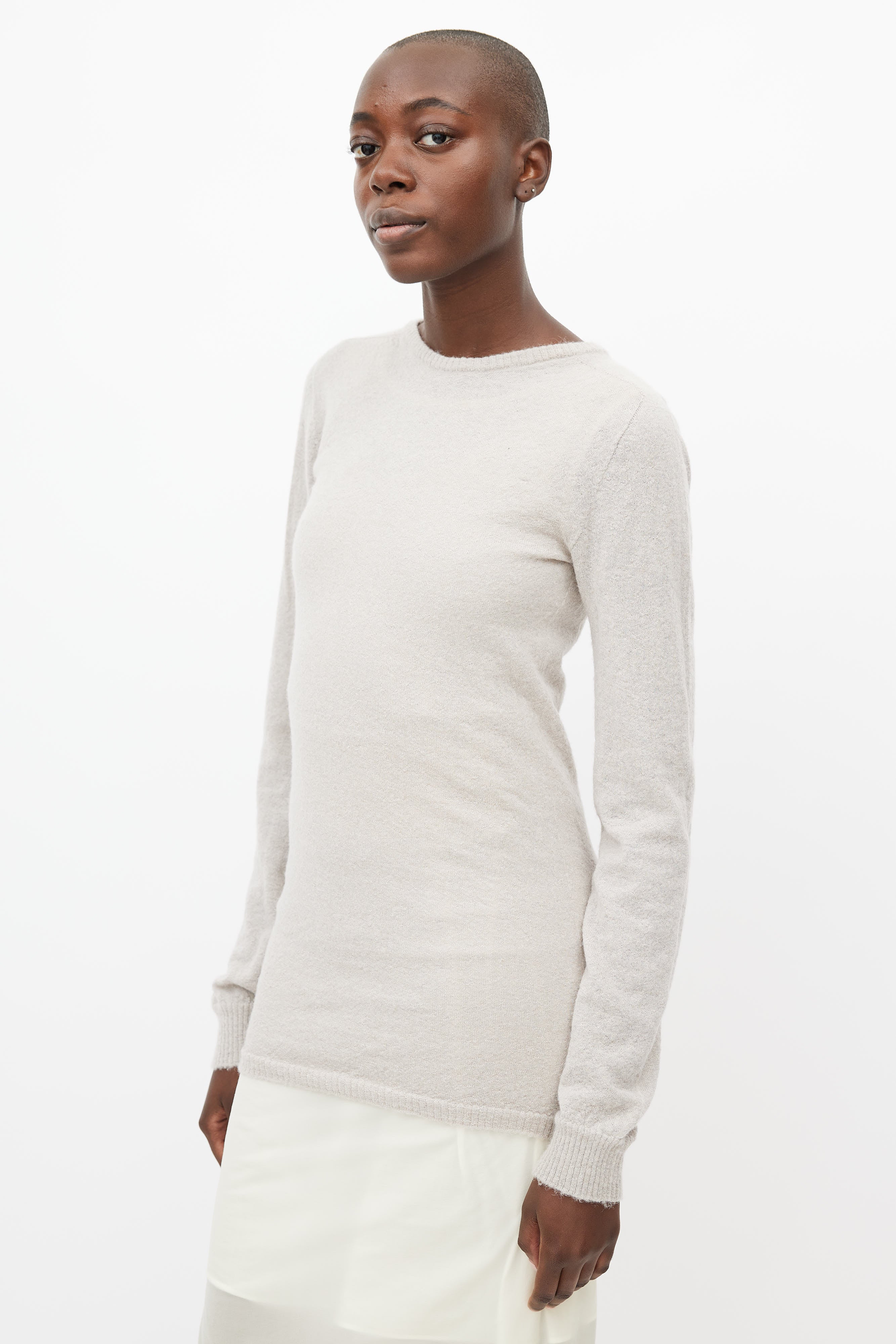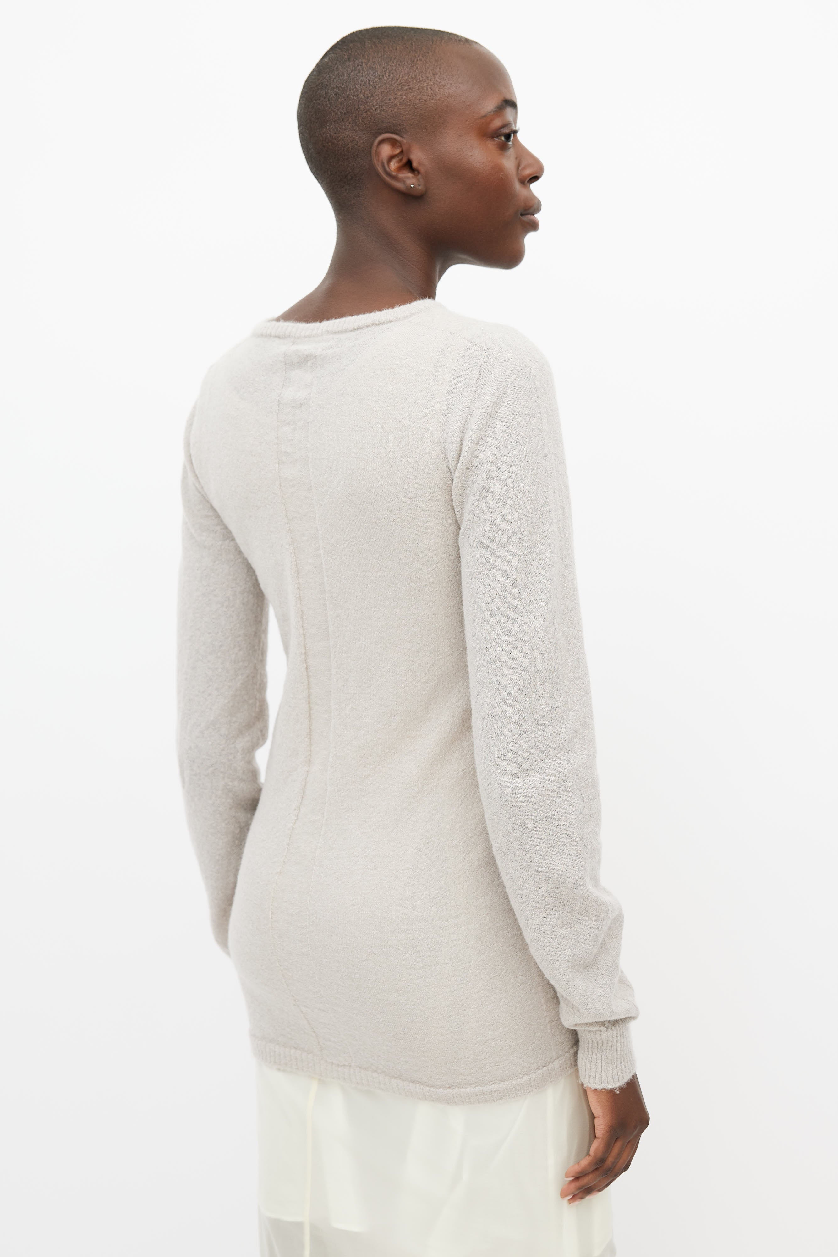 Pre-owned F/W 2018 Rick Owens grey Sisyphus knit sweater featuring a round neckline, long sleeves, and ribbed hem.