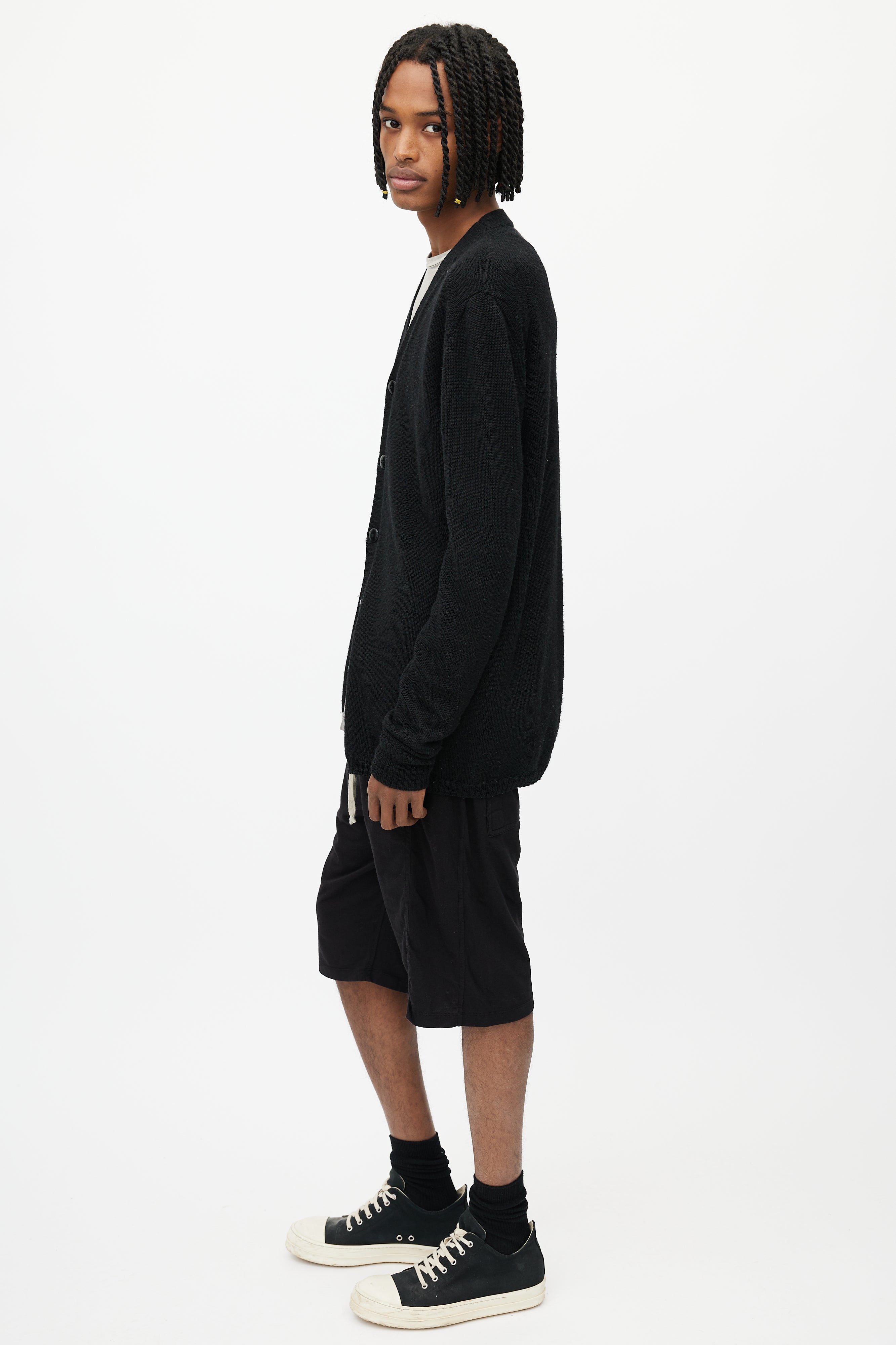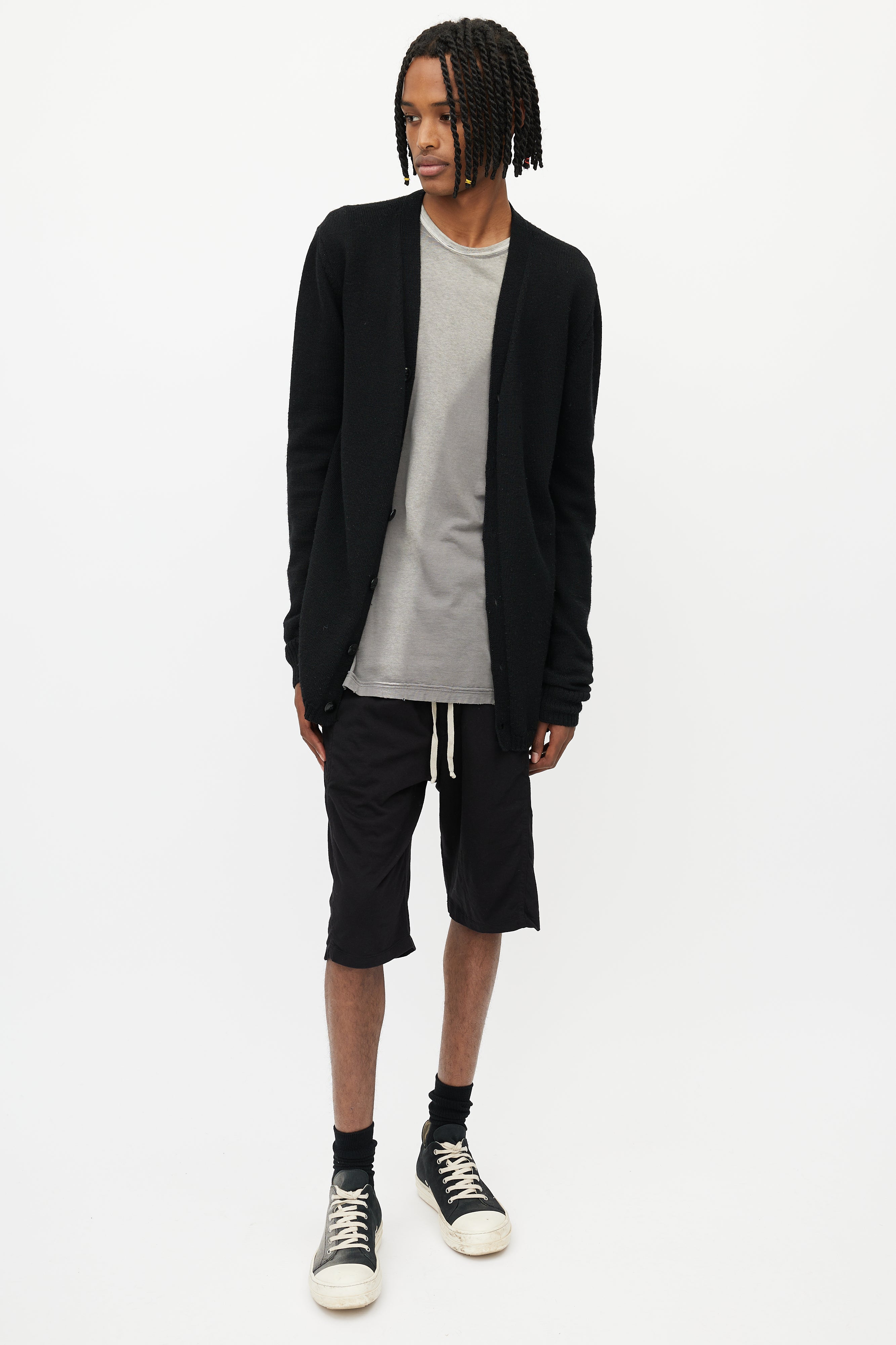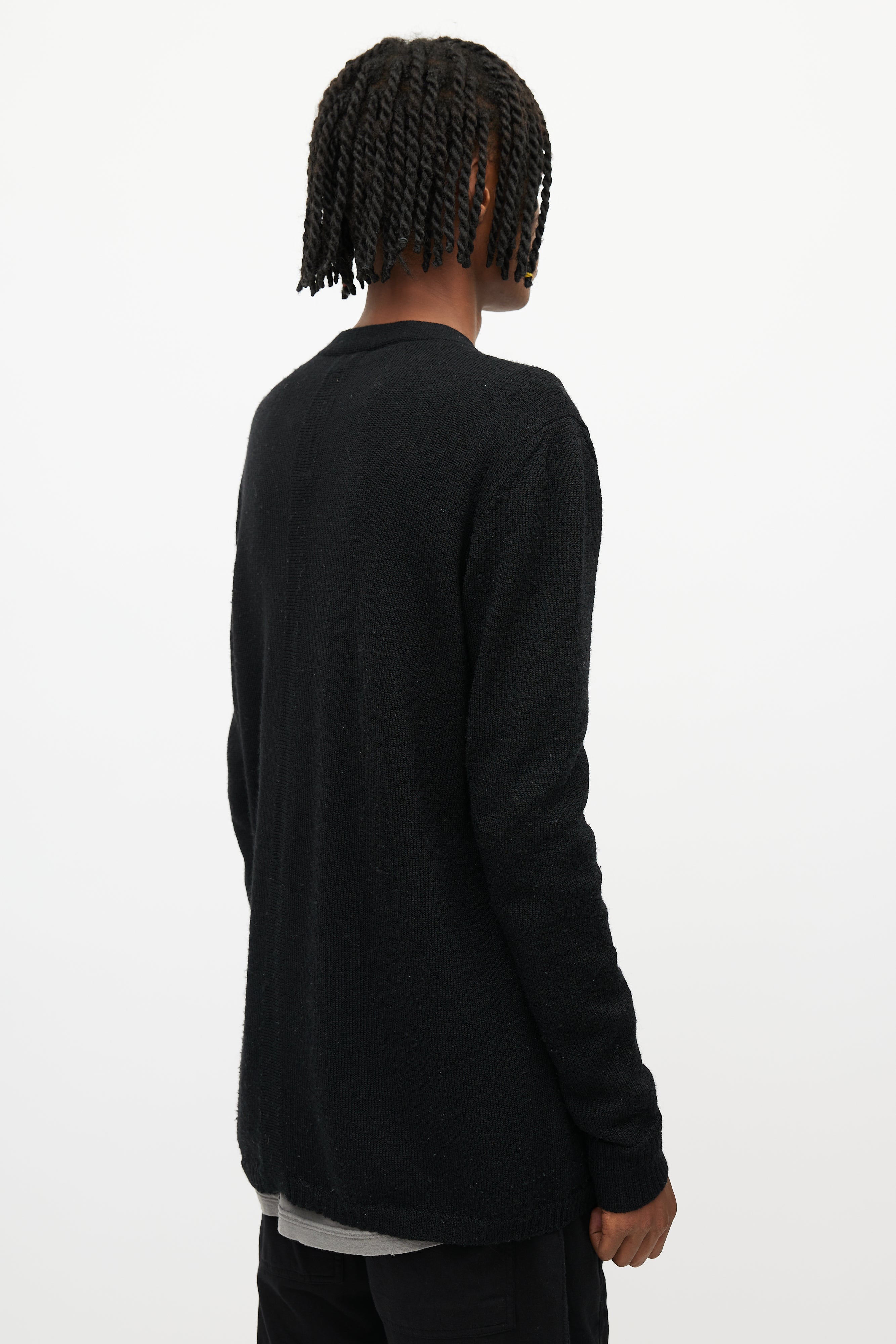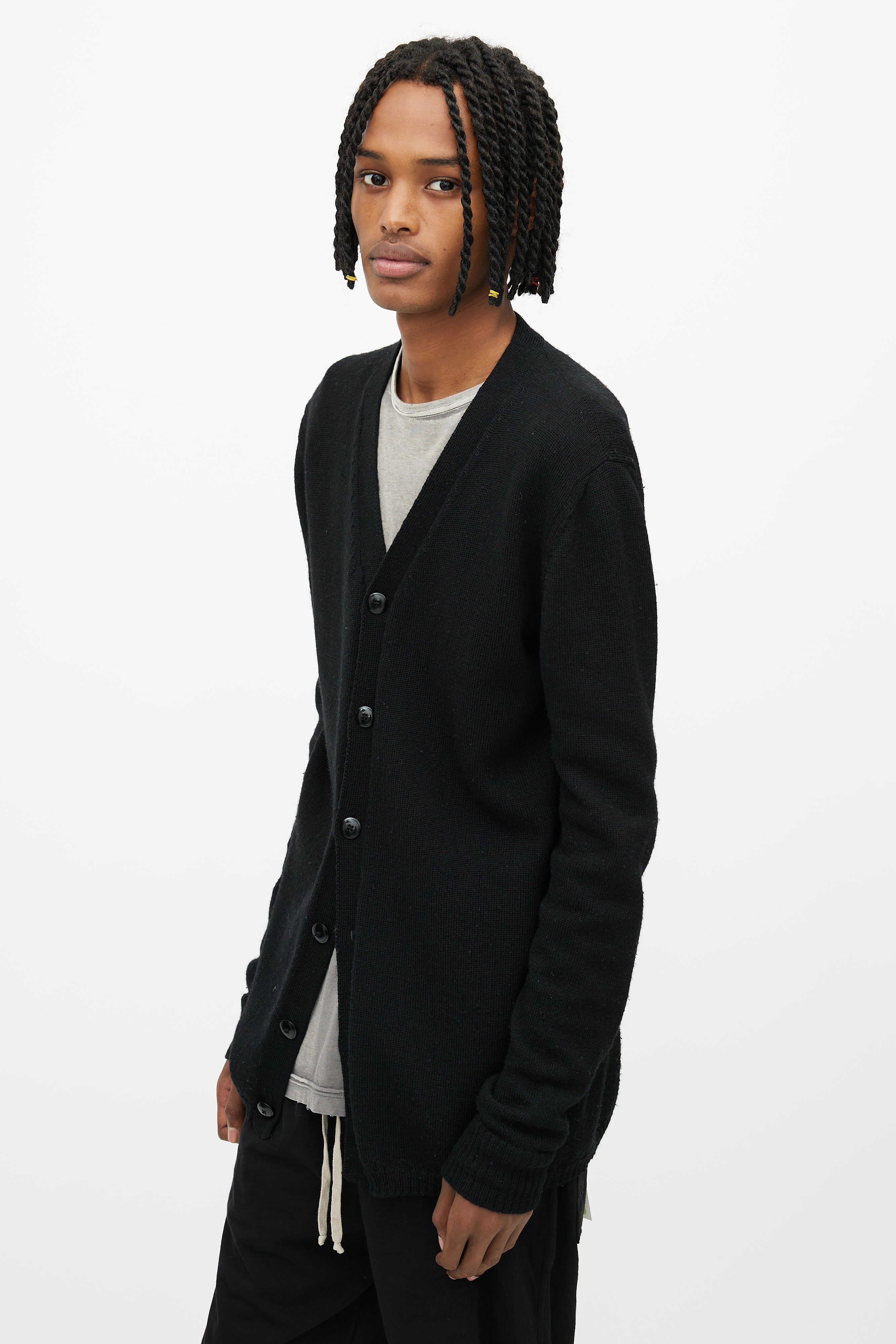 Pre-owned Fall 2013 Rick Owens black long cardigan featuring V-neckline, long sleeves, and button up front.