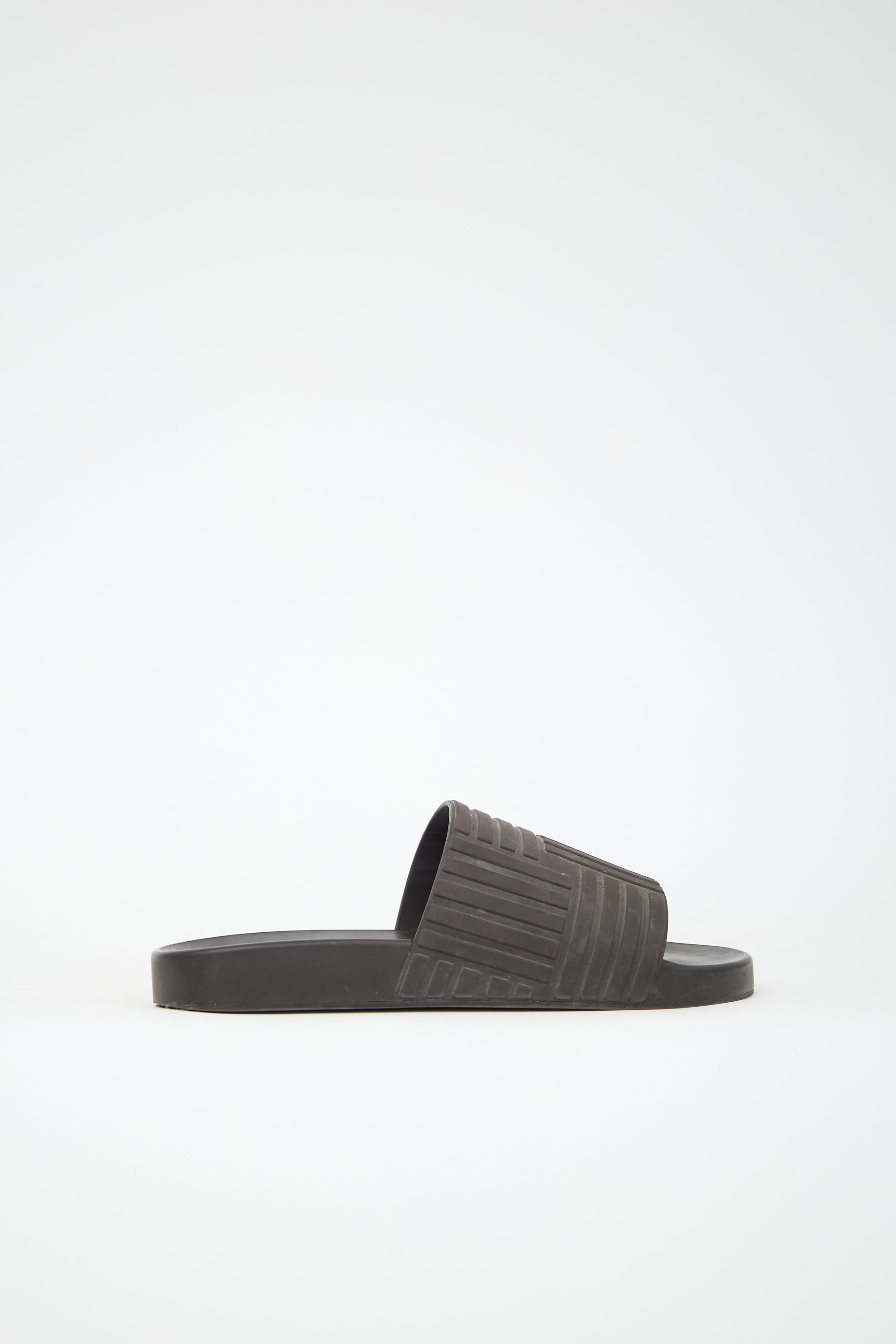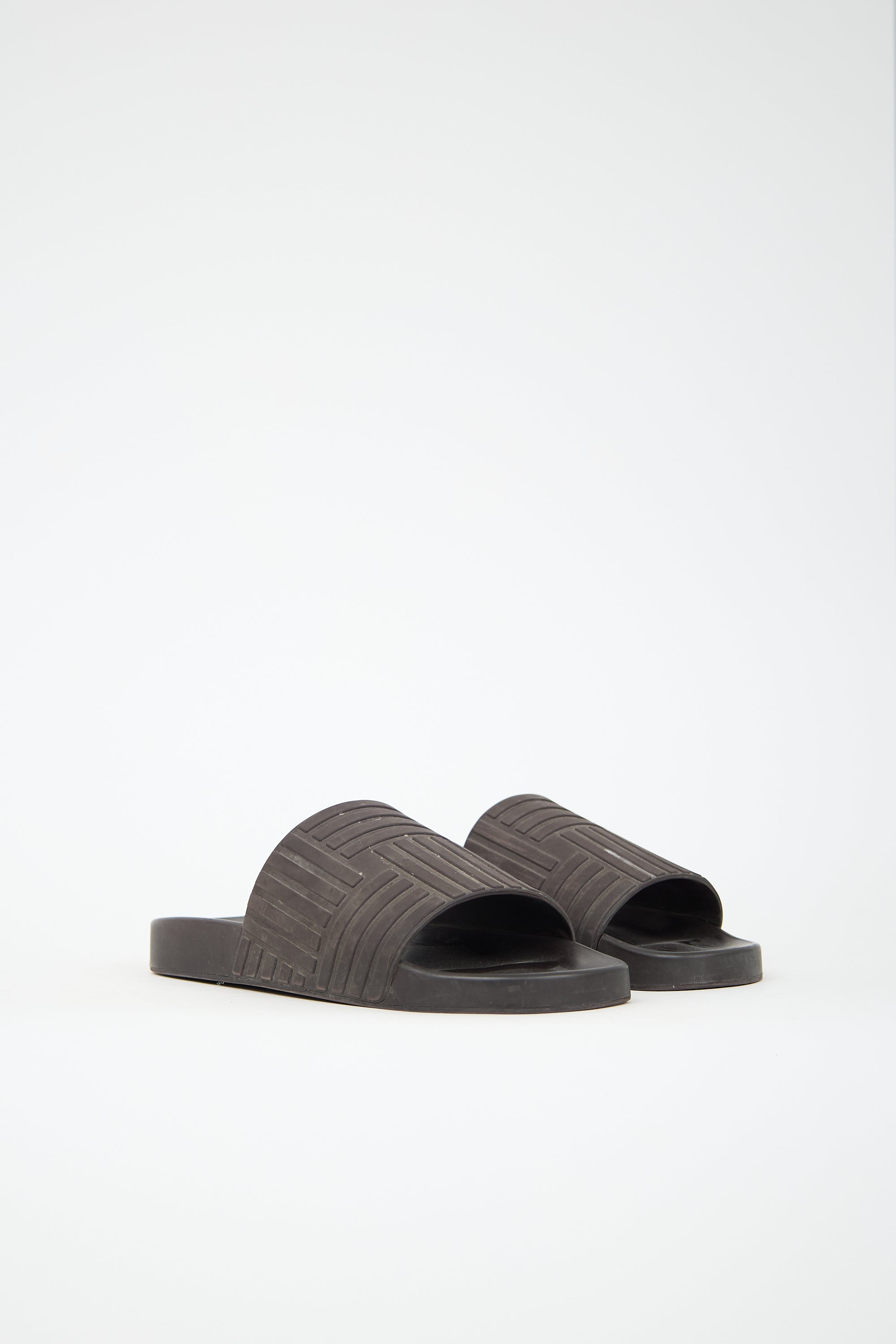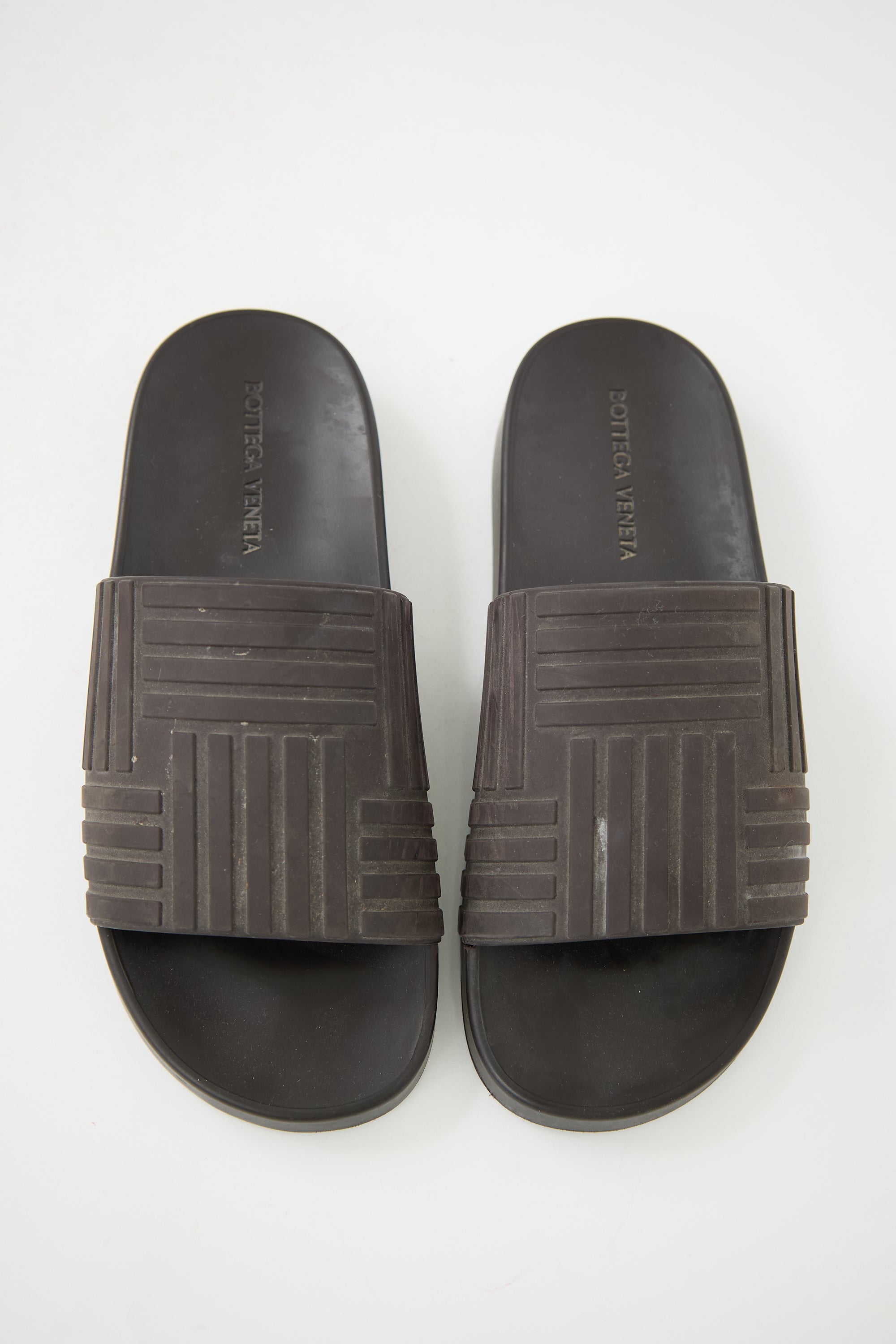 Pre-owned Bottega Veneta brown rubber Slider sandals featuring a rounded open toe, embossed upper, and slip on entry.