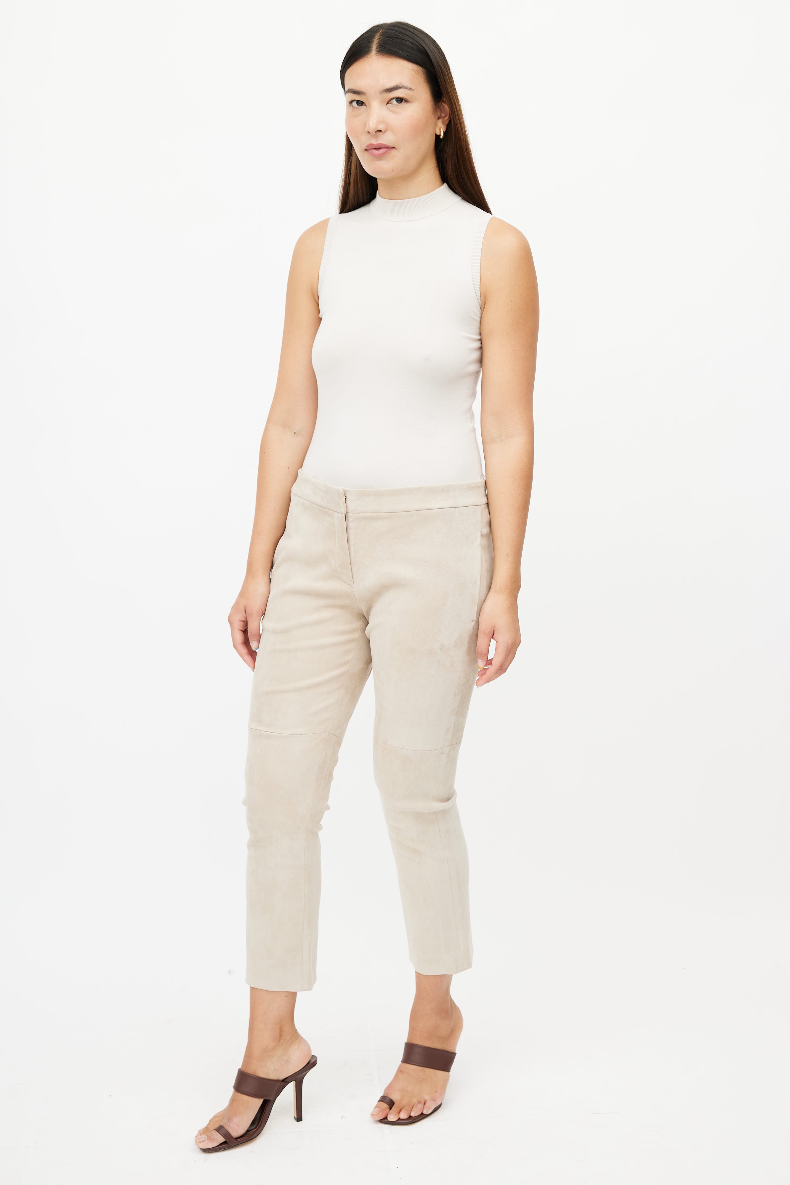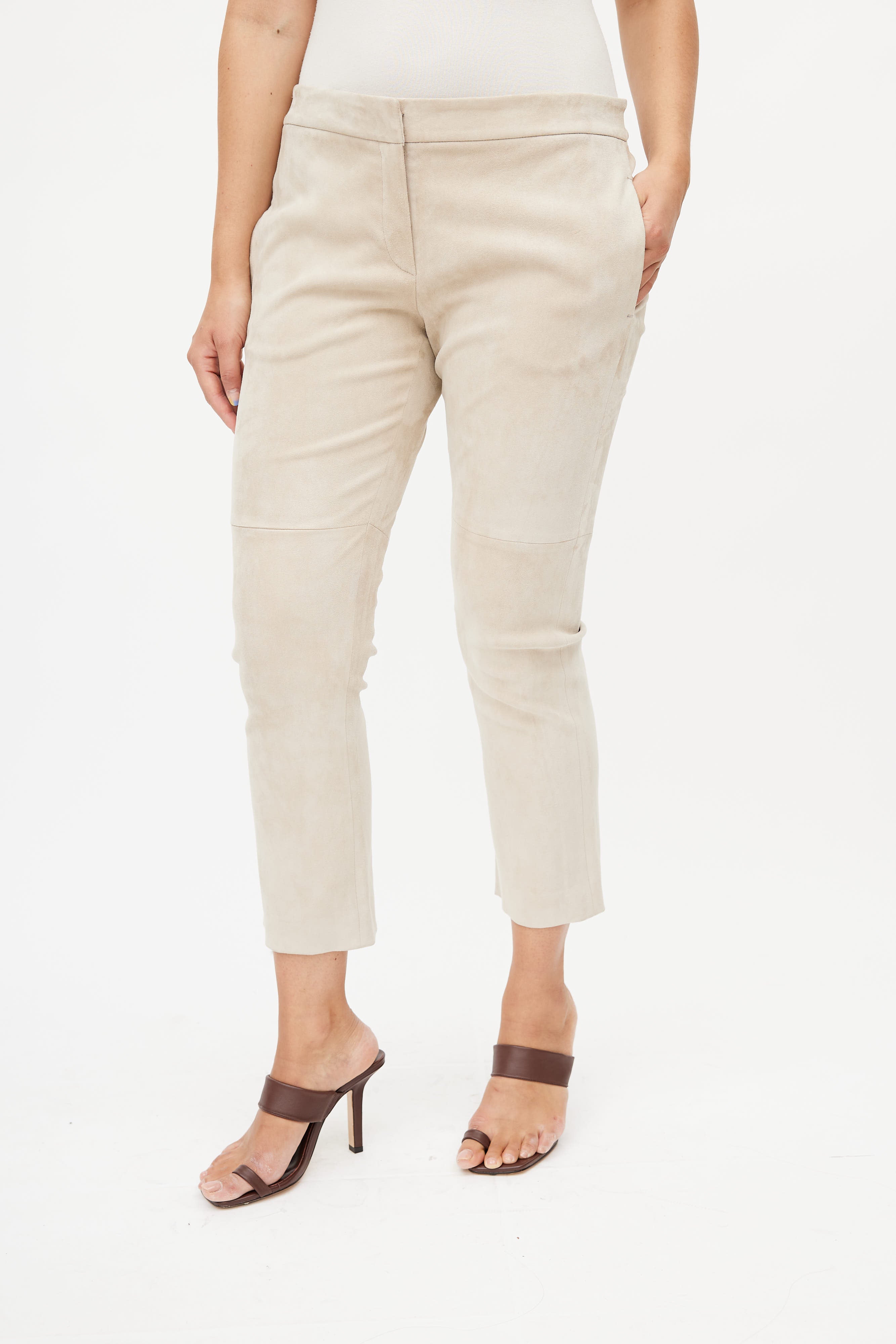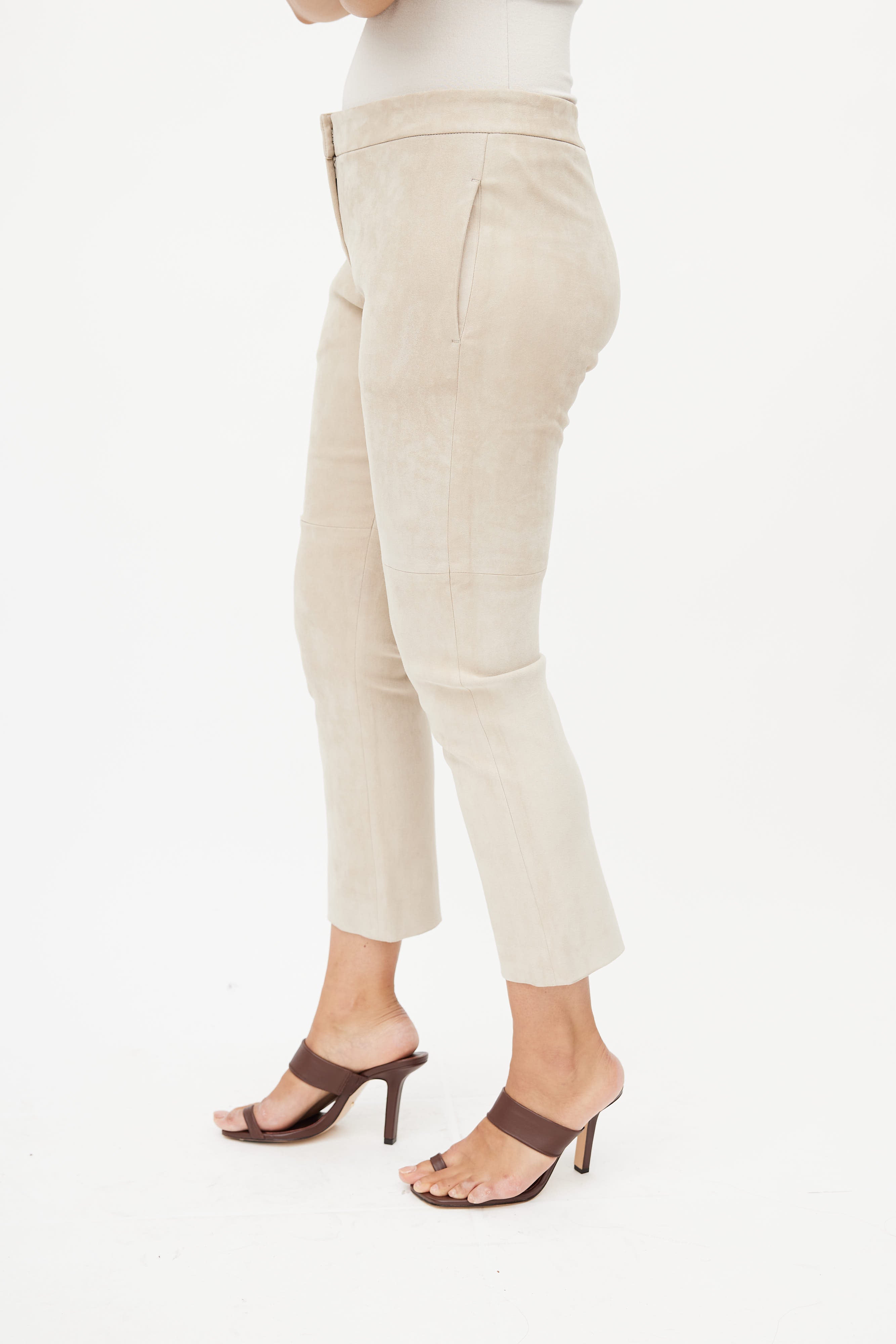 Beige Suede Cropped Trouser IT 46 Size Guide