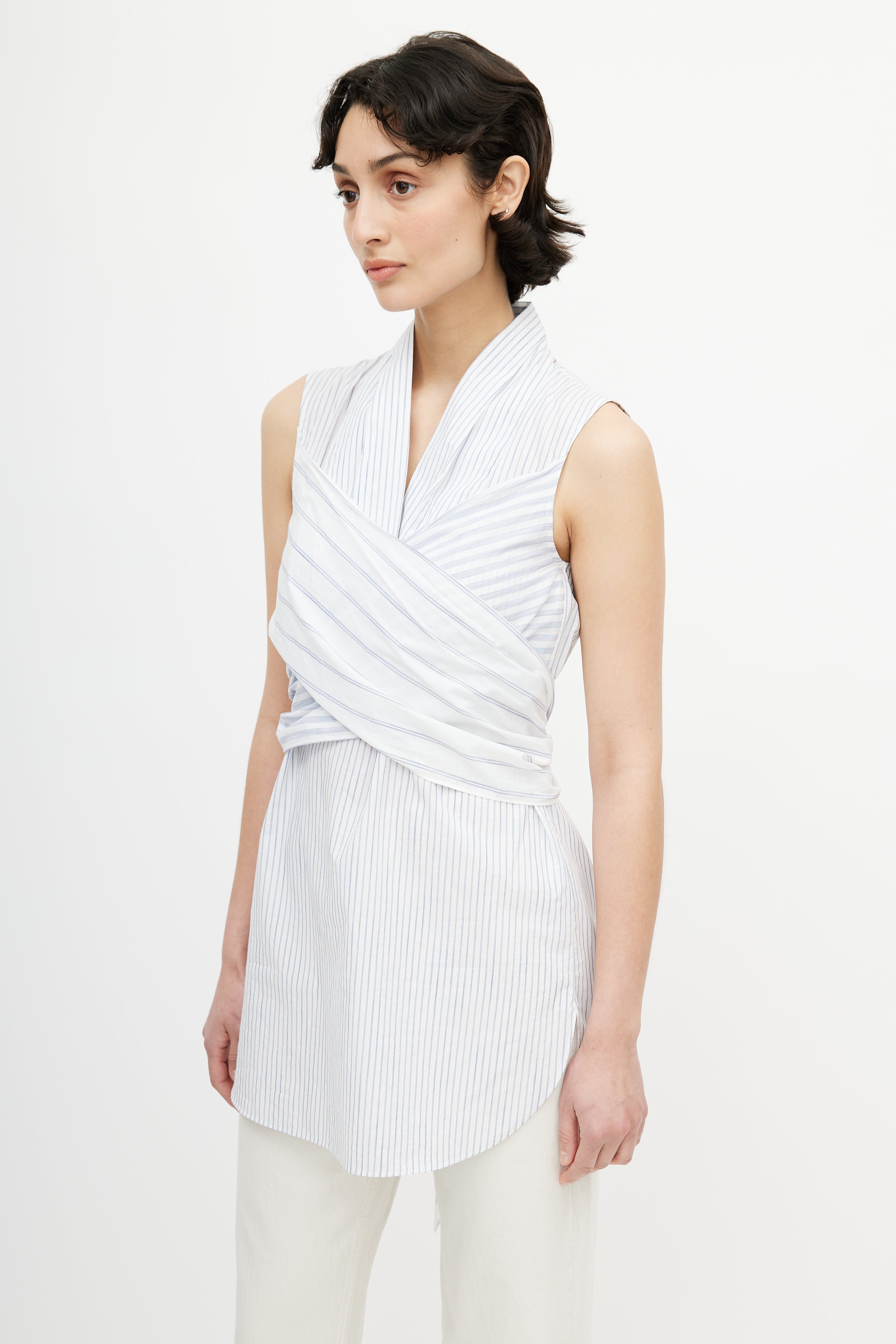 Blue & White Criss Cross Wrap Tunic X-Small Size Guide