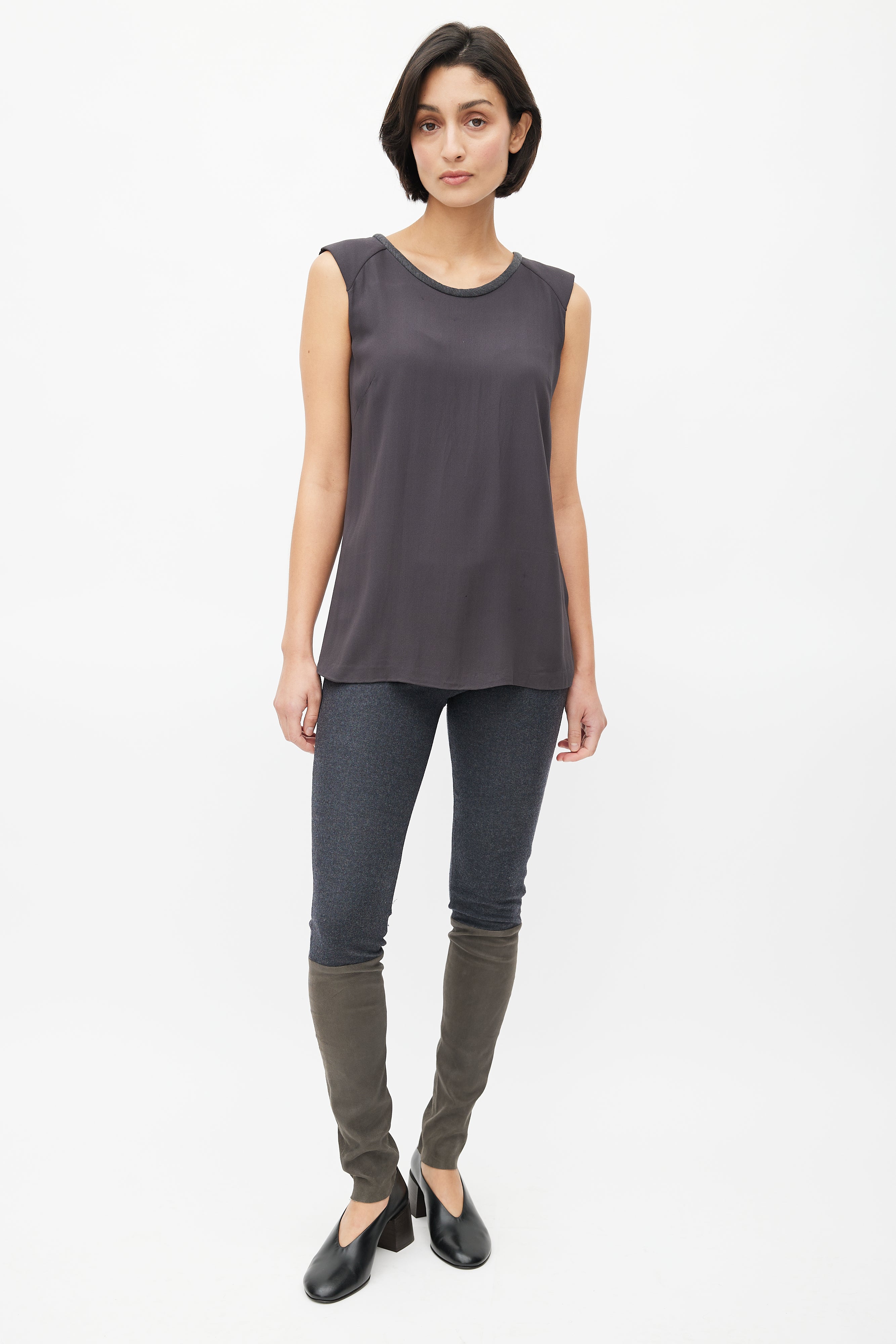 Dark Grey Silk & Wool Trim Blouse Medium Size Guide