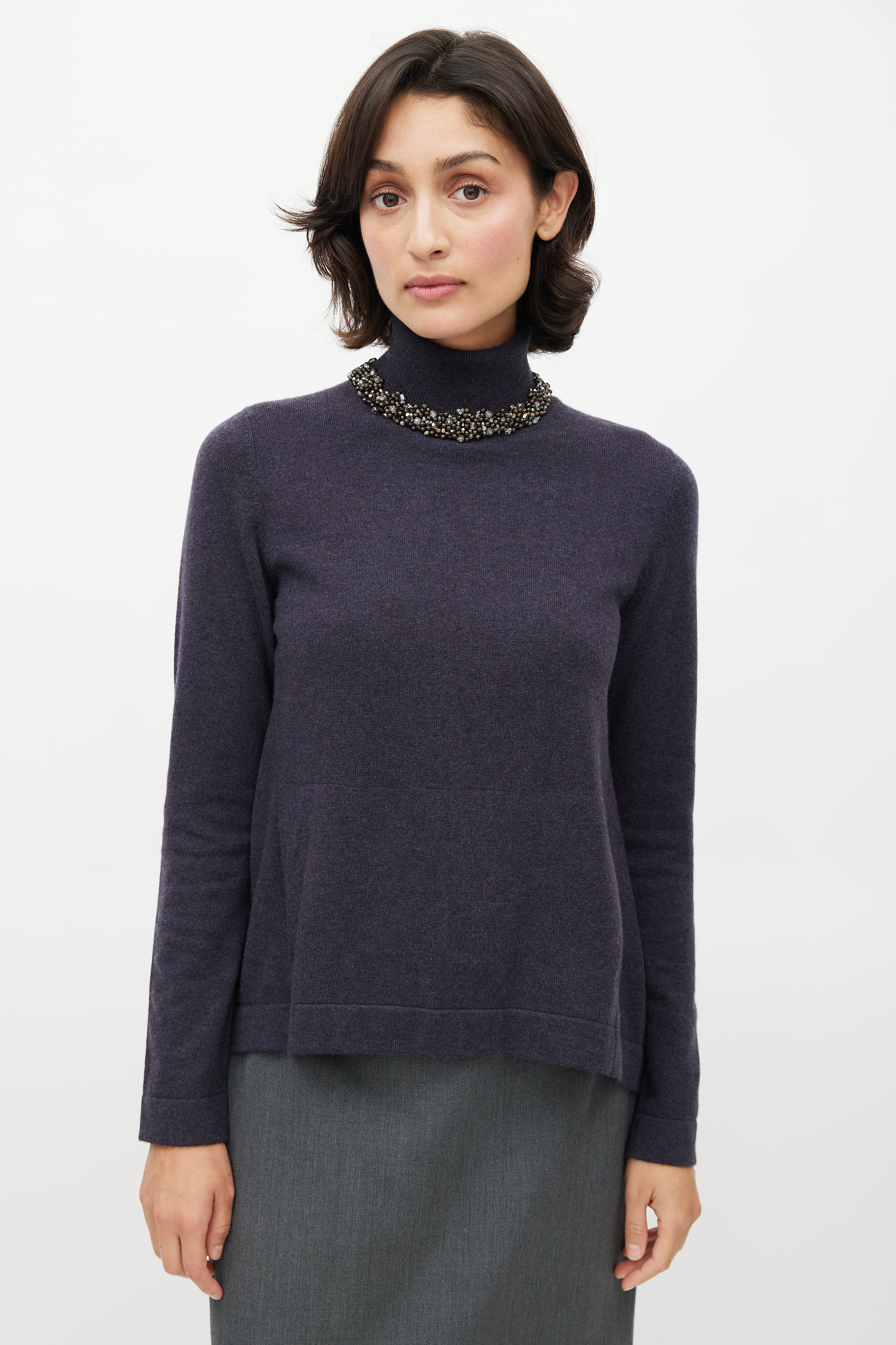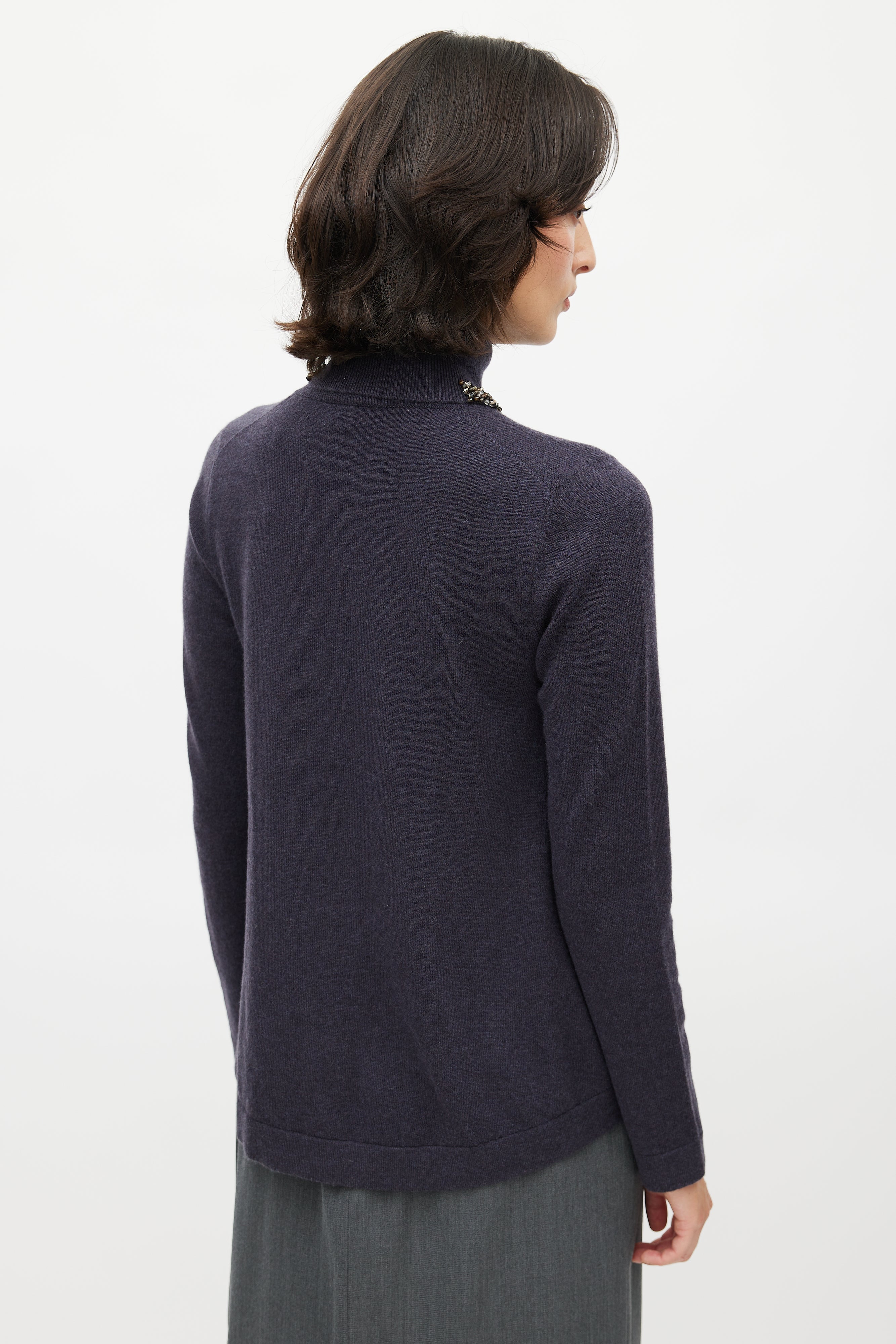 Navy Cashmere Jewel Embellished Turtleneck Small Size Guide