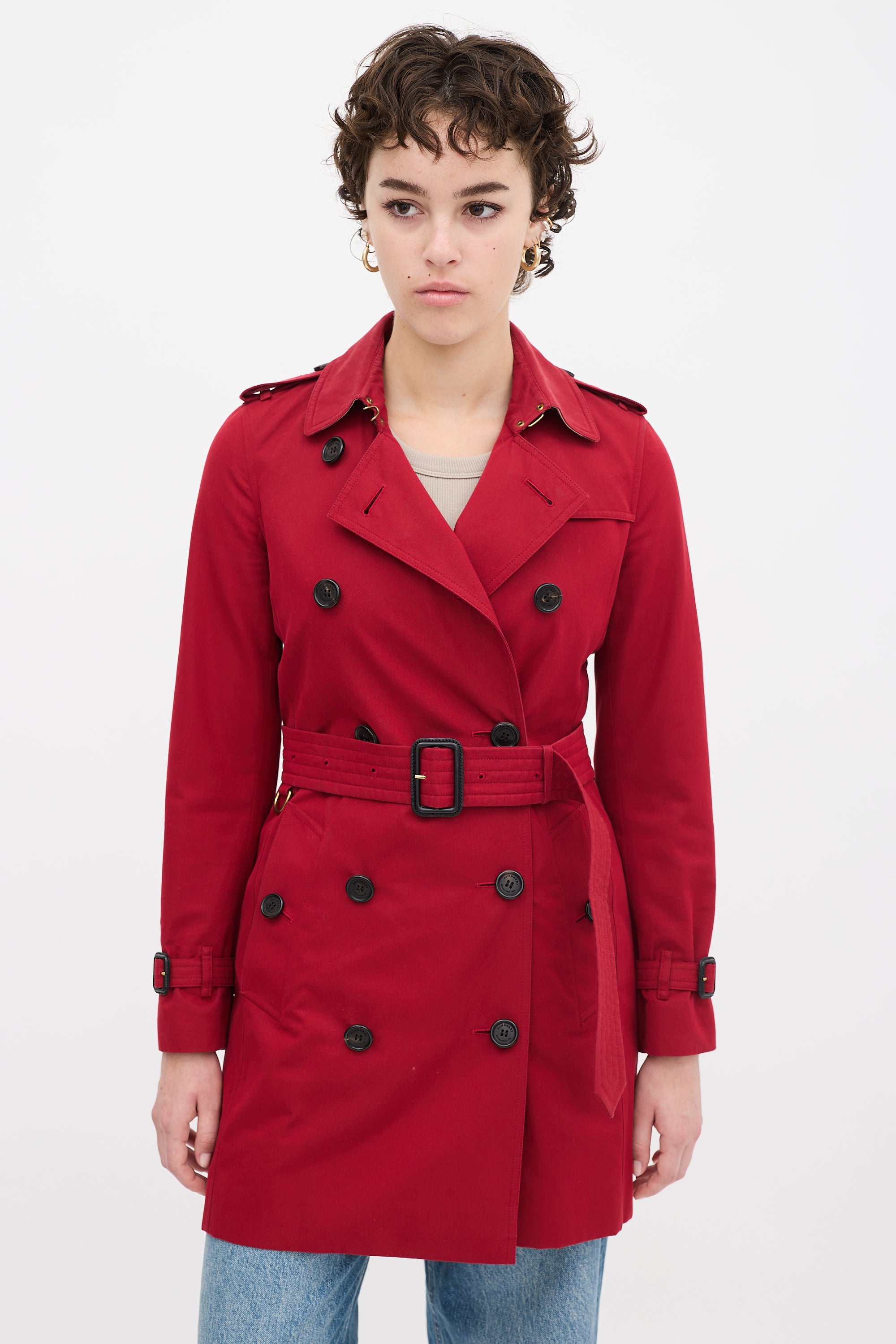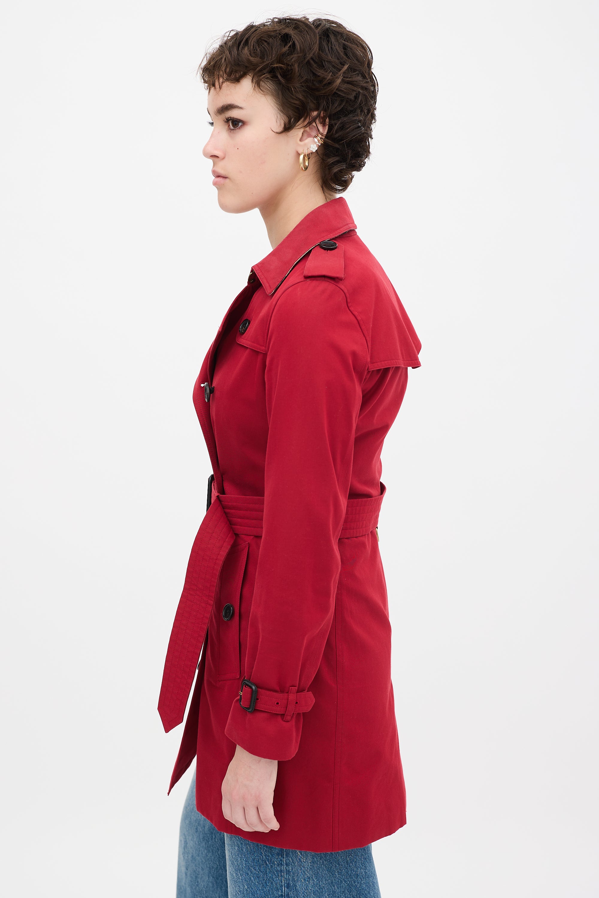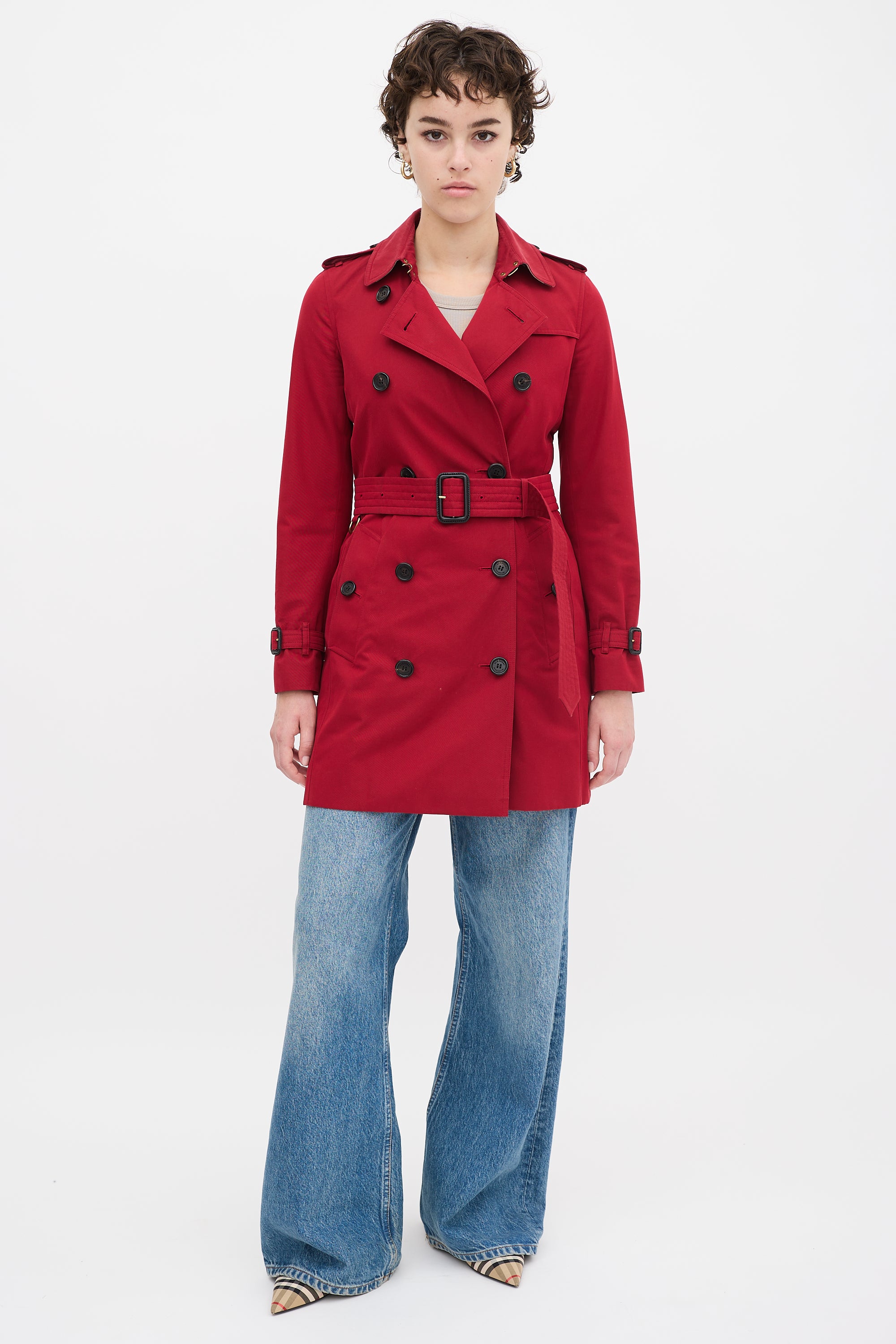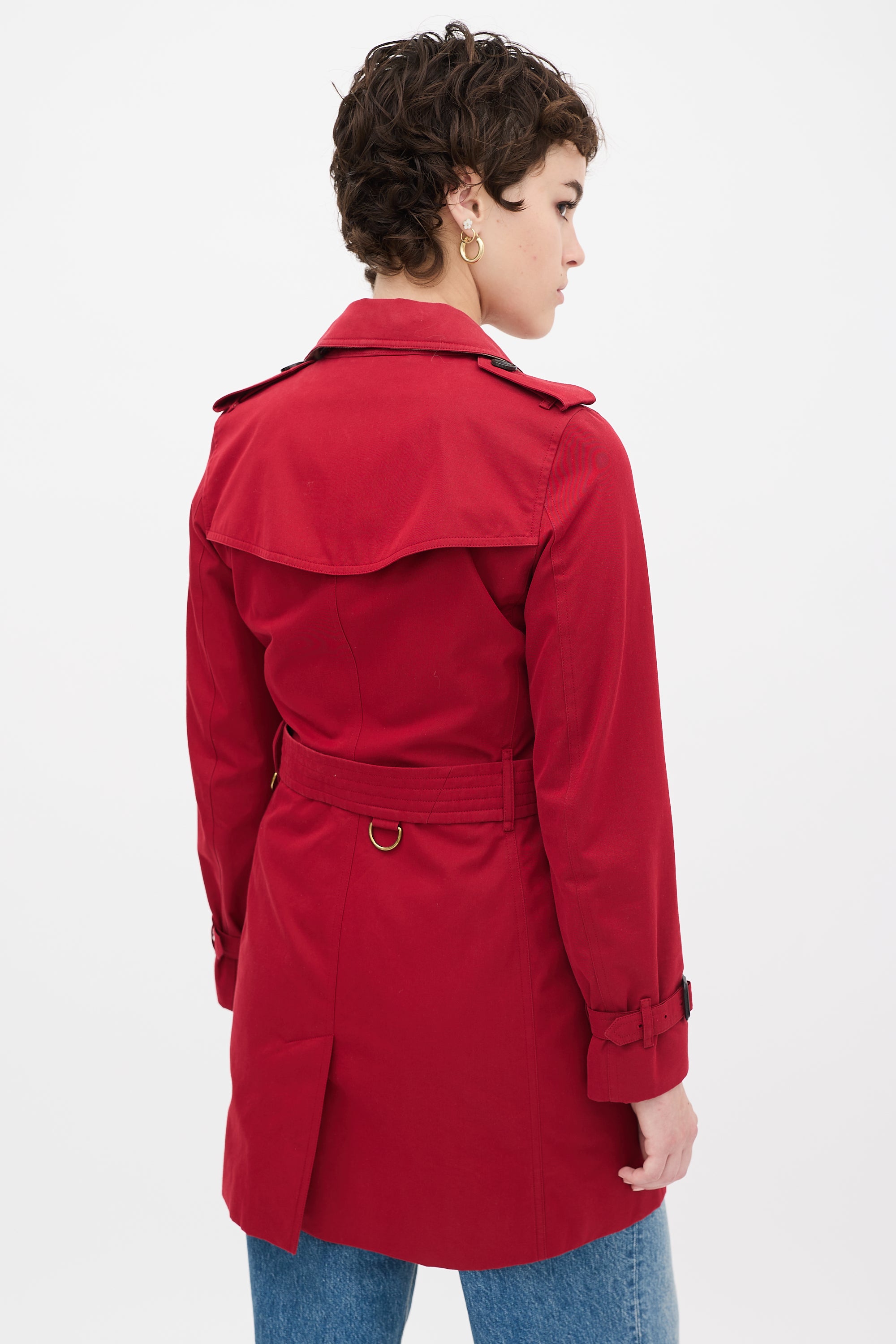 Red Cotton Kensington Medium Trench Coat US 0 Size Guide