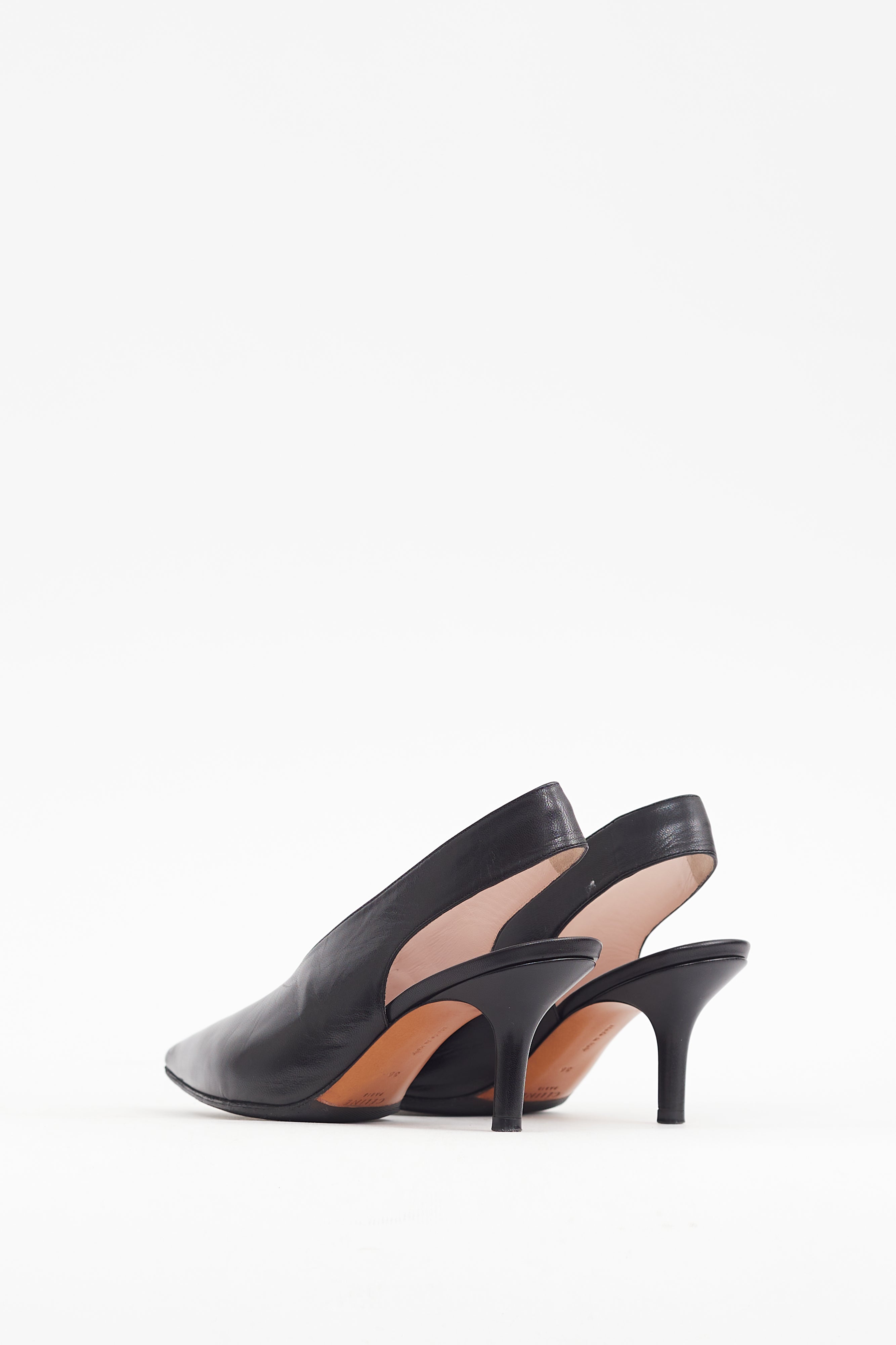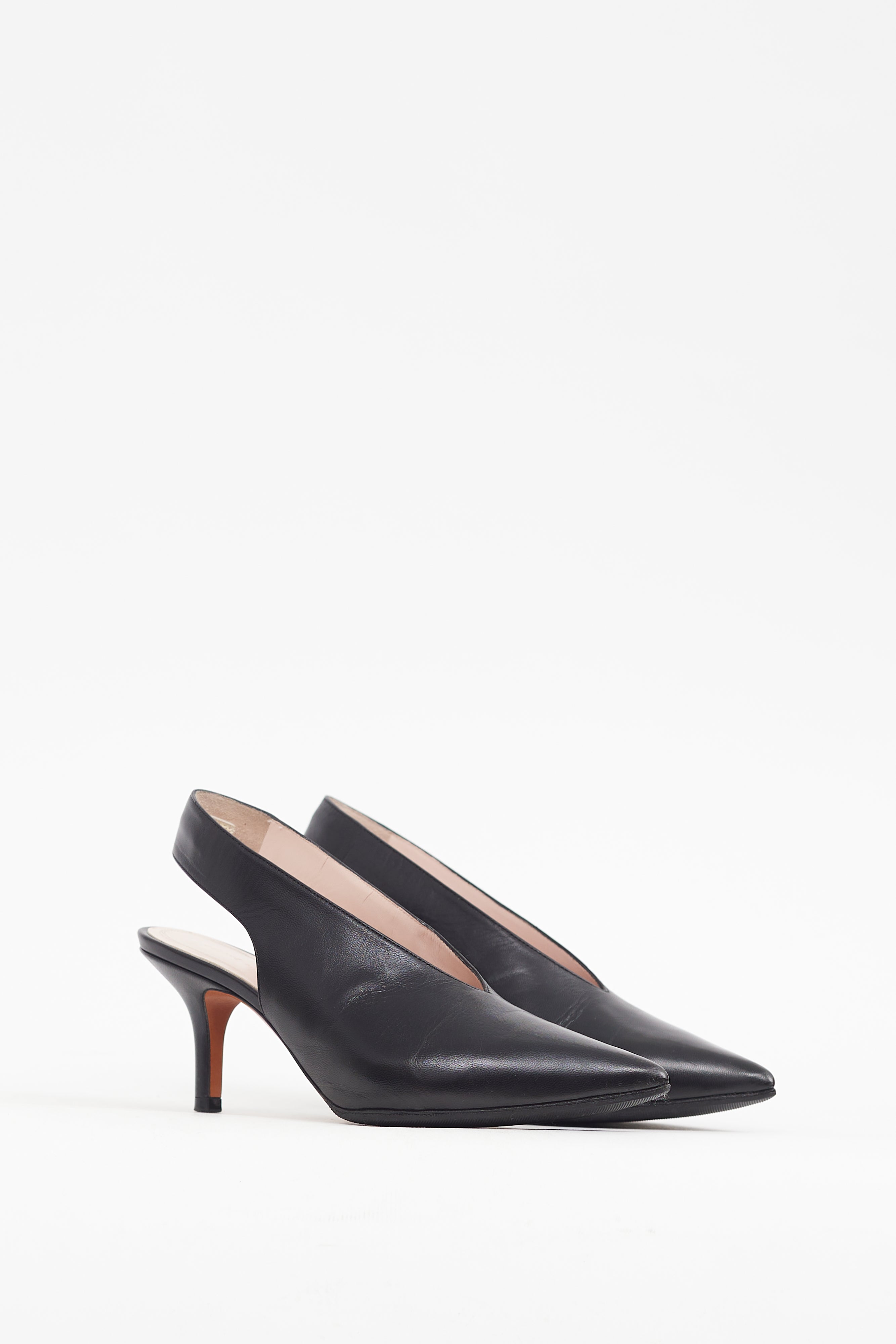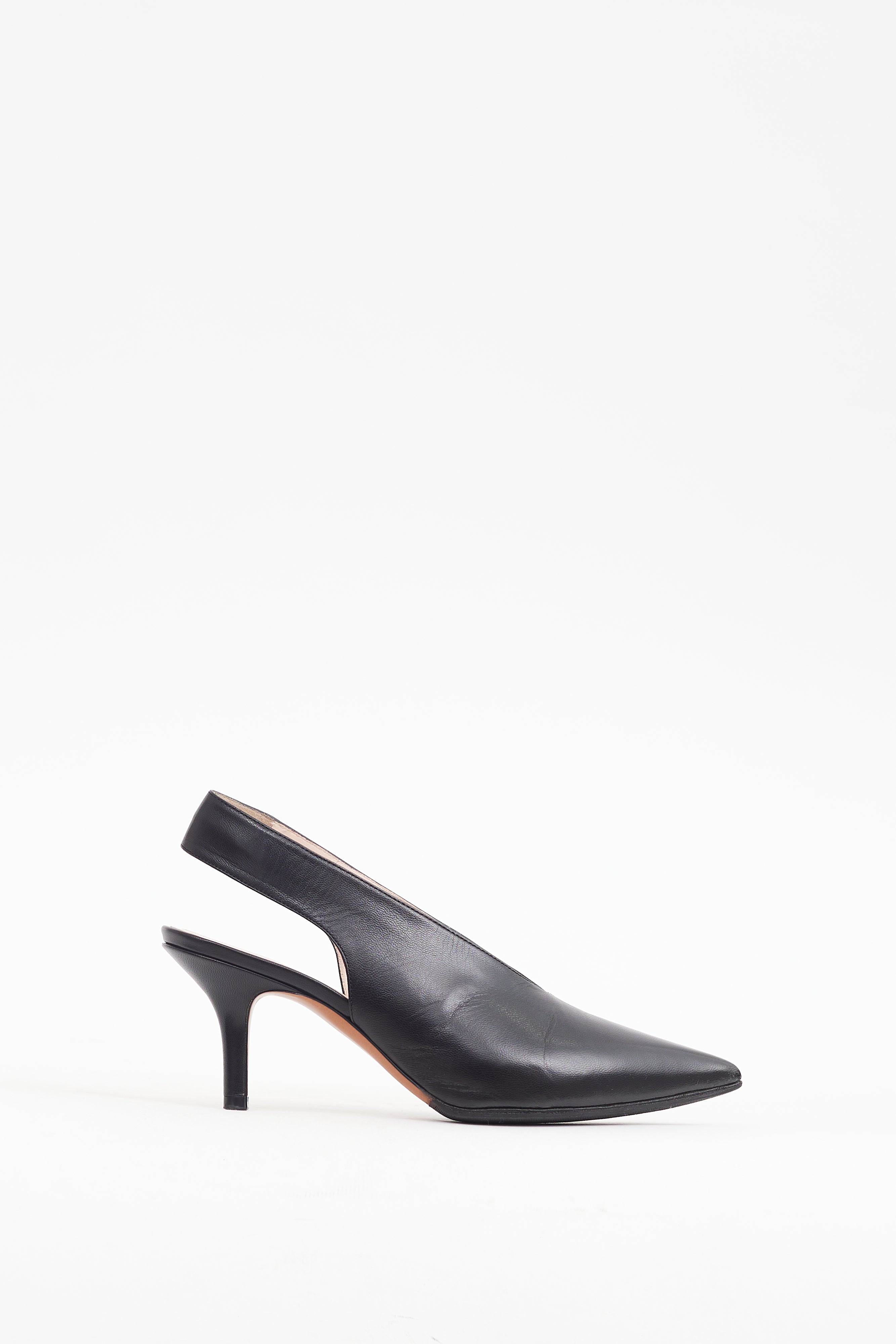 Black Leather Pointed Slingback Heel IT 36 Size Guide
