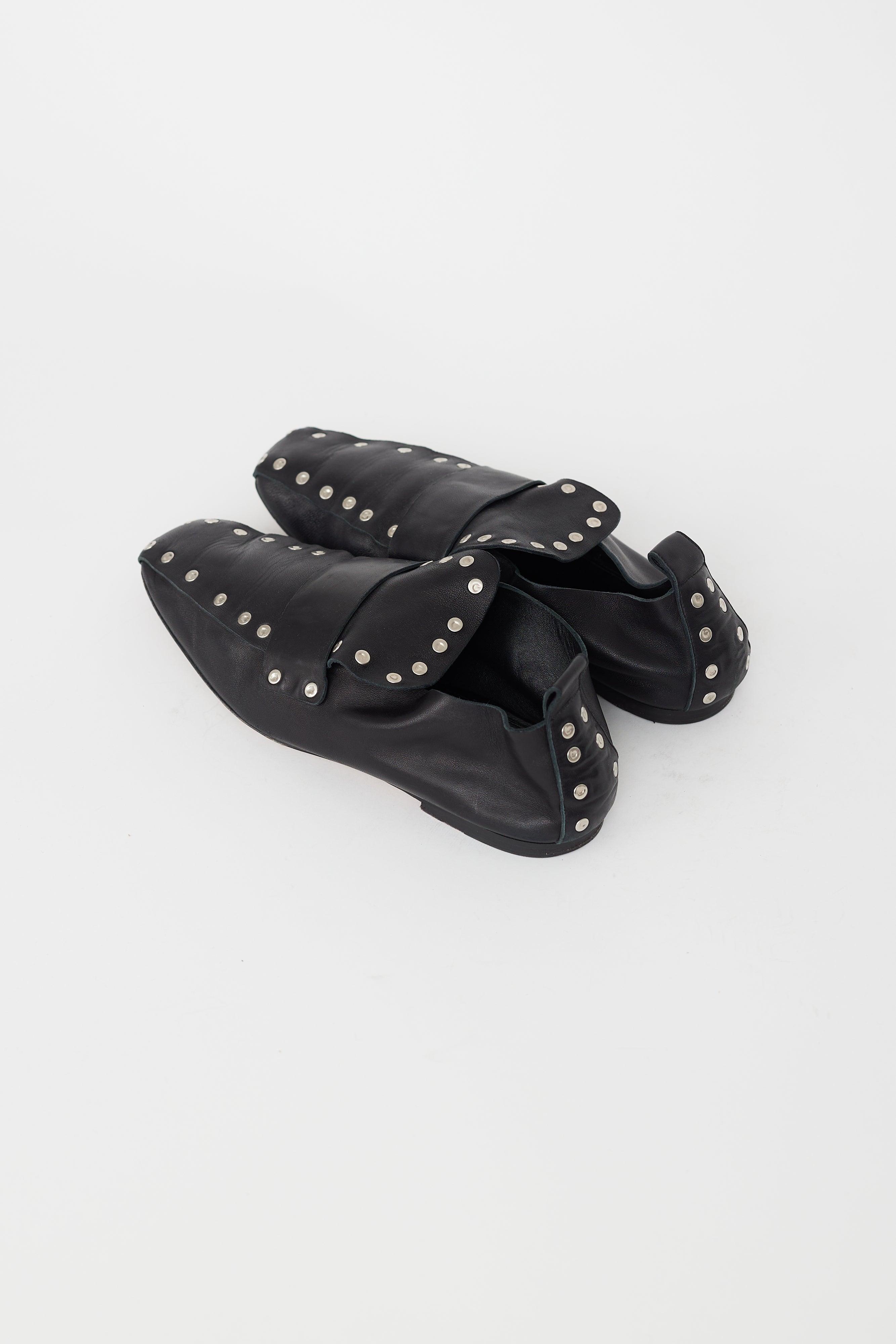 Black Leather Silver Studded Flat Loafer IT 39 Size Guide