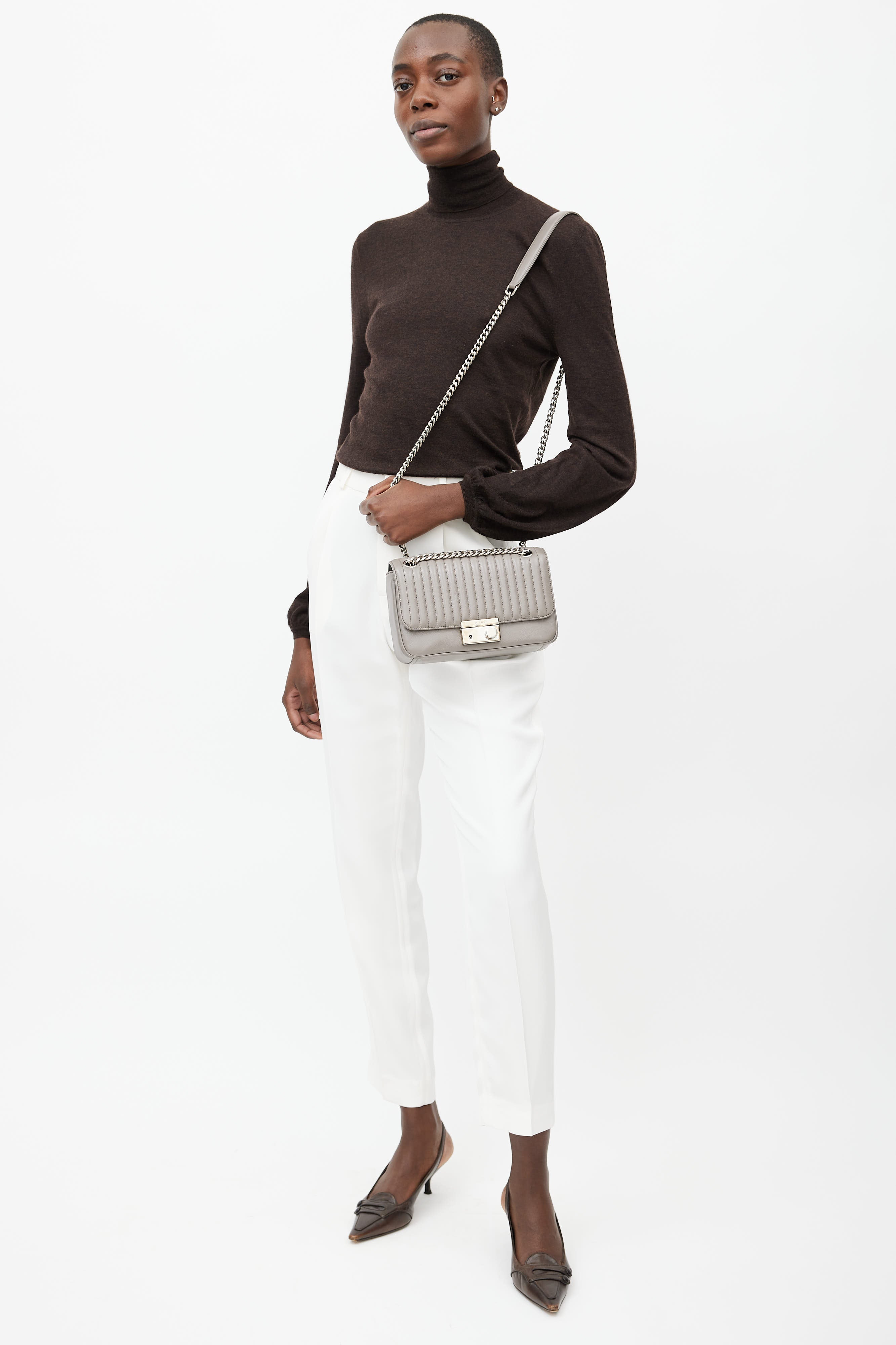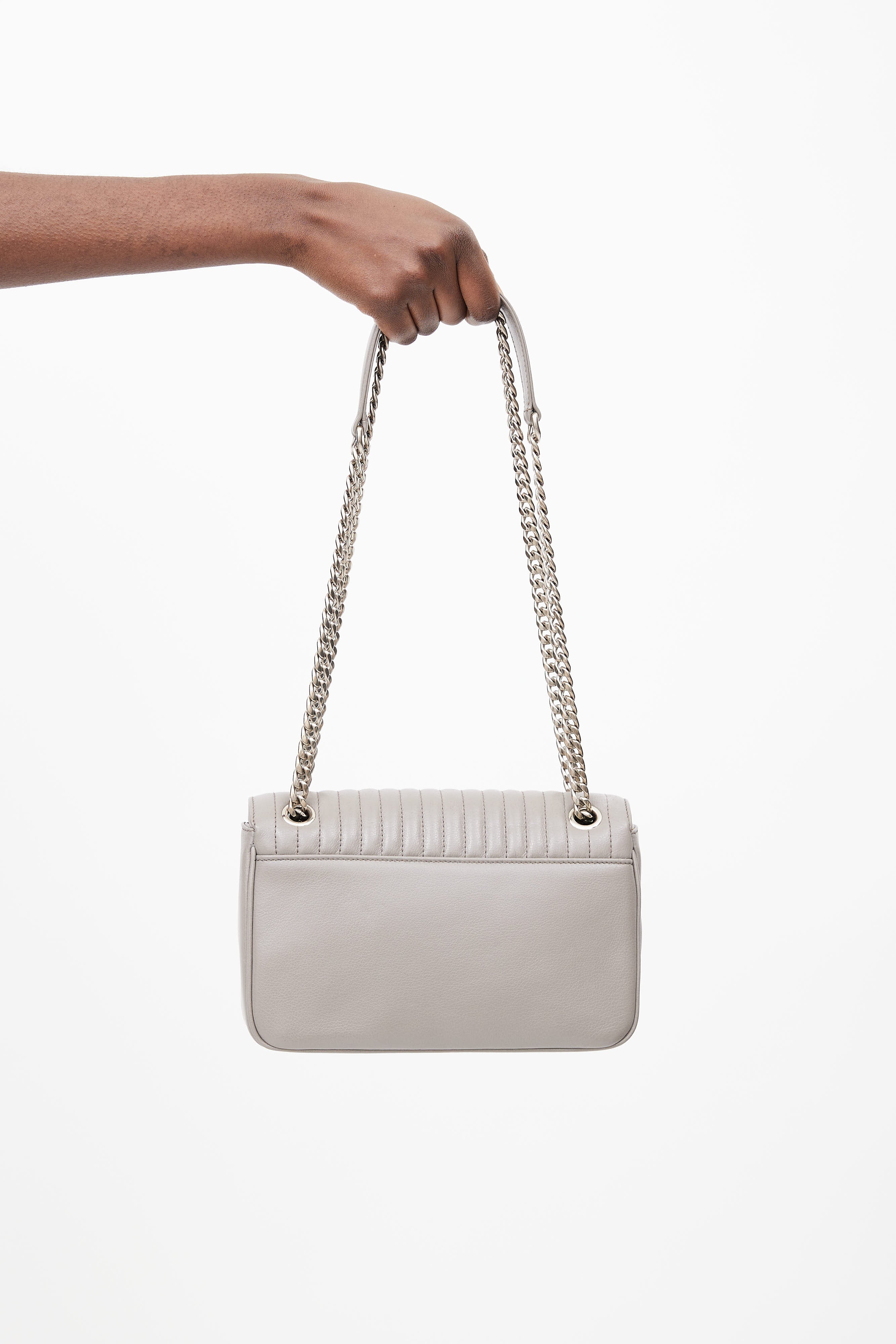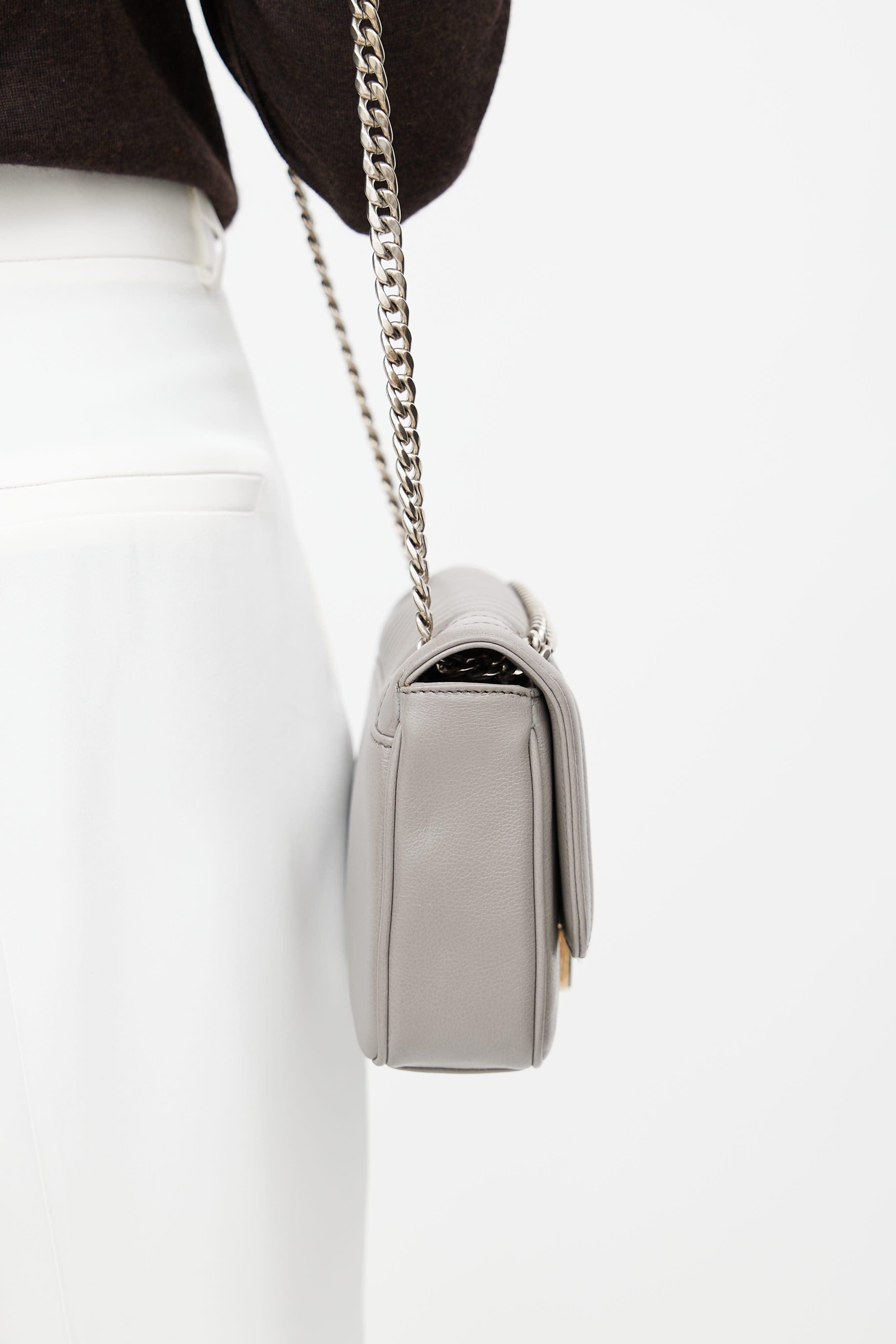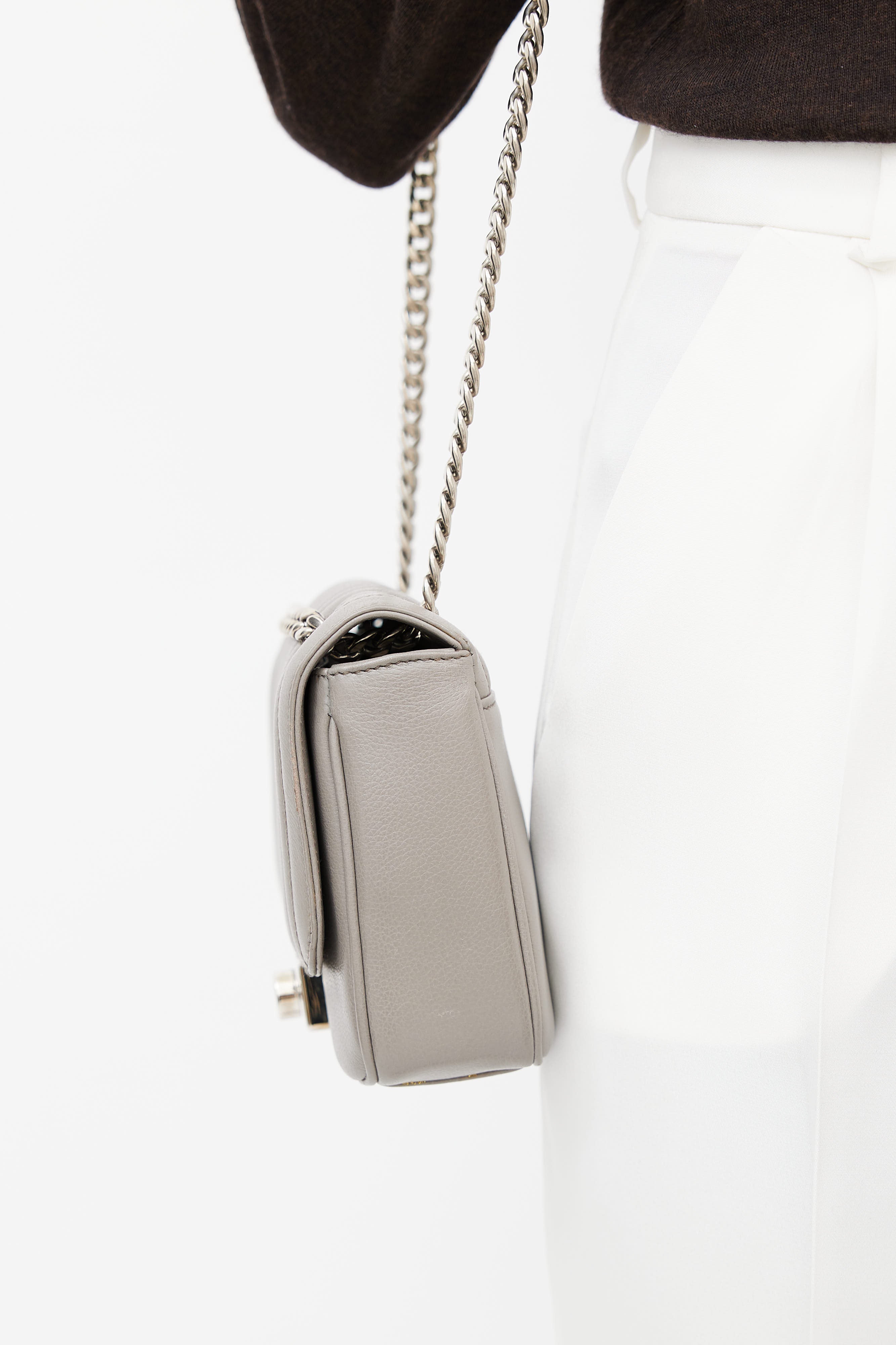 Grey Quilted Leather Shoulder Bag