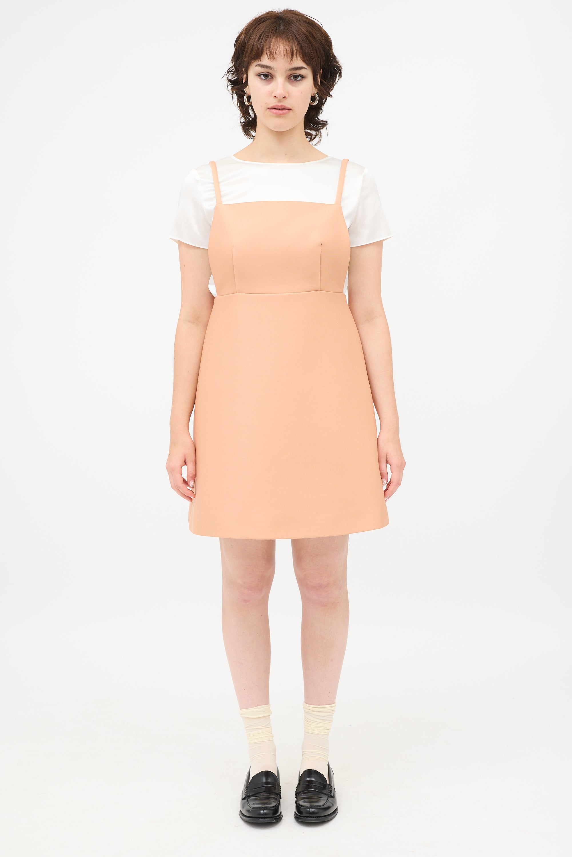 Pre-owned Prada pink wool blend cady dress featuring square neckline, cutout sides and back, and concealed side zip. Lined. Styled with T-shirt.
