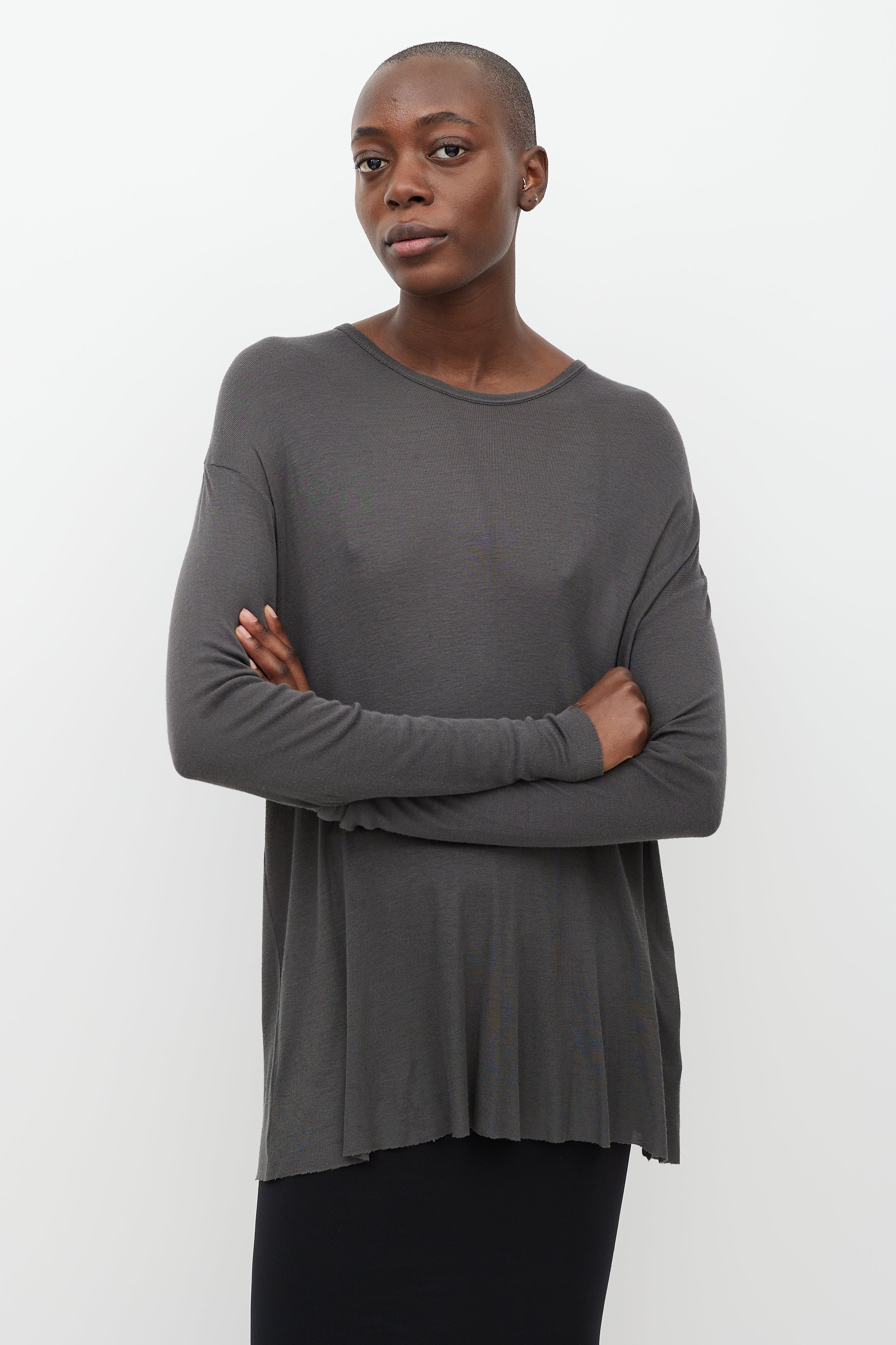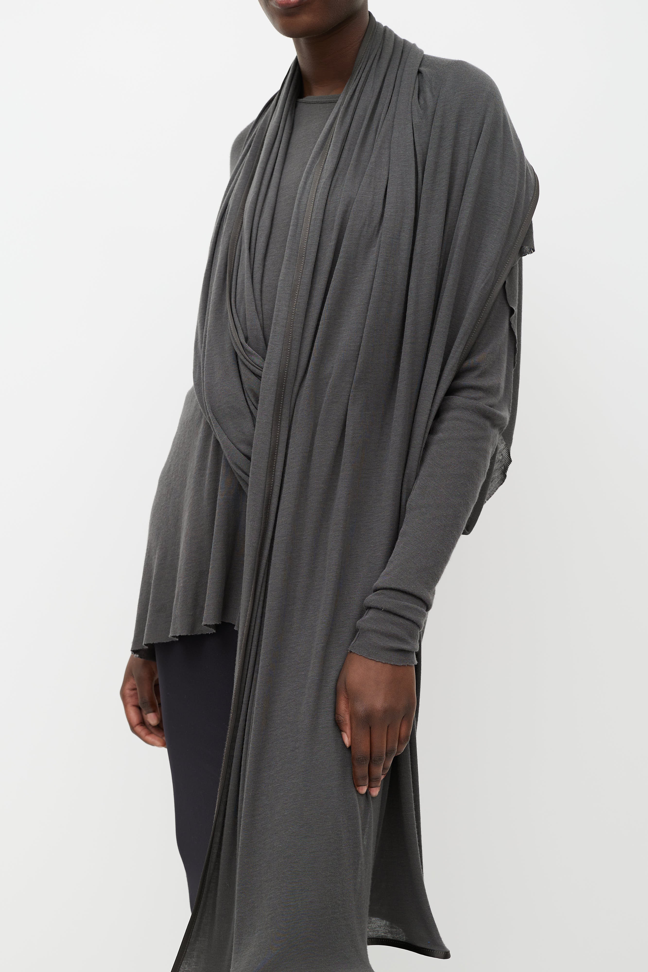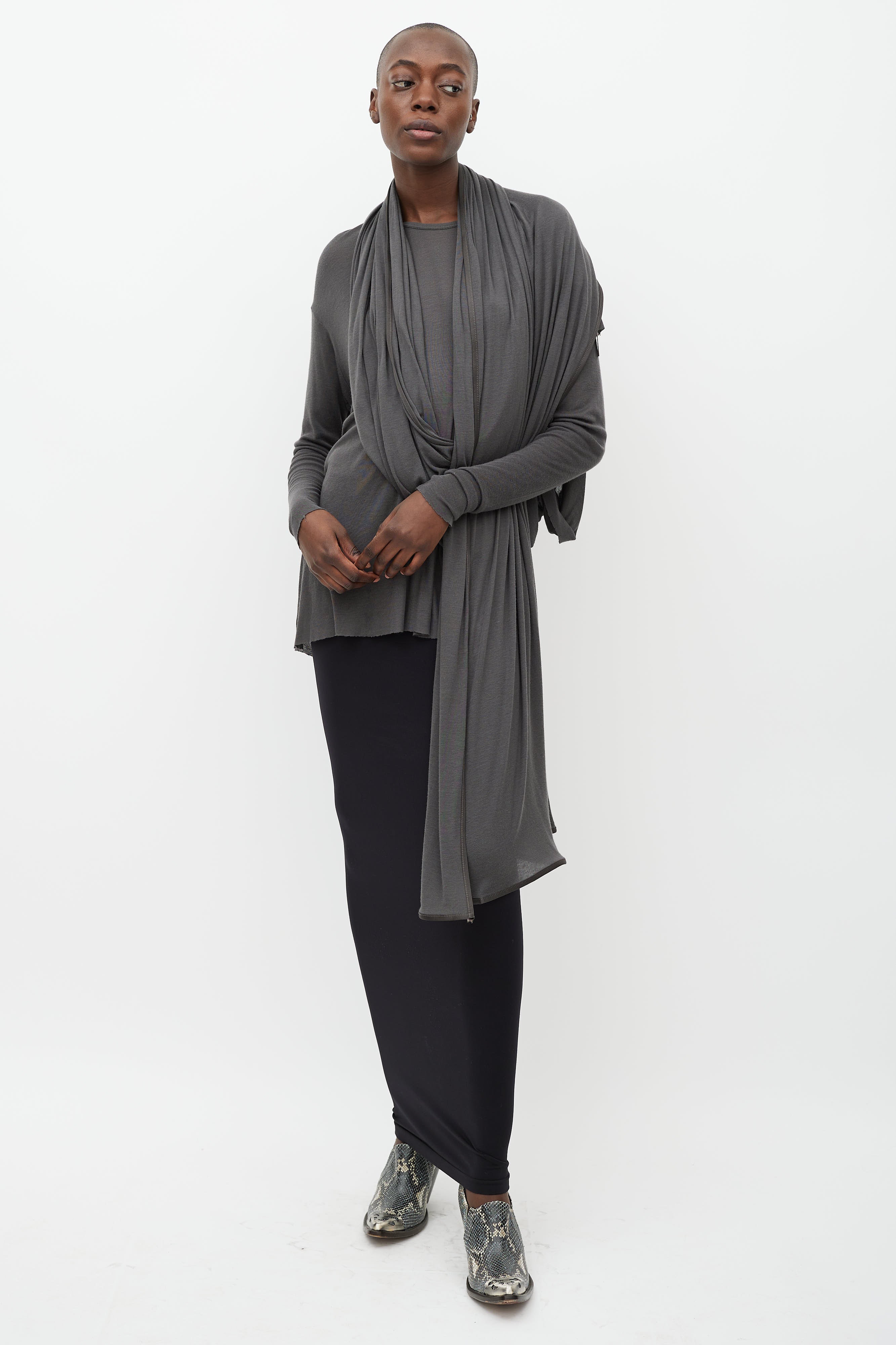 Pre-owned Haider Ackermann grey top featuring a round neckline, and long sleeves with drop shoulder. Matching scarf features an arm hole, and draped detailing.