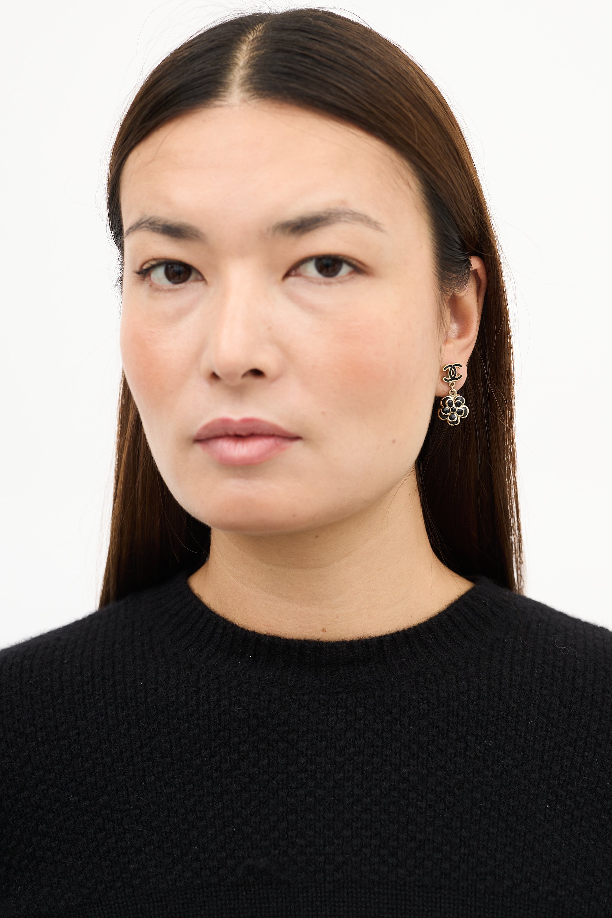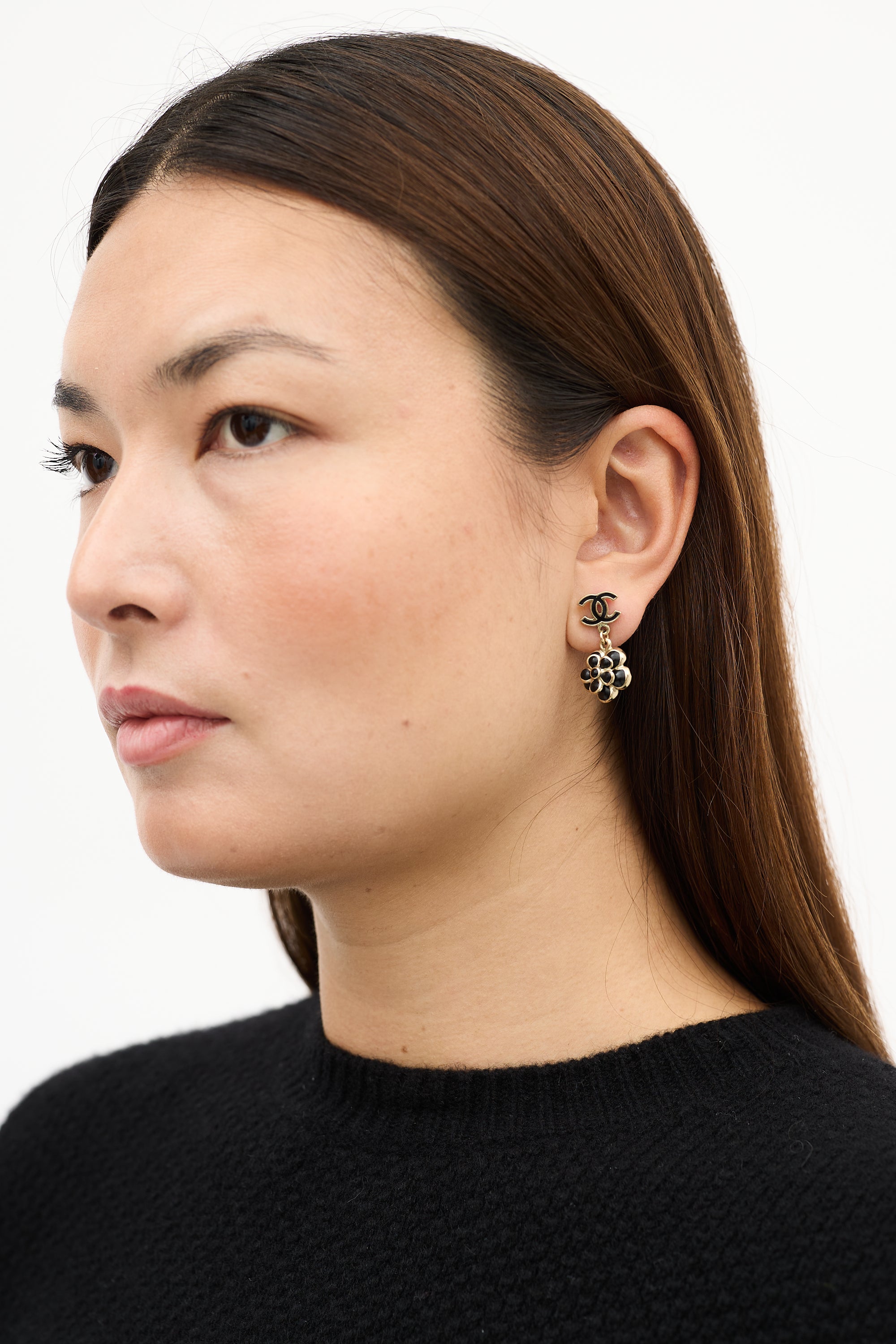 SS 2009 Gold & Black Camelia CC Drop Earrings