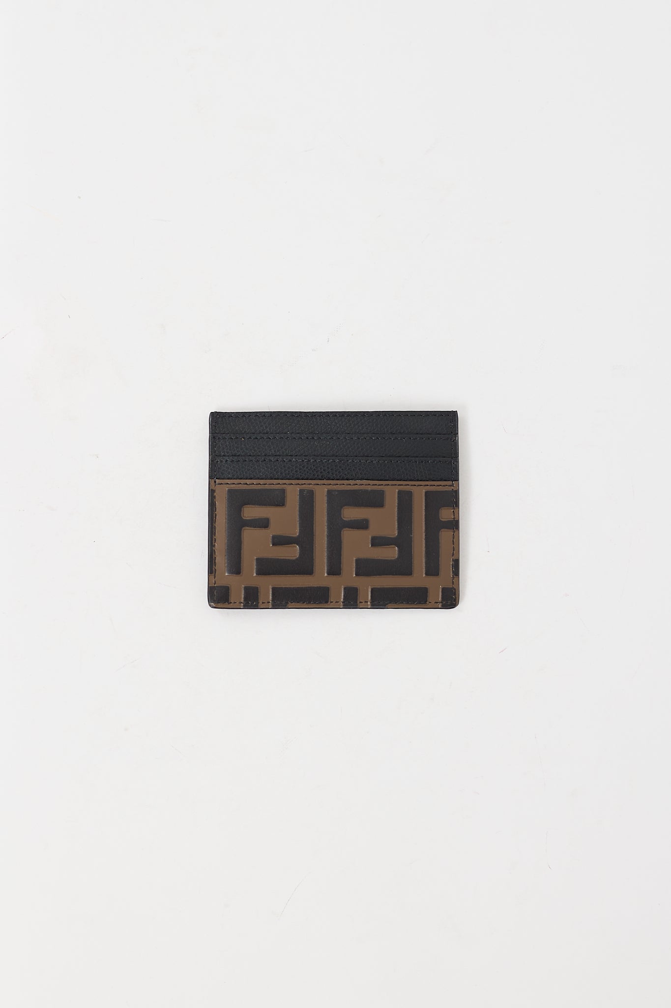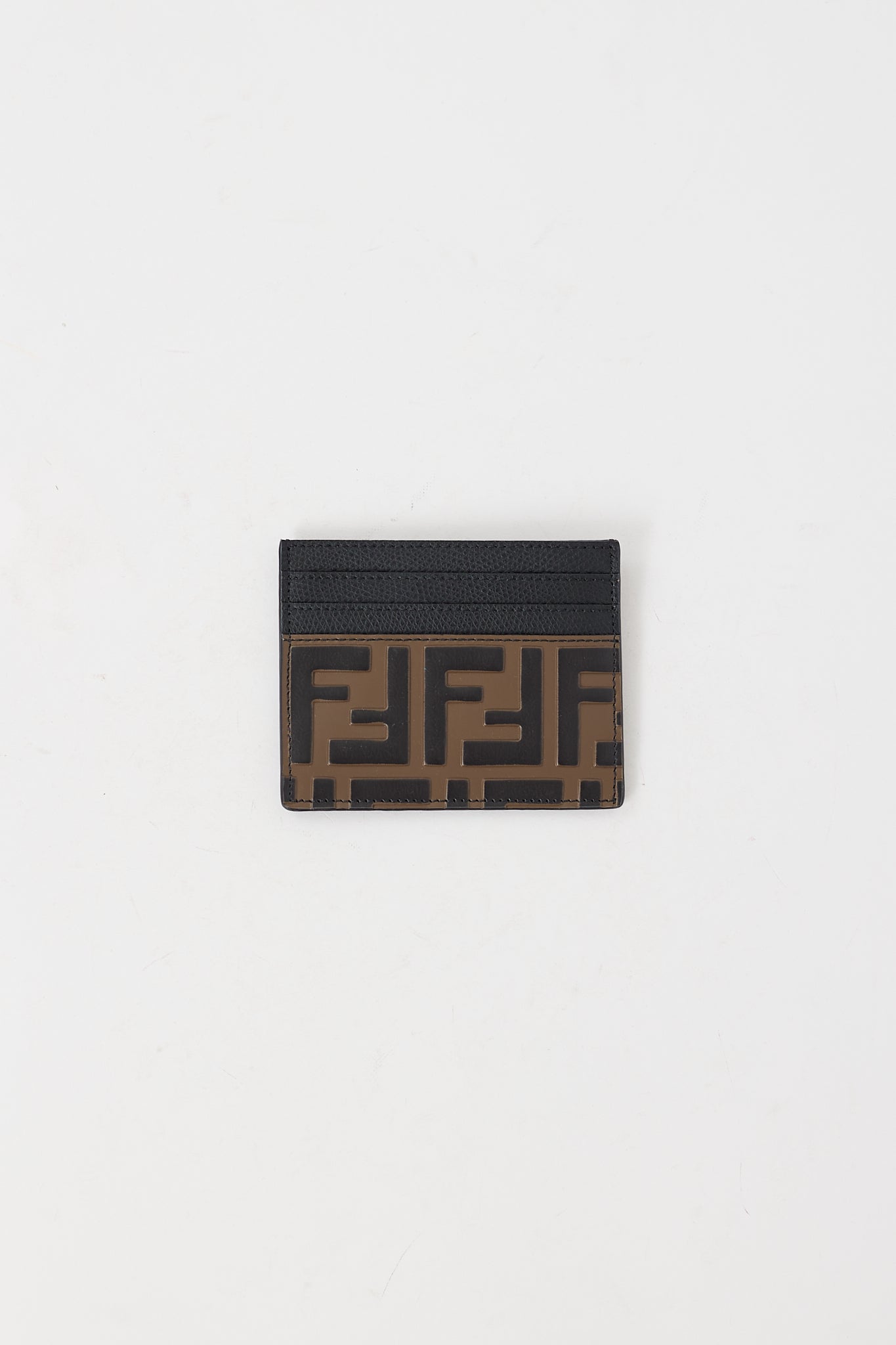 Pre-owned Fendi black and brown leather card holder featuring FF monogram at front and 7 card slots.