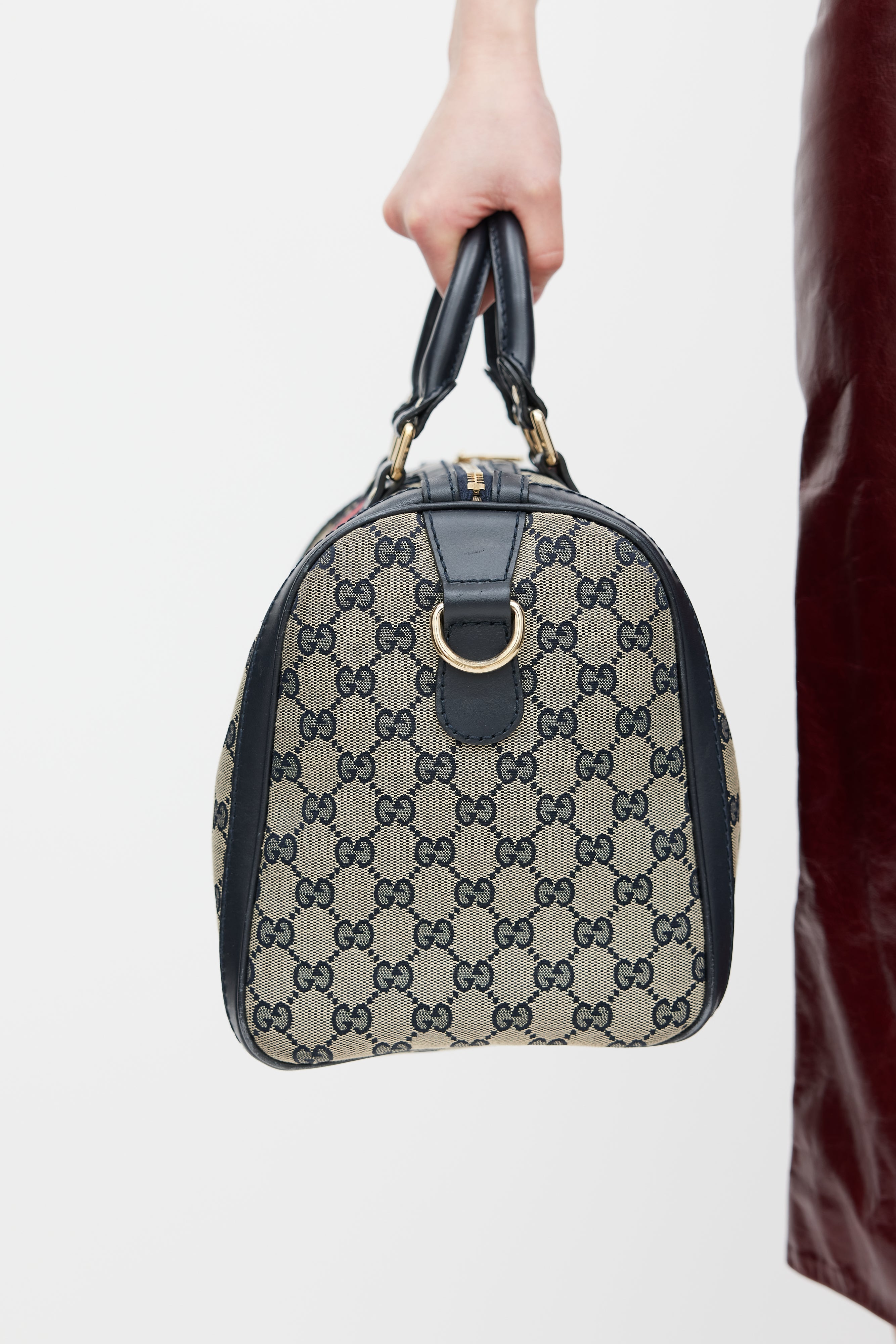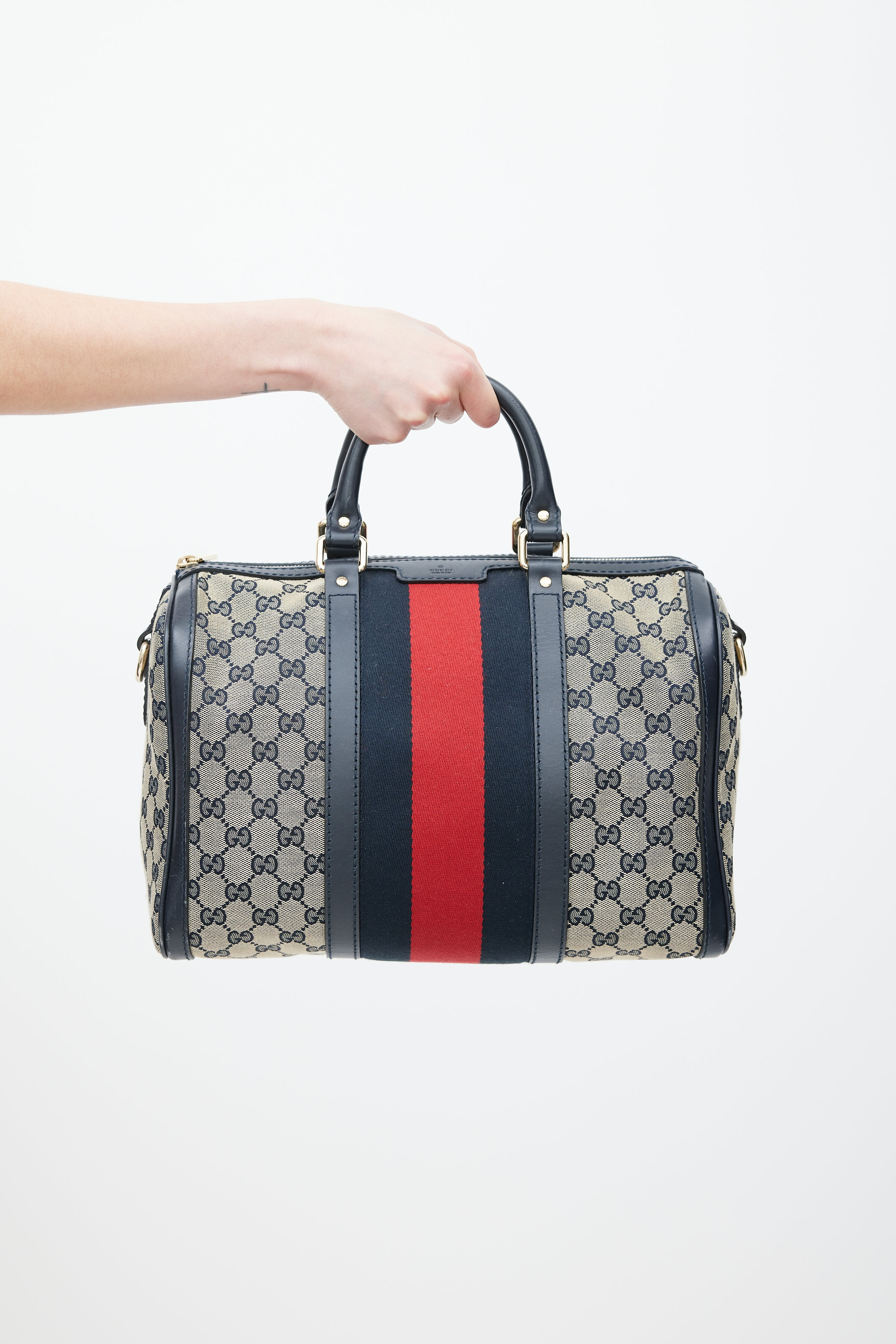 Brown & Navy Monogram Boston Webbed Bag