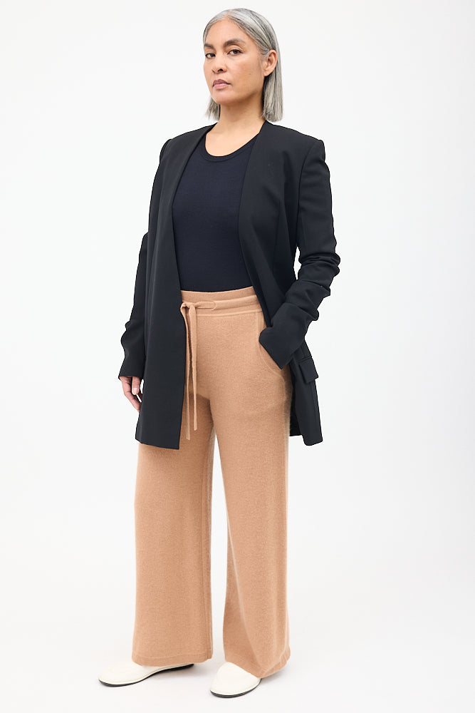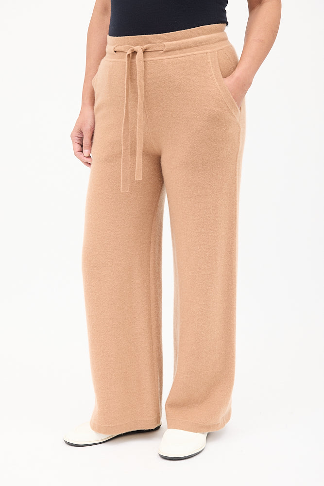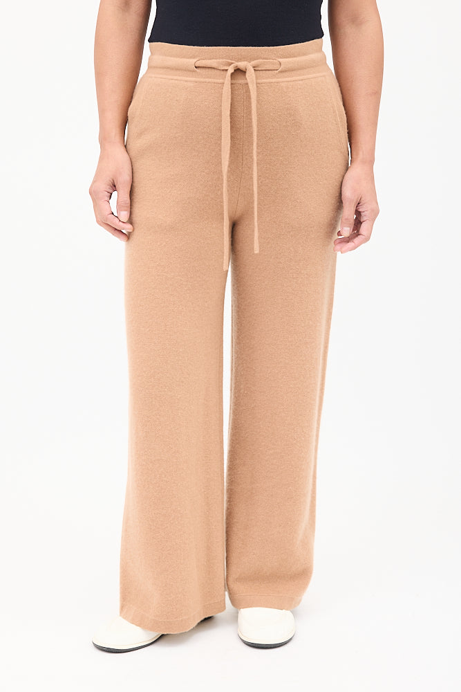 Pre-owned Loro Piana brown cashmere and wool blend pants featuring a drawstring waist, three pocket waist styling, and straight leg.