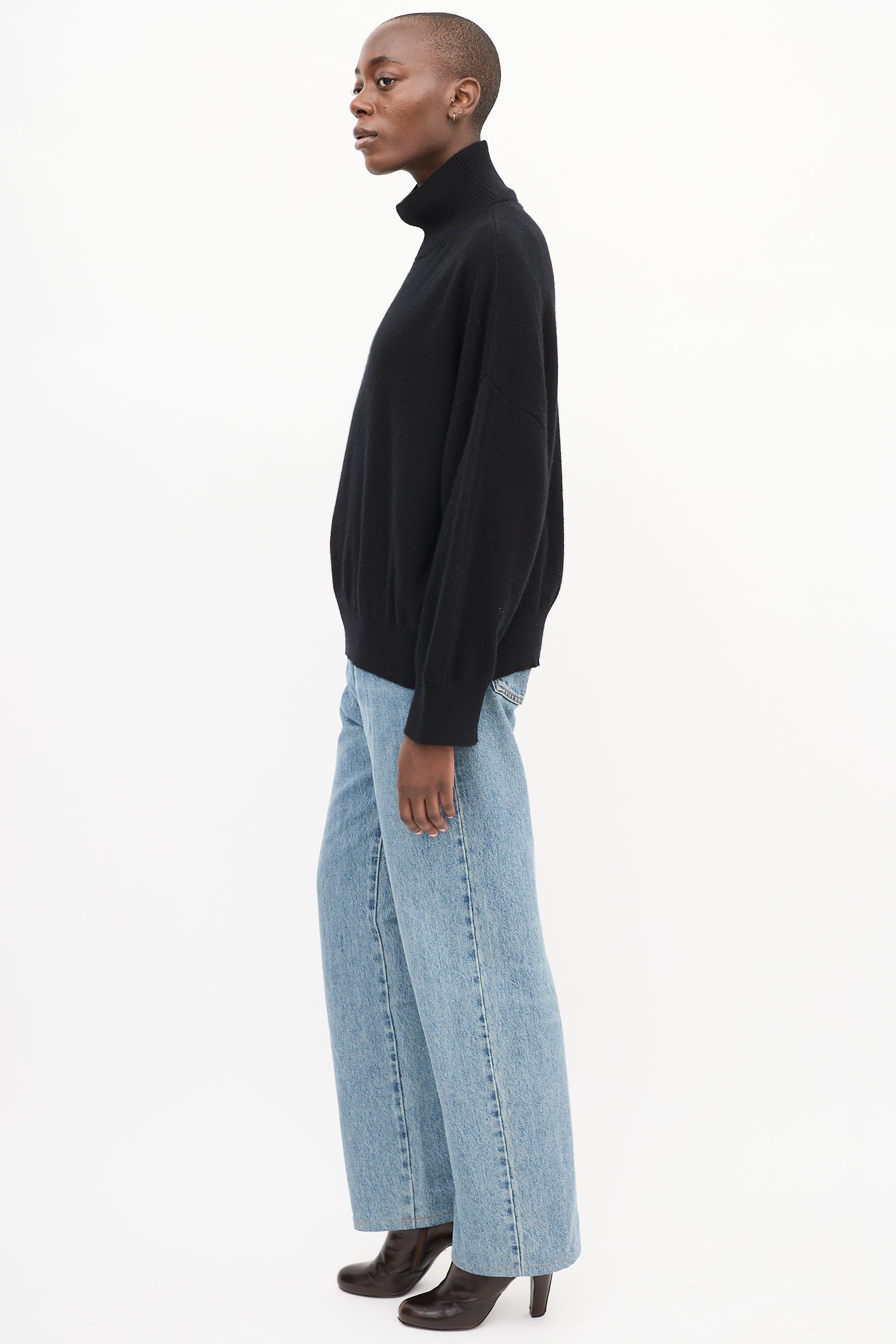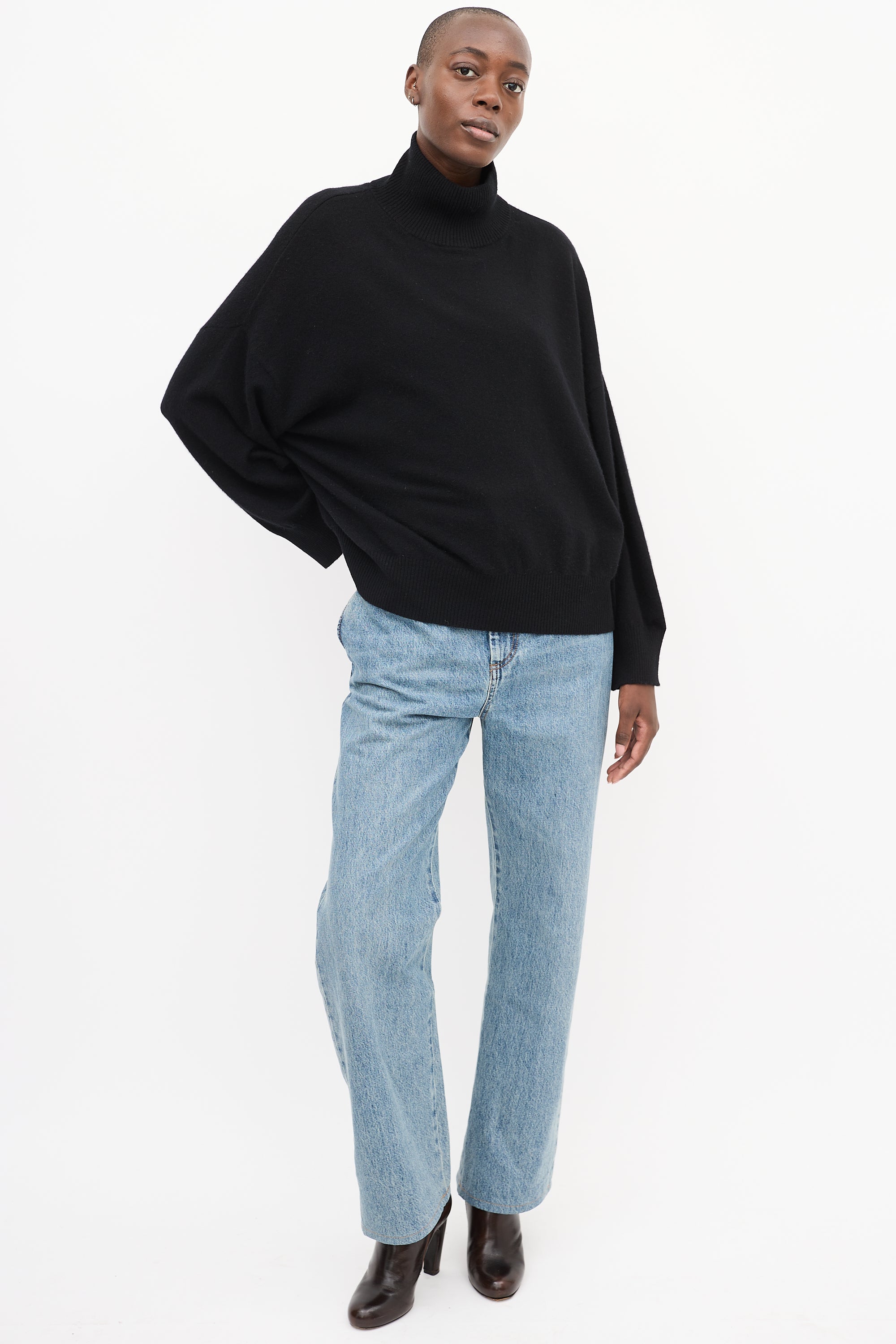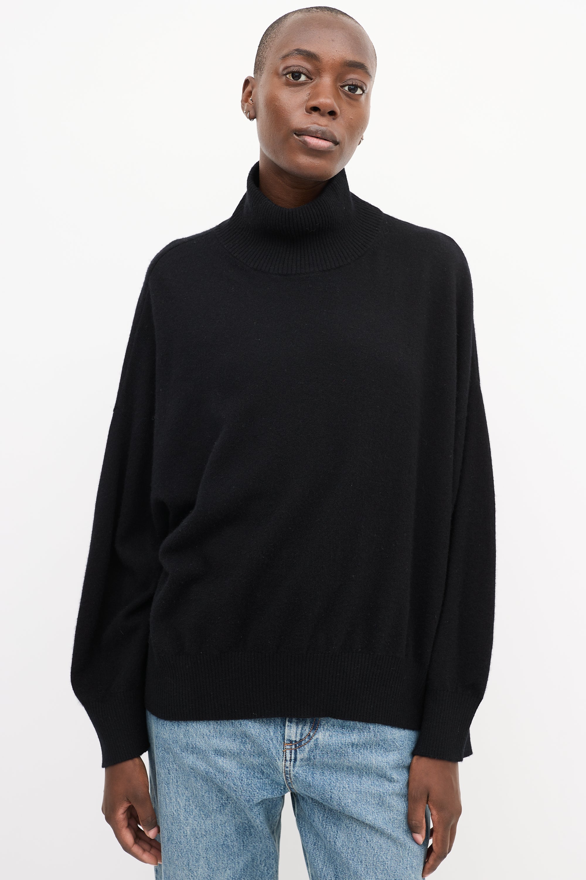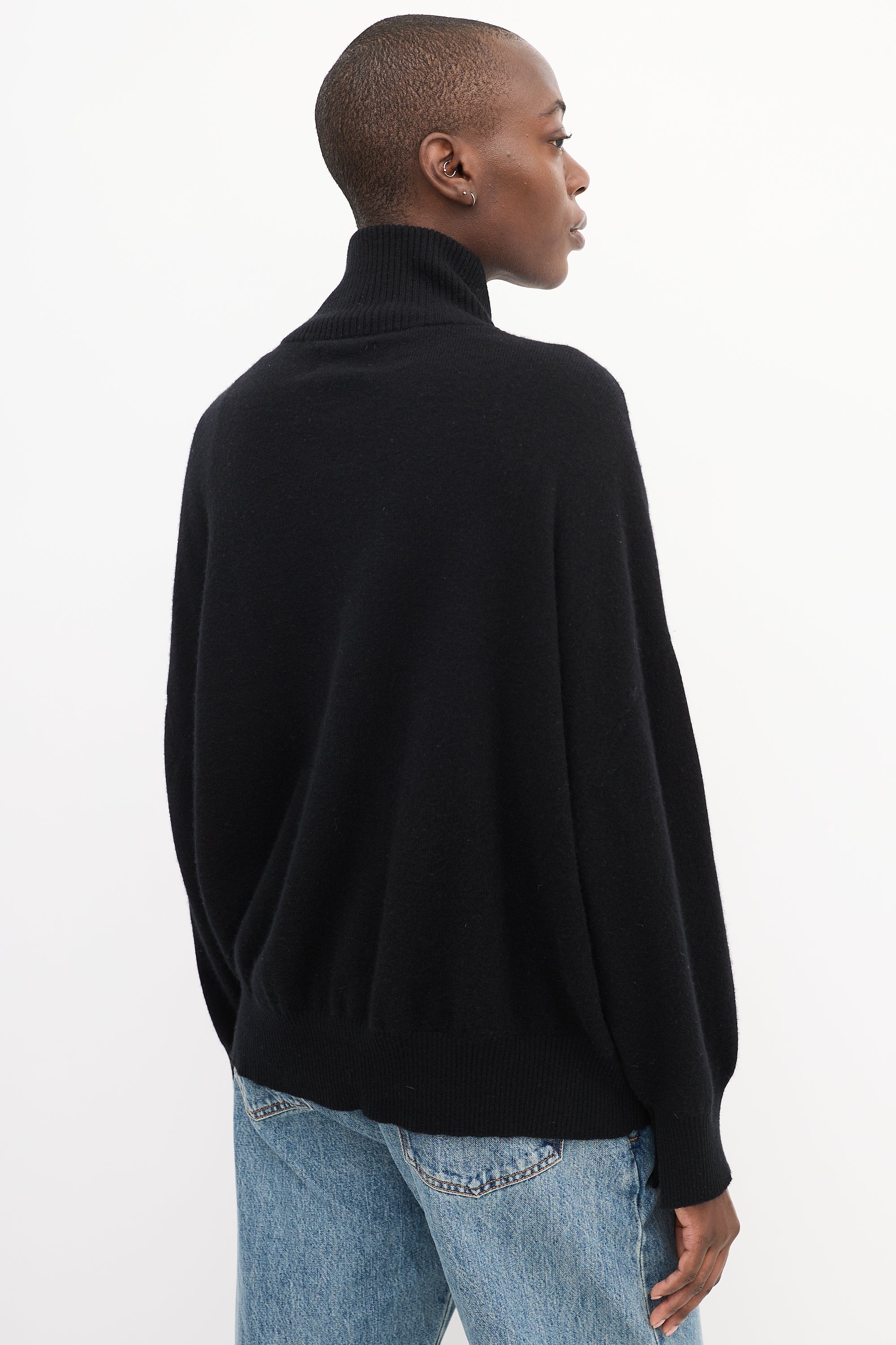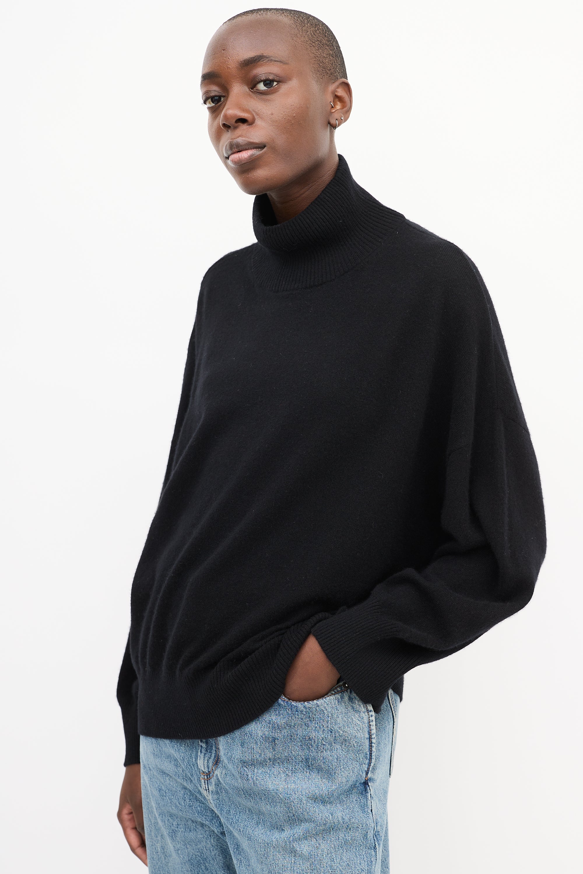 Pre-owned Lou Lou Studio black cashmere Murano sweater featuring turtleneck, drop shoulder, and slit cuffs.