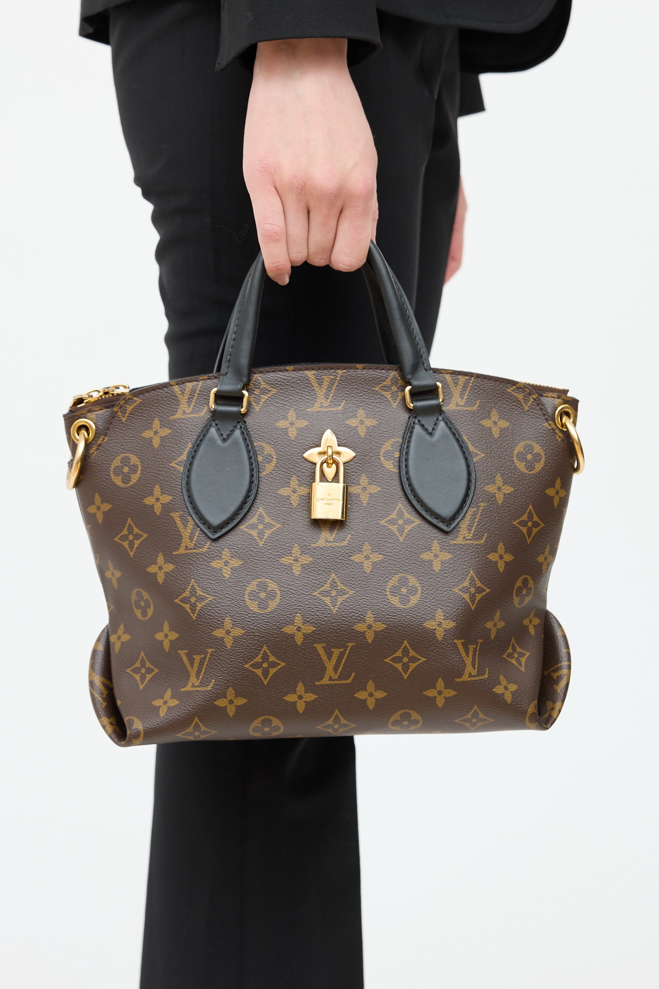 Pre-owned Louis Vuitton monogram brown PM flower zipped tote bag in monogram coated canvas featuring dual rolled leather top handles, top zip with gold tone hardware, clochette with "MK" initials, debossed logo padlock at front, detachable leather crossbody strap, structured base, two slip pockets at front and back, and one main compartment with two slip pockets.