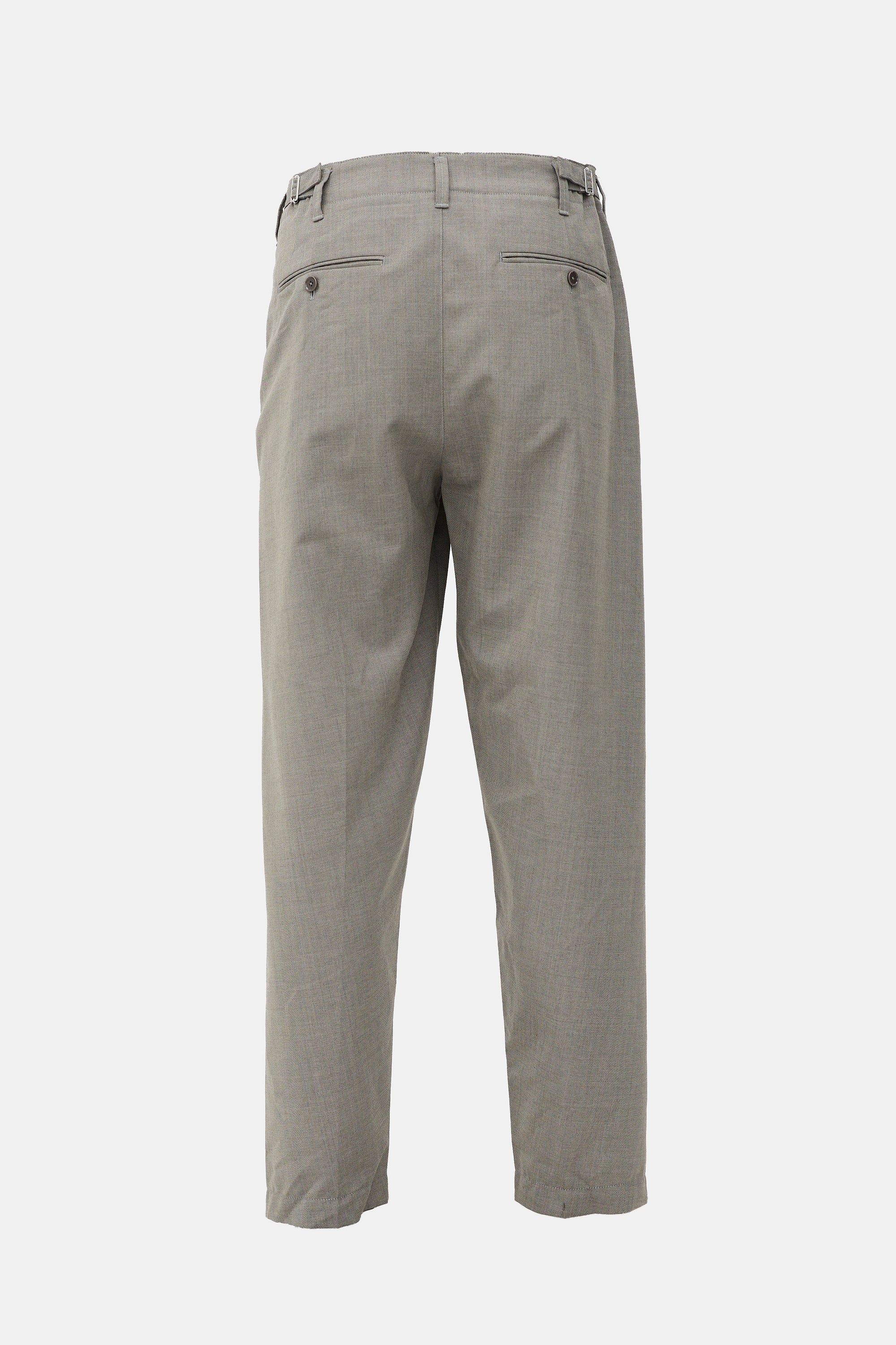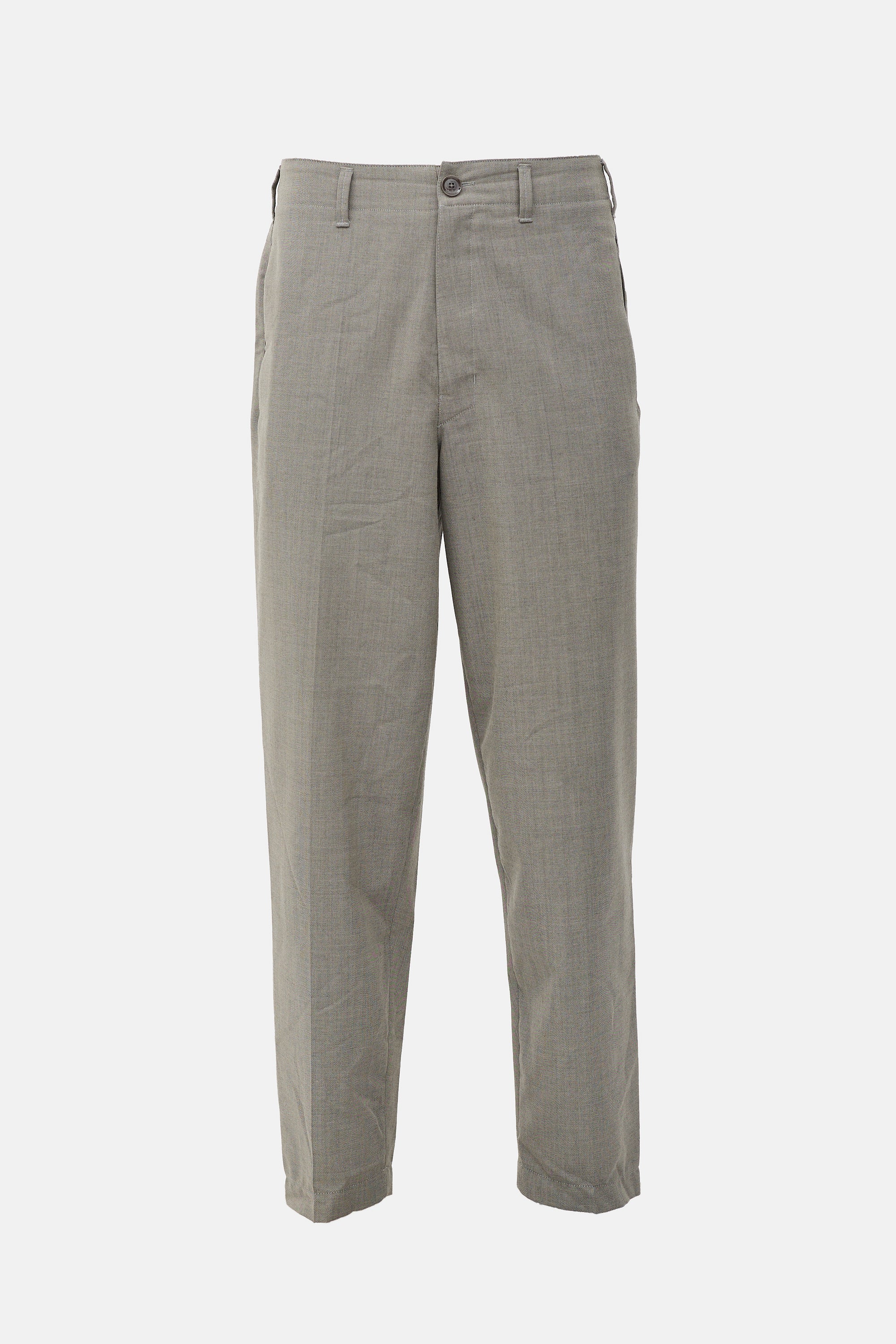 Pre-owned Lemaire grey trousers featuring belt loops, zip fly, four pocket styling, adjustable waist, and straight leg.