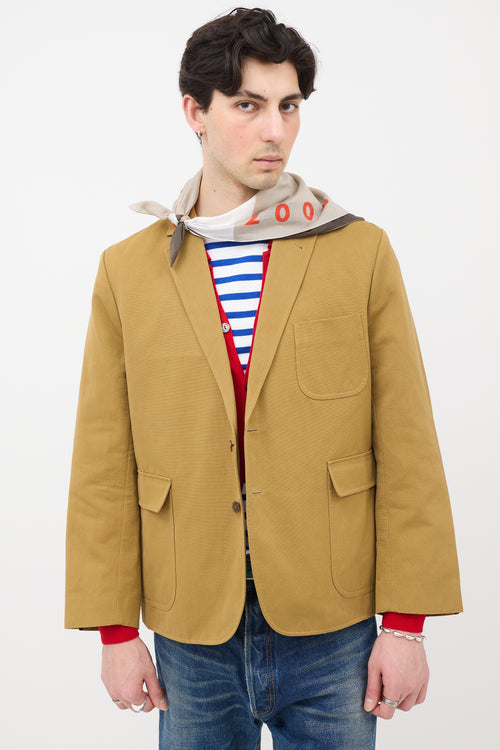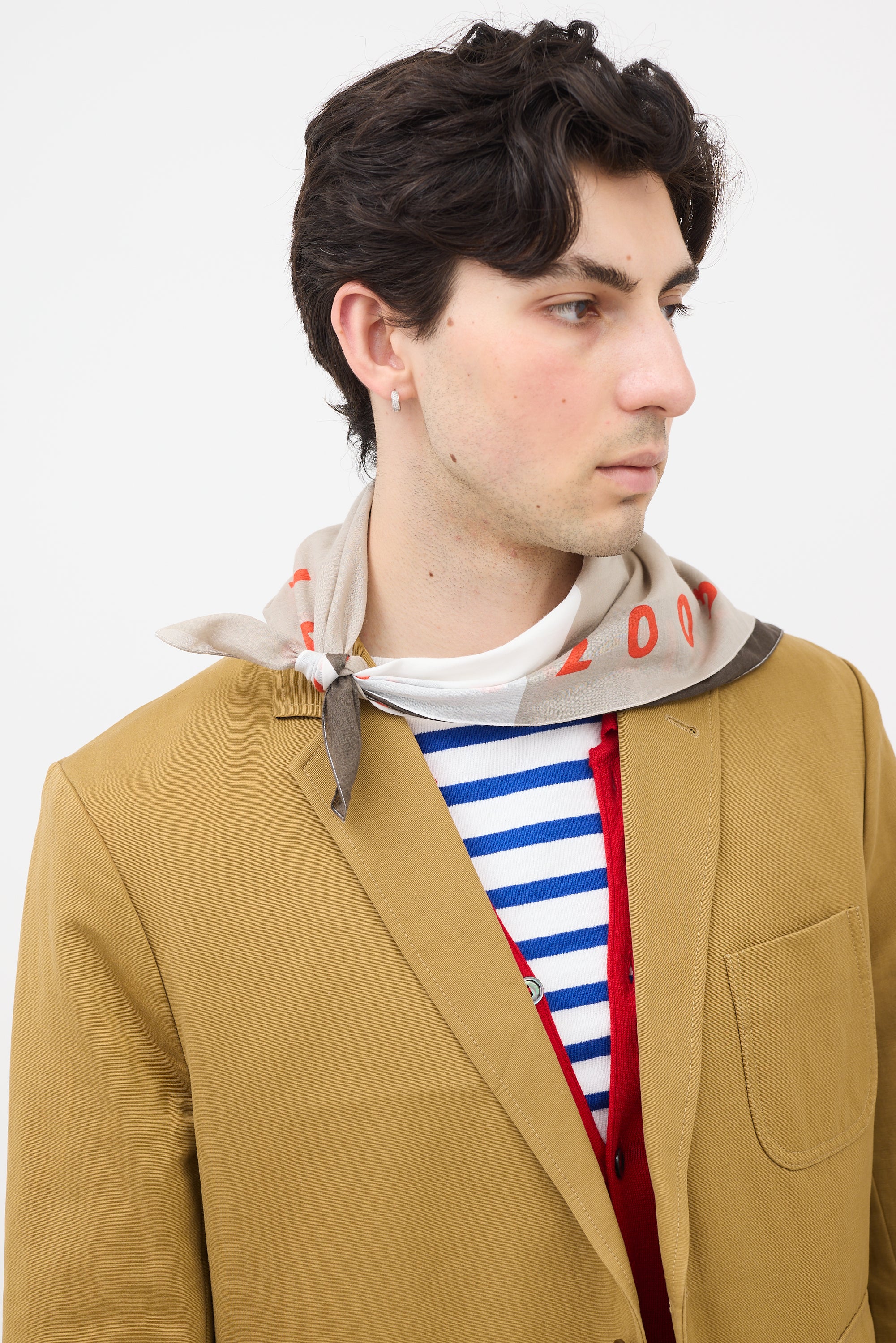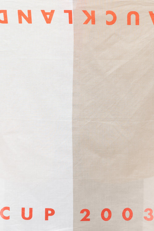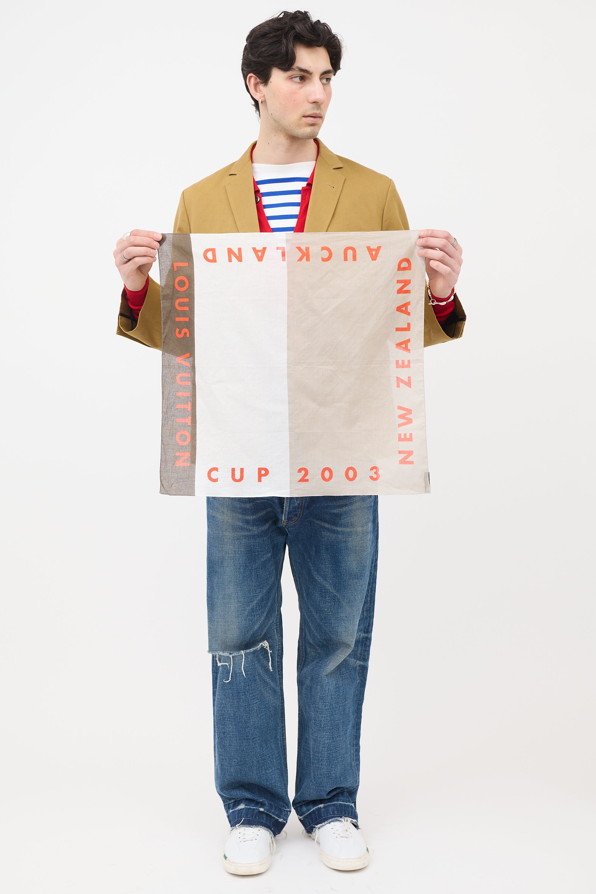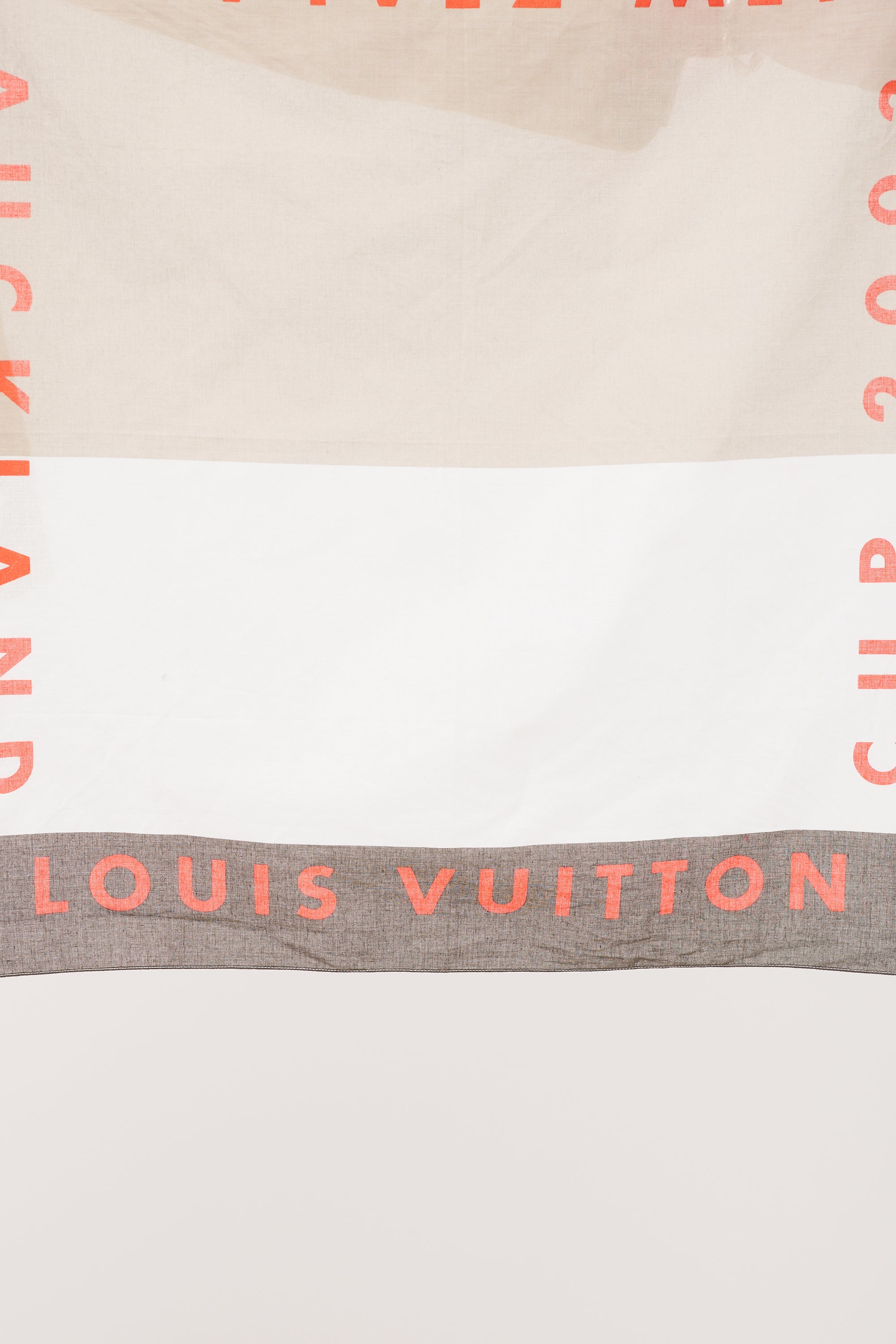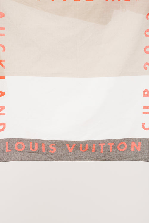 Pre-owned Louis Vuitton 2003 brown and multicolour scarf featuring colourblock, red logo and "New Zealand Auckland 2003 Cup" lettermark, and stitched edges.