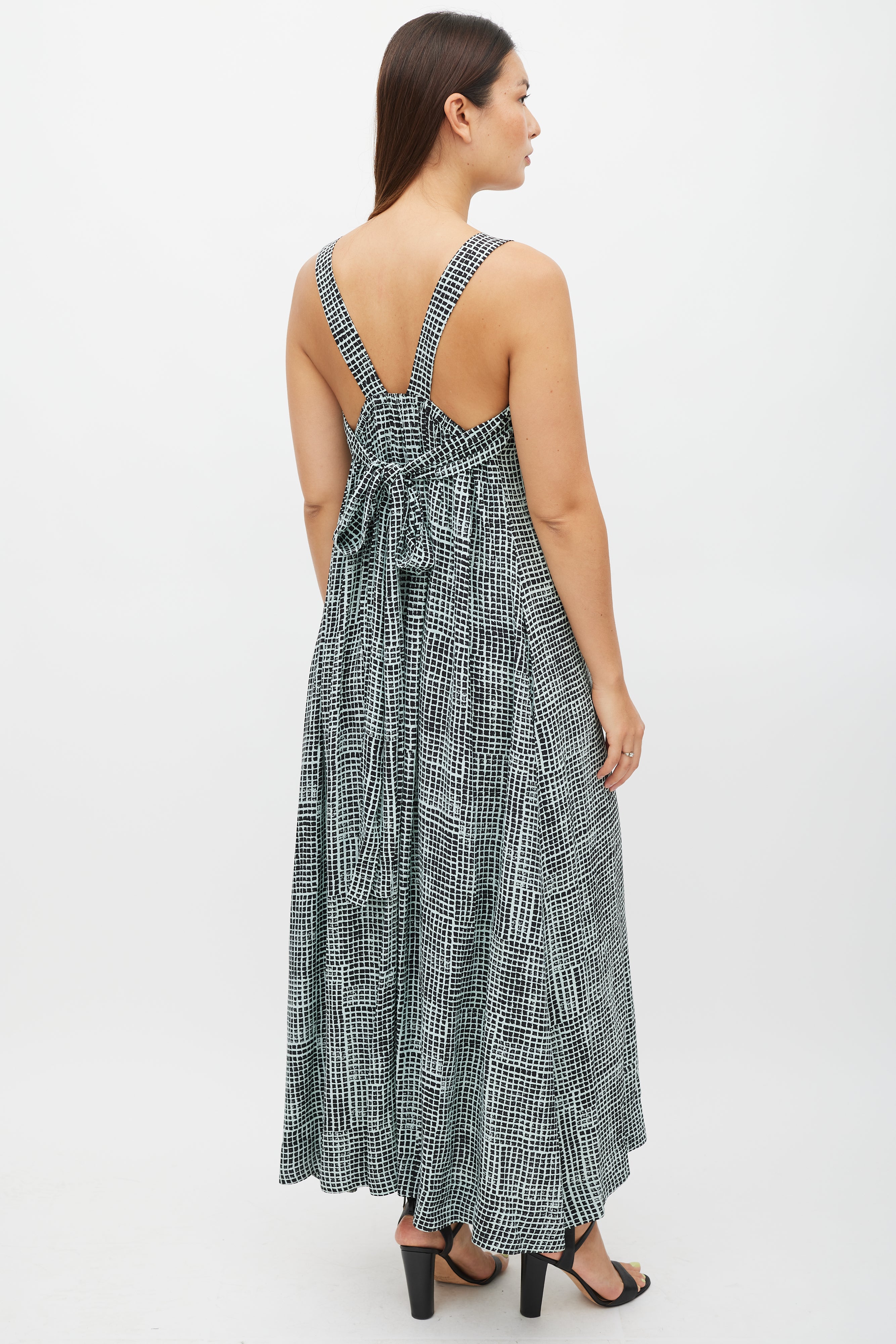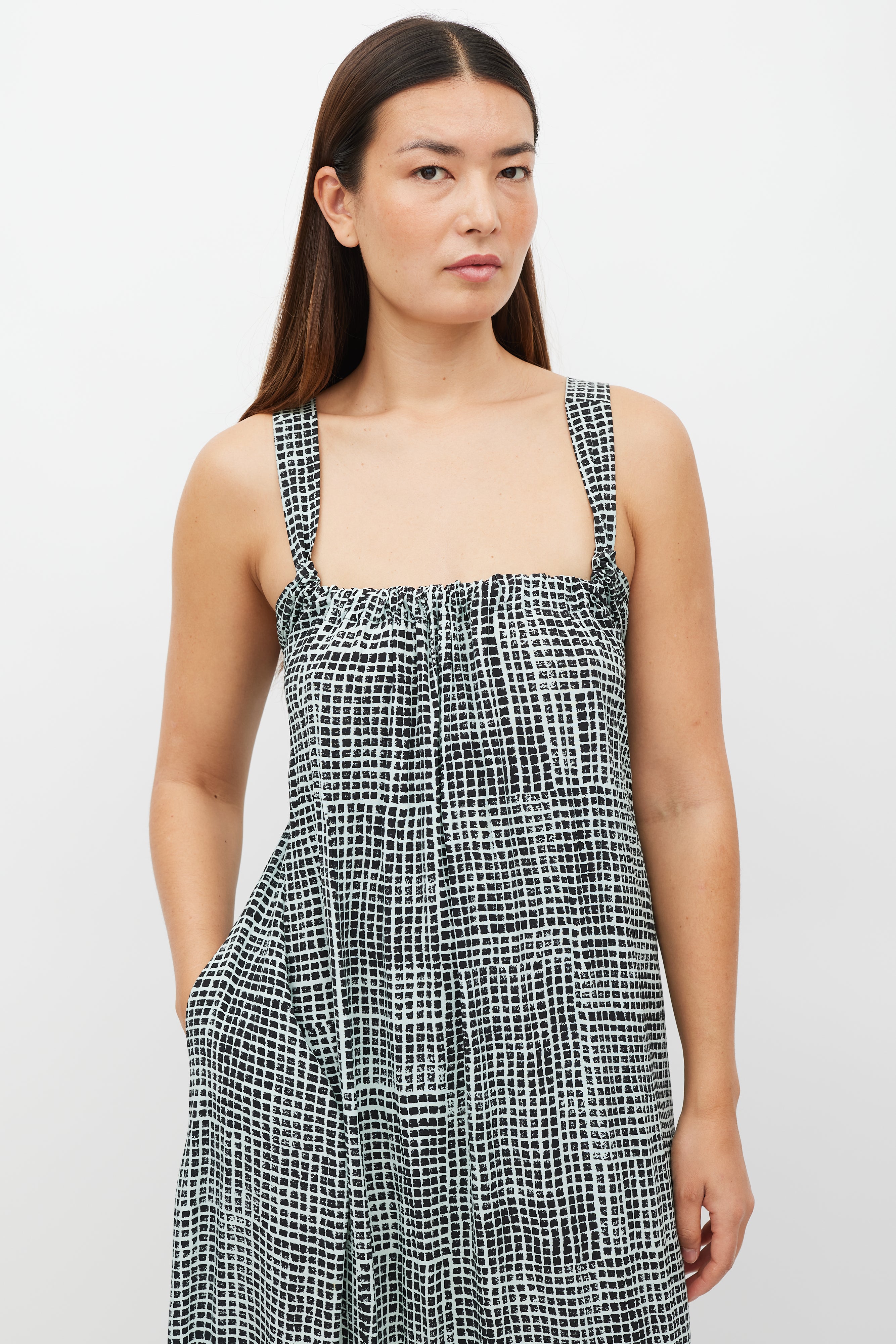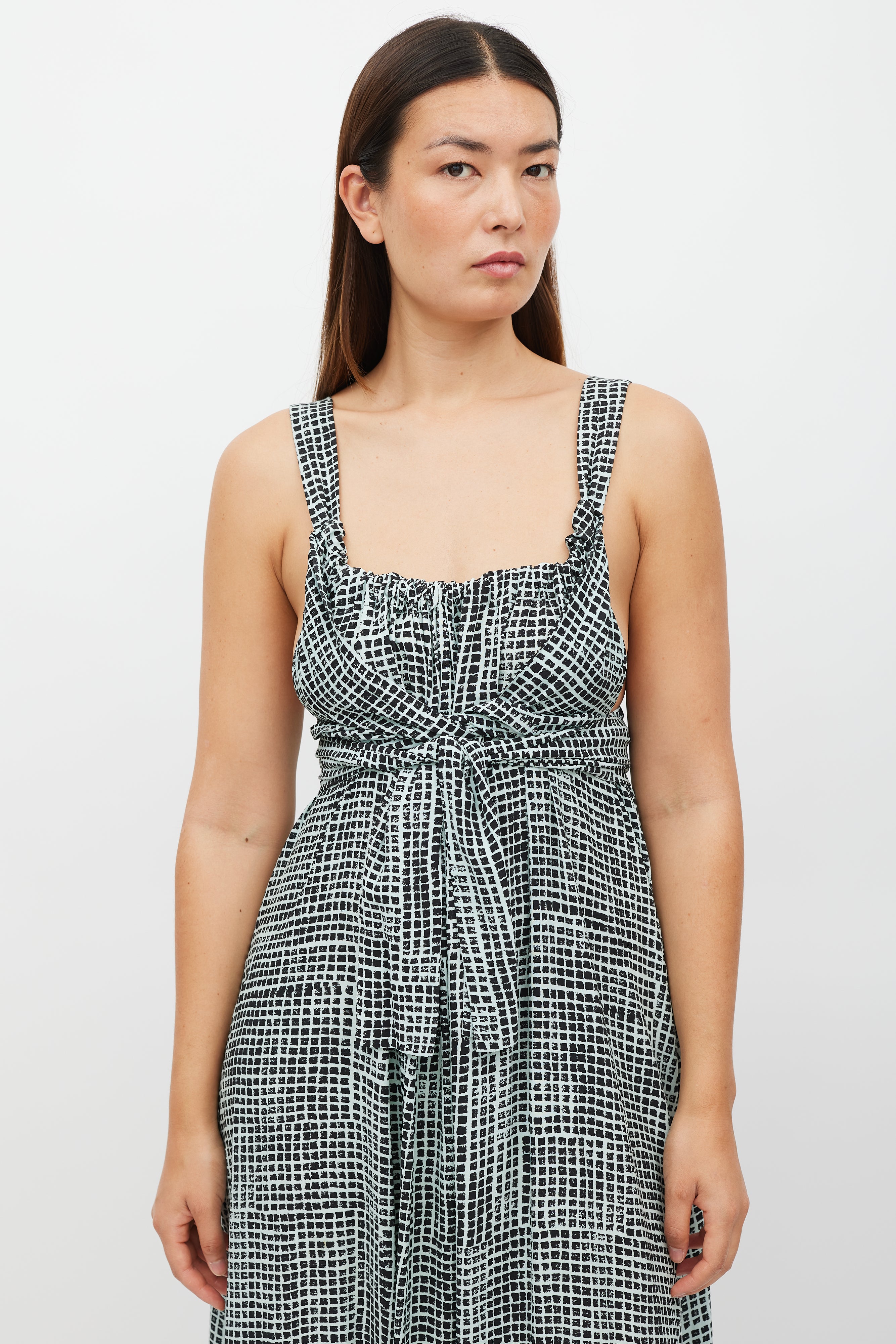 Pre-owned Proenza Schouler White Label green dress featuring a black grid pattern throughout, round neckline, sleeveless styling, two slip pockets at hip, and wrap front detail.