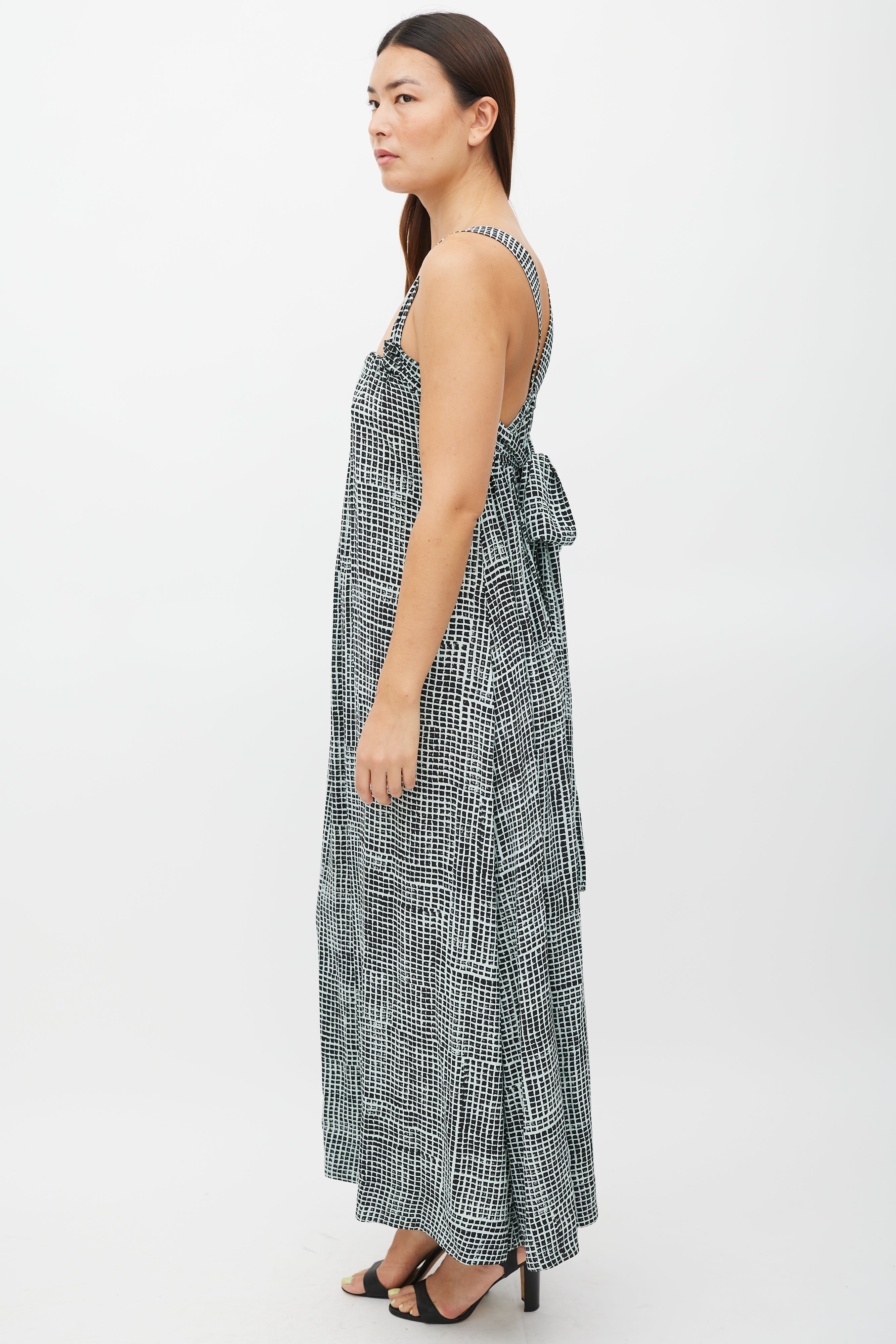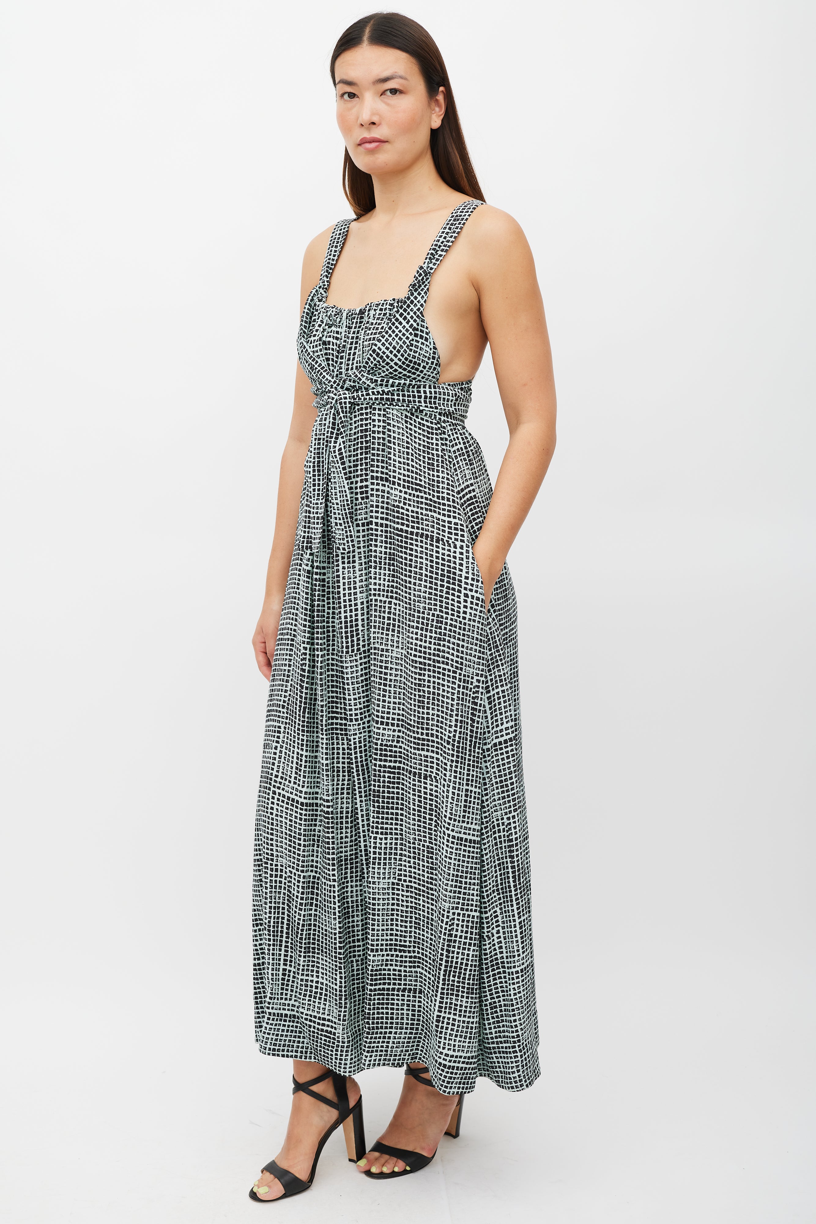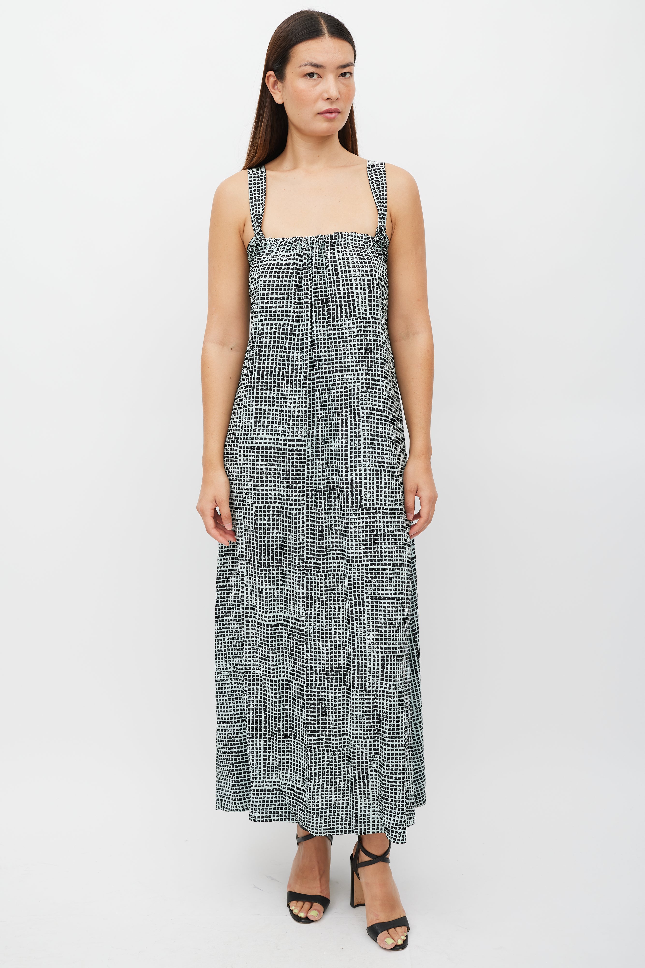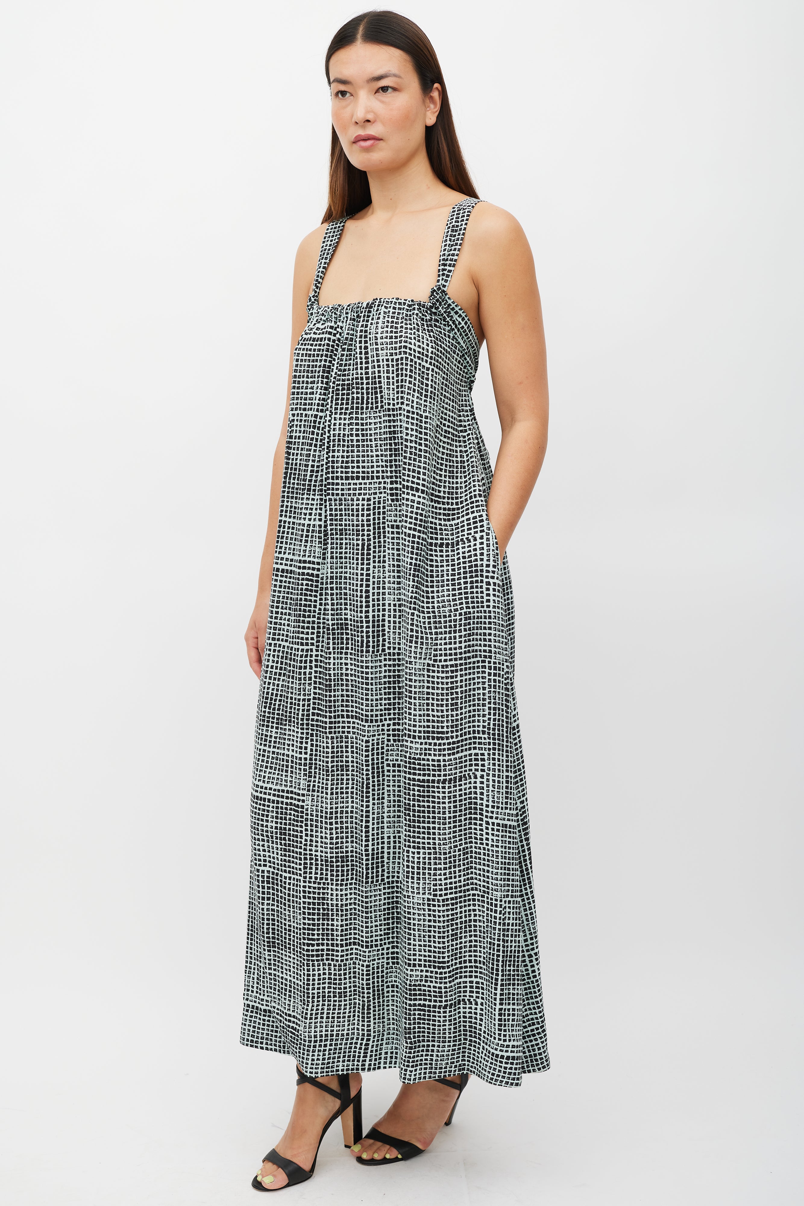 Pre-owned Proenza Schouler White Label green dress featuring a black grid pattern throughout, round neckline, sleeveless styling, two slip pockets at hip, and wrap front detail.