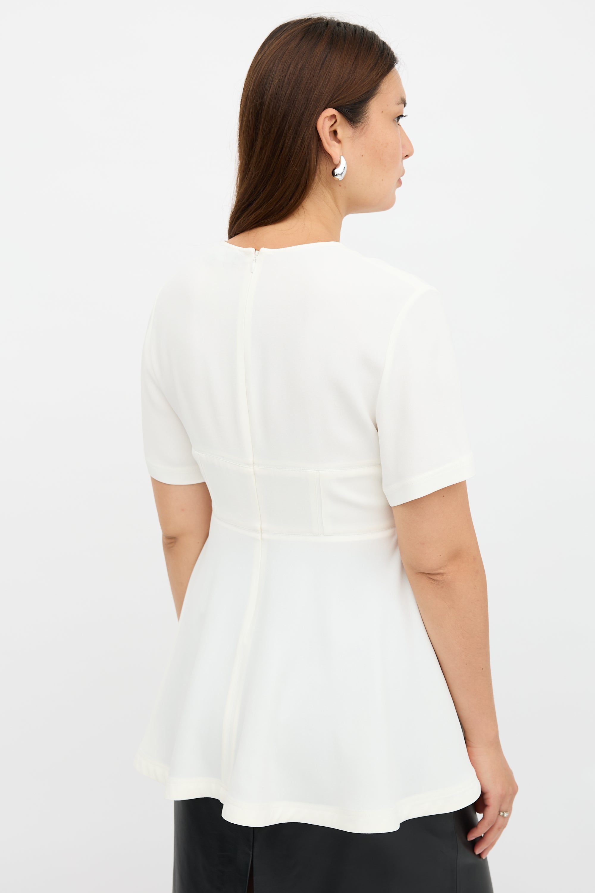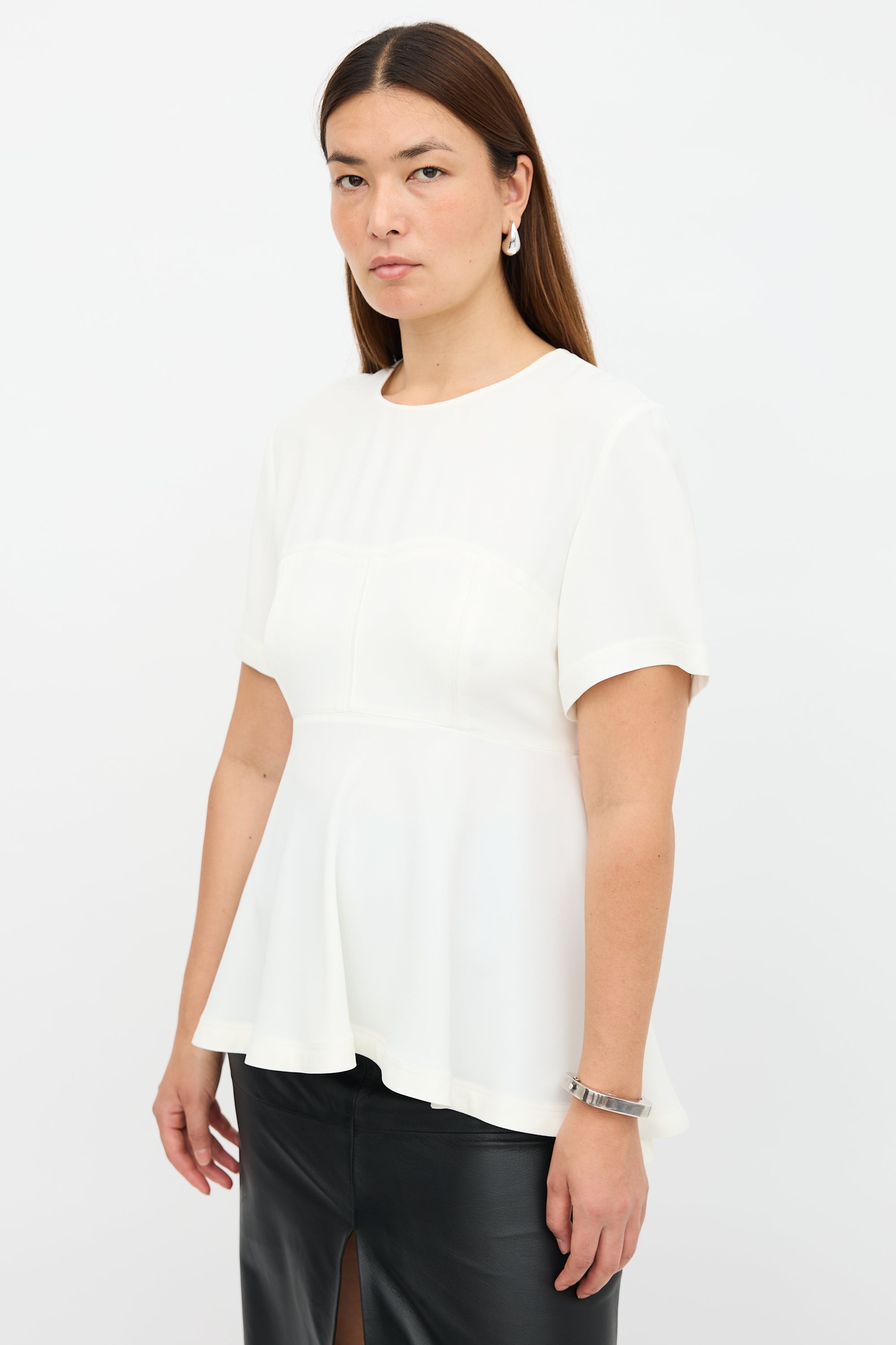 Pre-owned Proenza Schouler white top featuring a panelled design, round neckline, concealed back zip, and hi-low hem.
