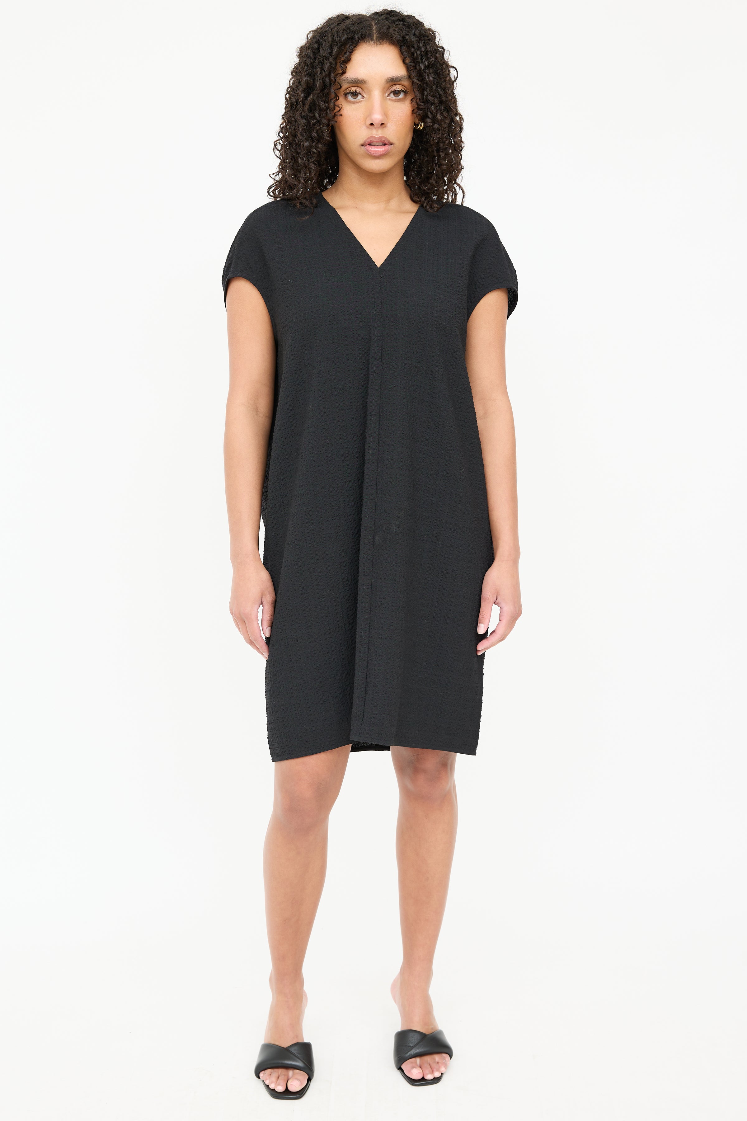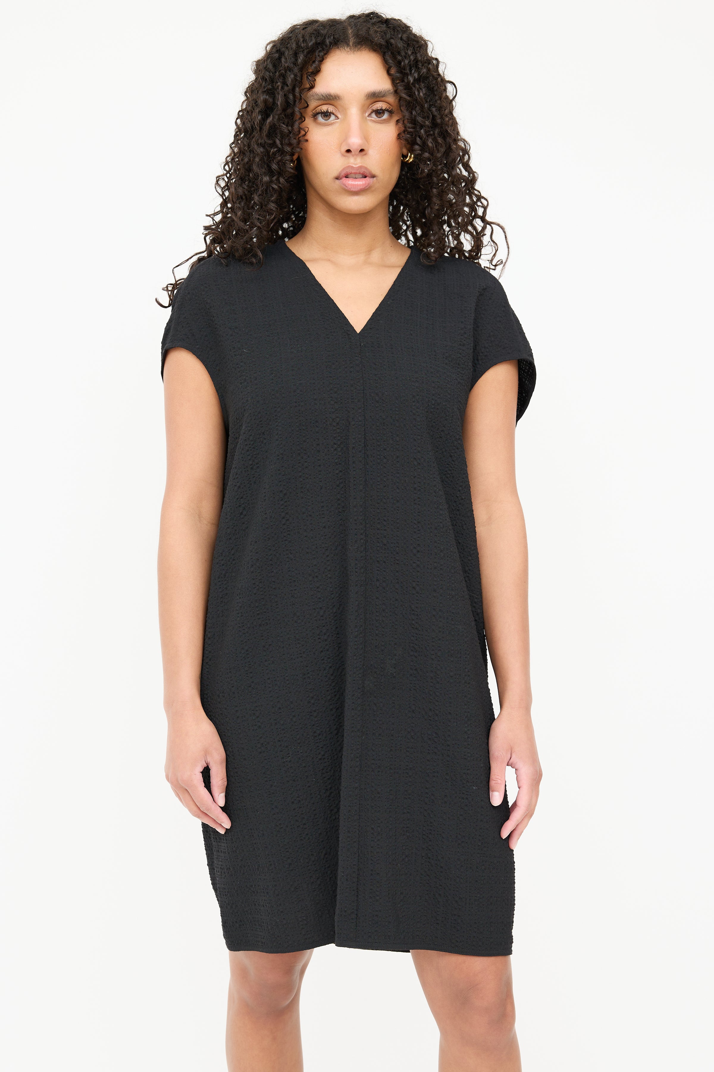 Pre-owned Rick Owens Fall/Winter 2016 black sleeveless midi dress featuring V neck, and centre seam.