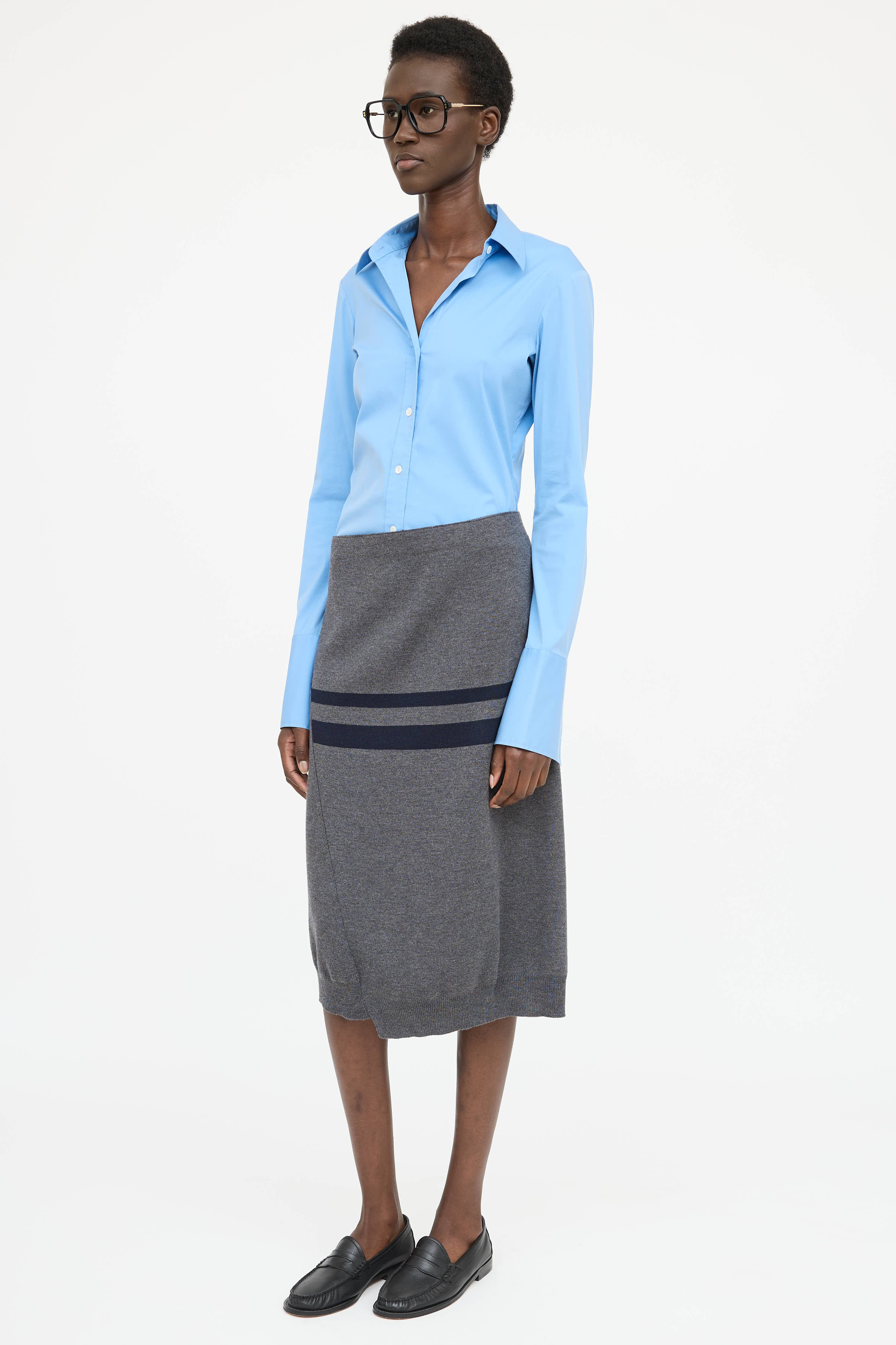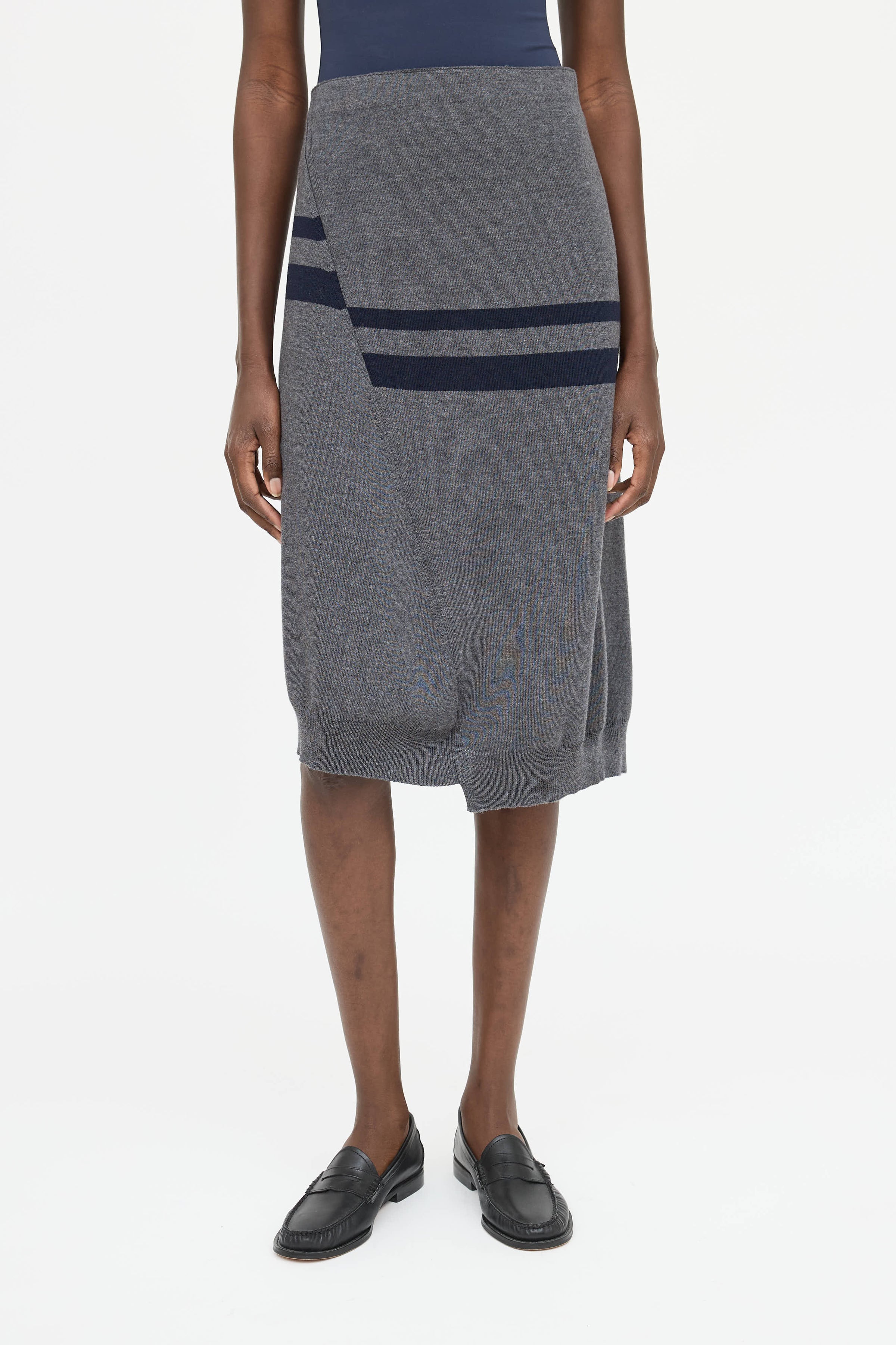 Pre-owned Jil Sander grey skirt featuring elastic trim waistband and asymmetrical ribbed hemline,