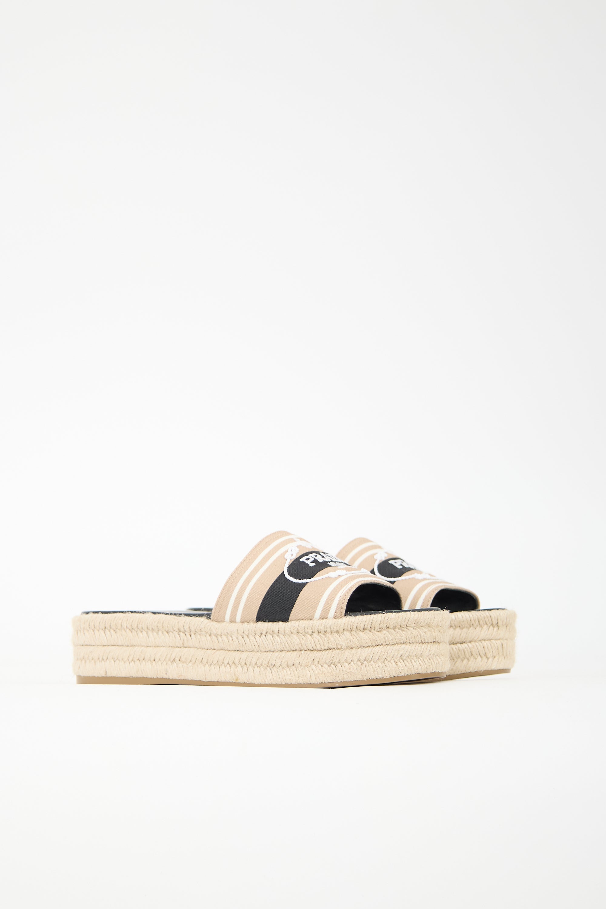 Prada Logo Espadrille Platform Slide