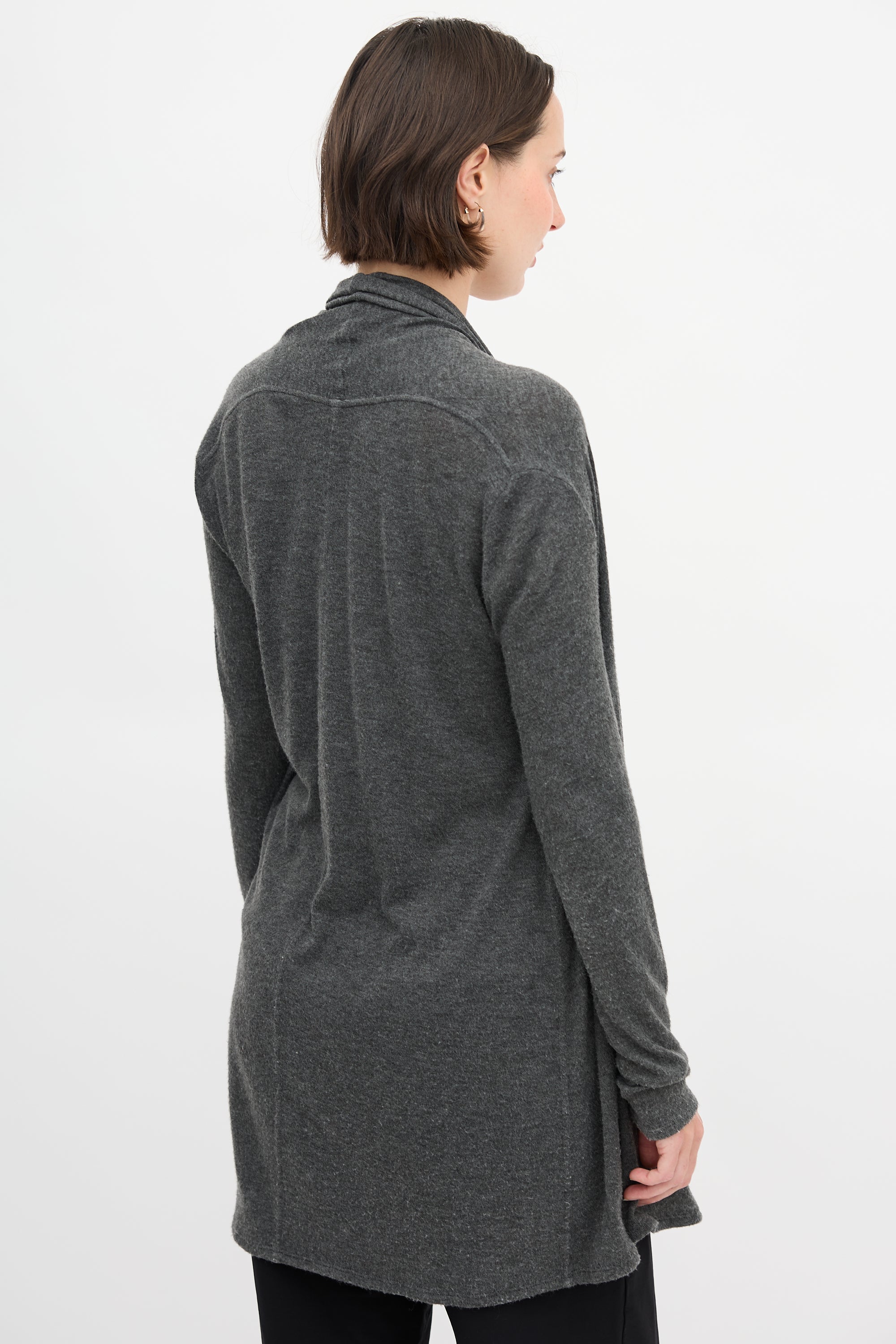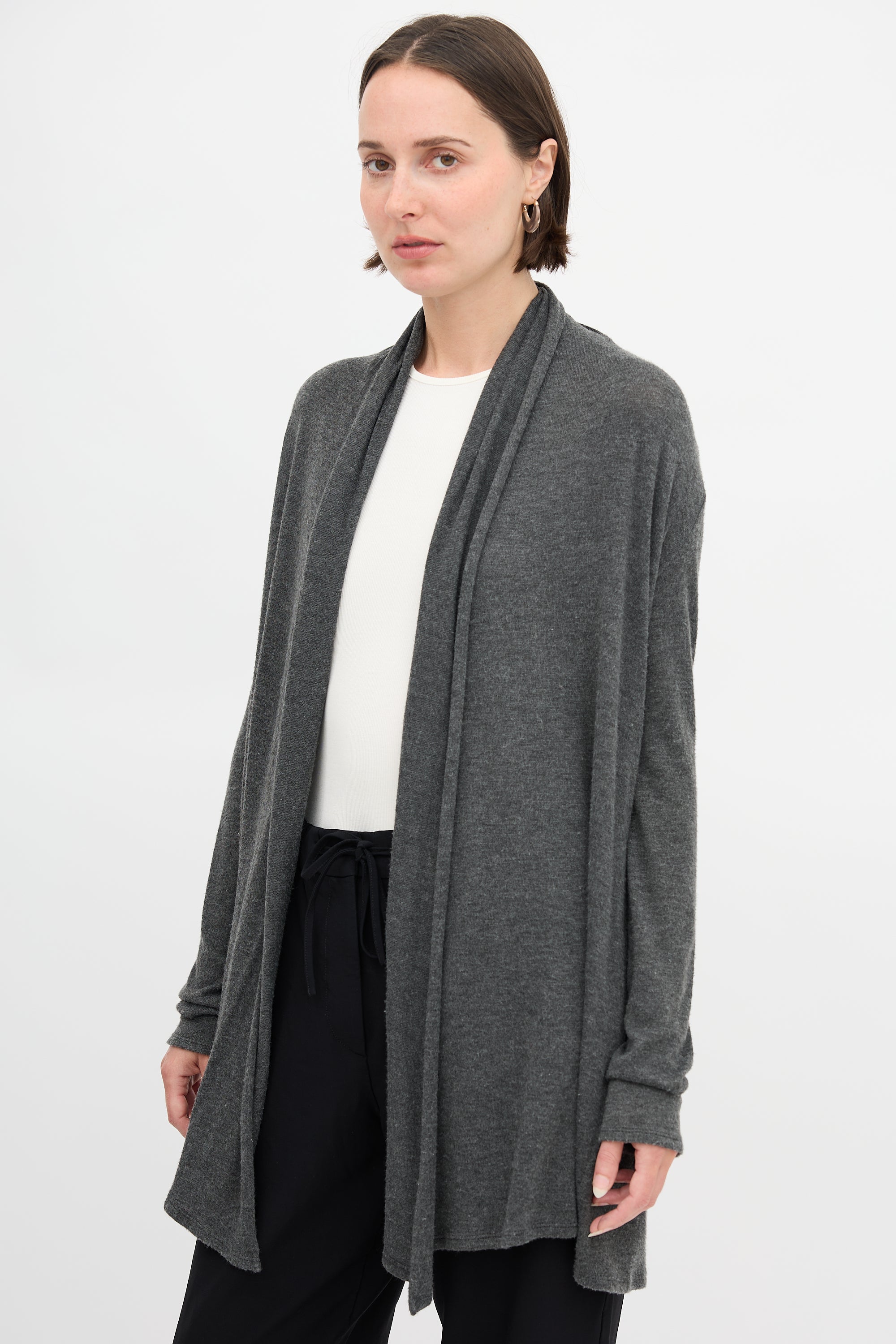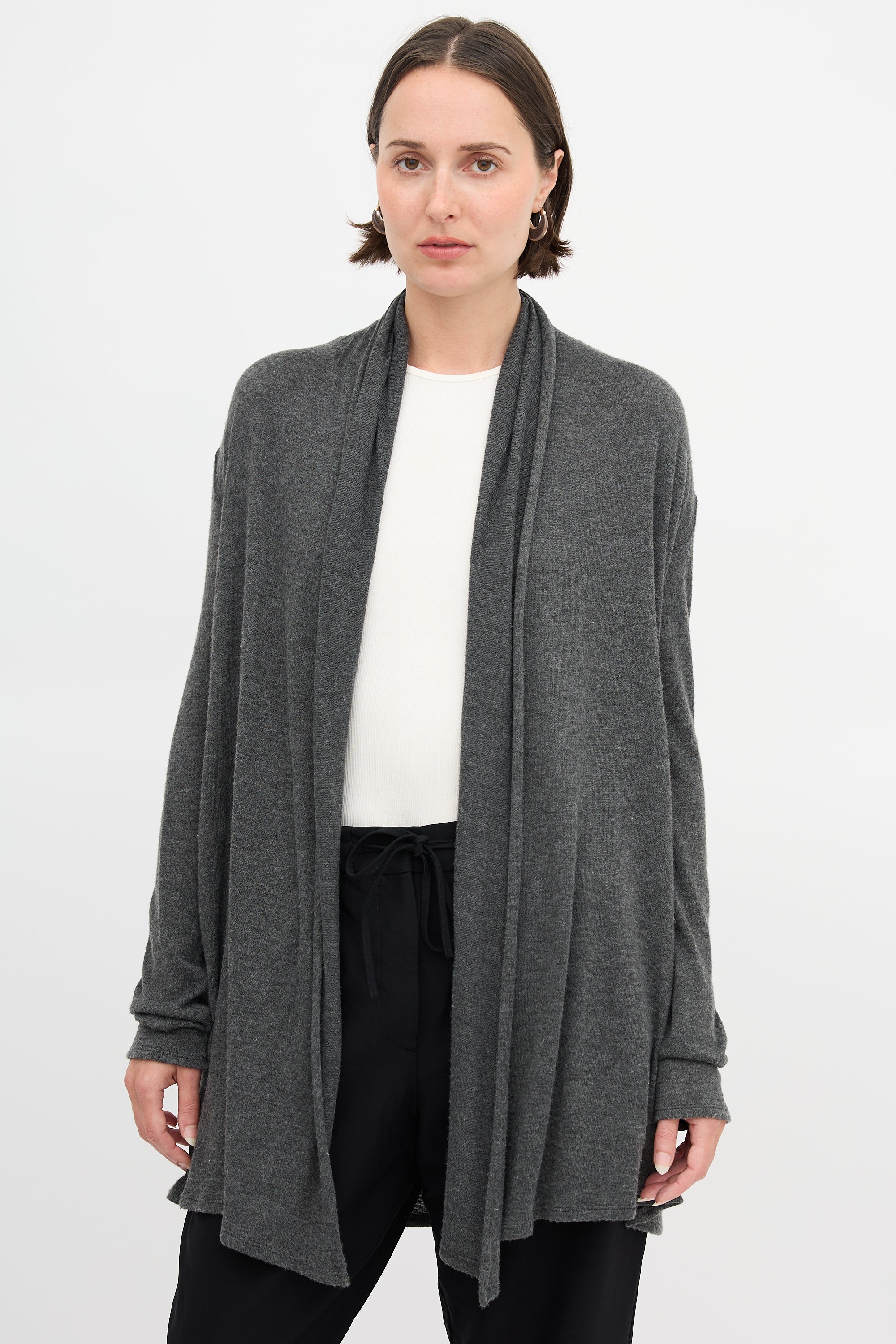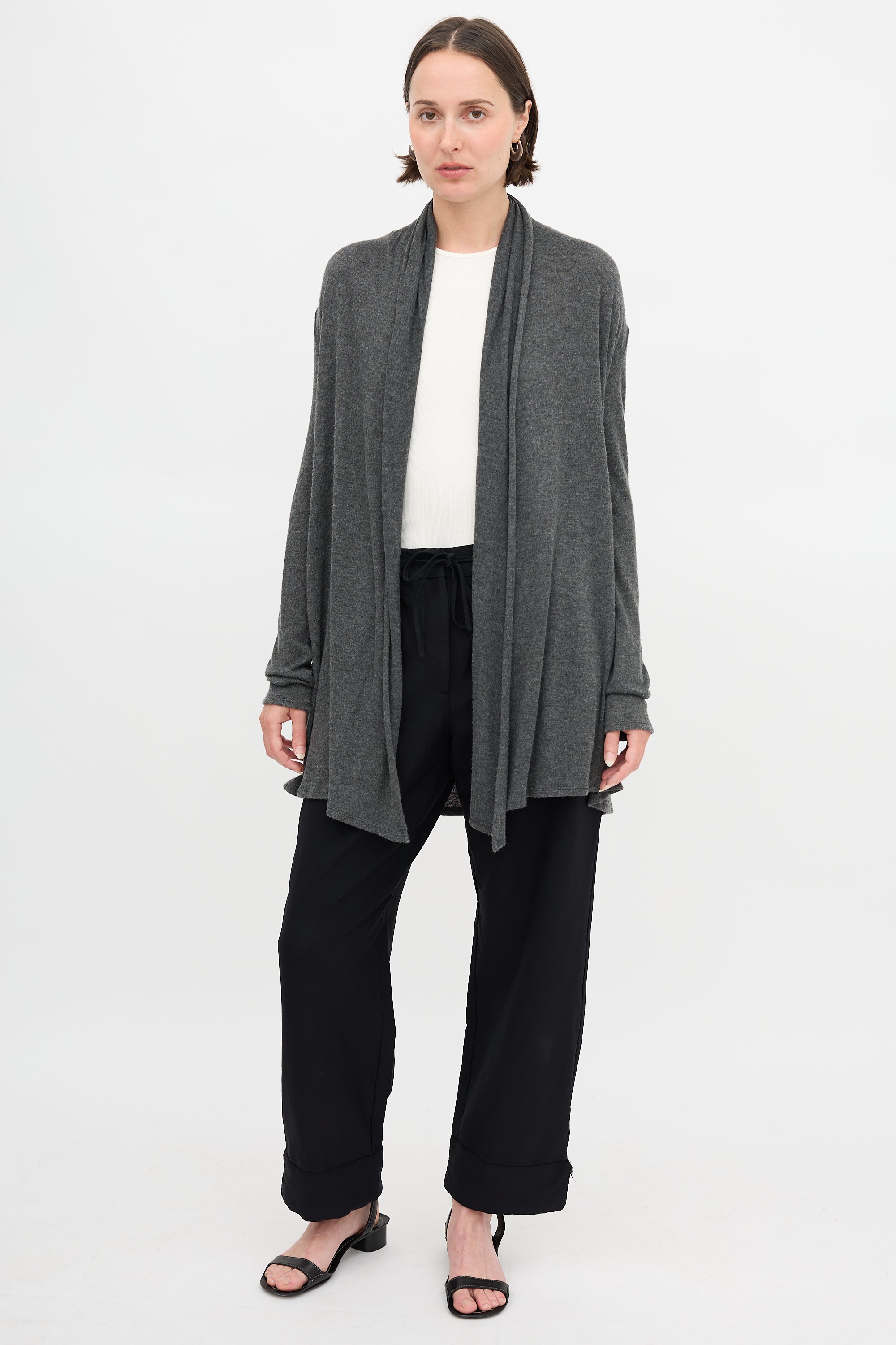 Pre-owned The Row dark grey jersey knit Knightsbridge cardigan featuring open draped front and dolman sleeves.