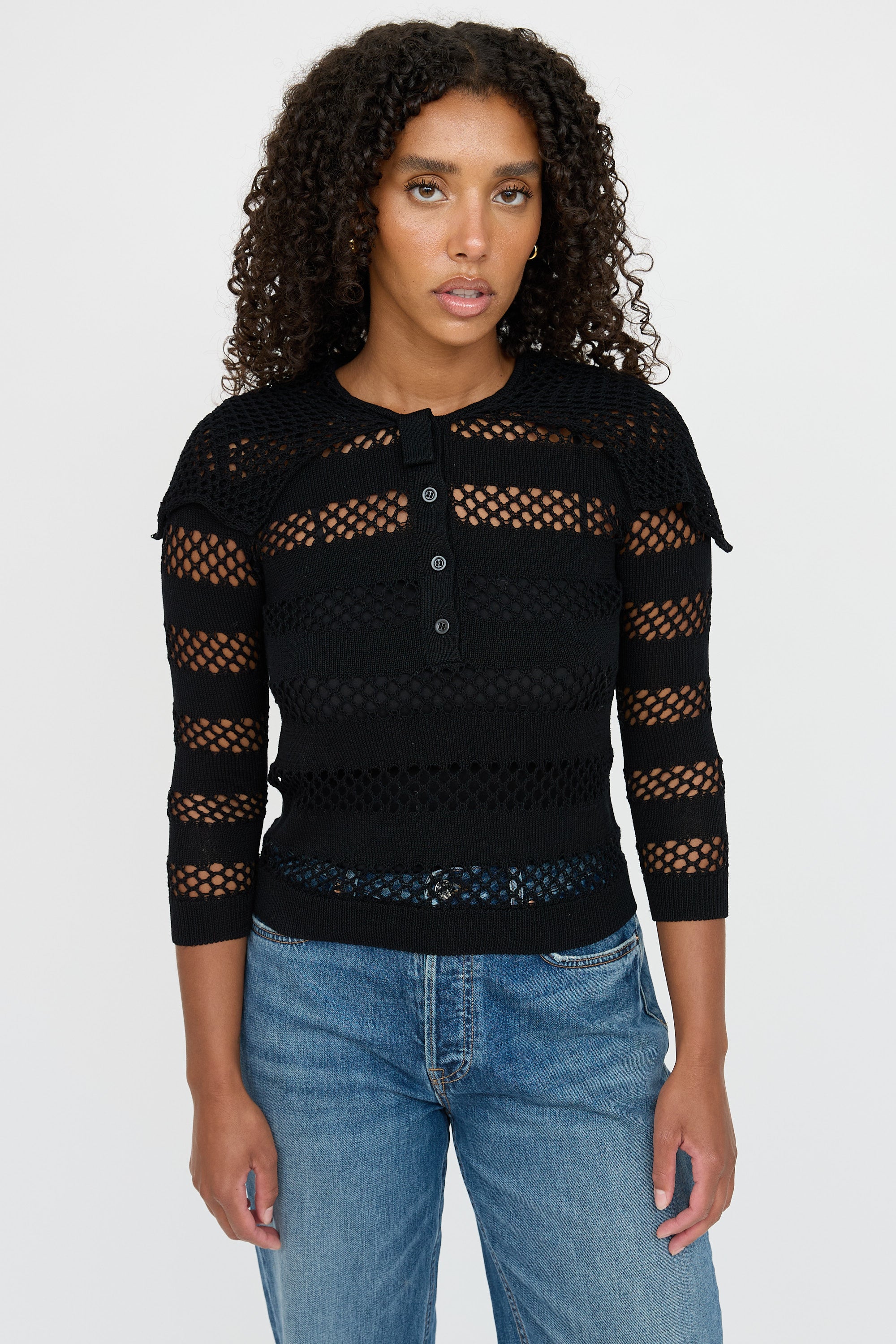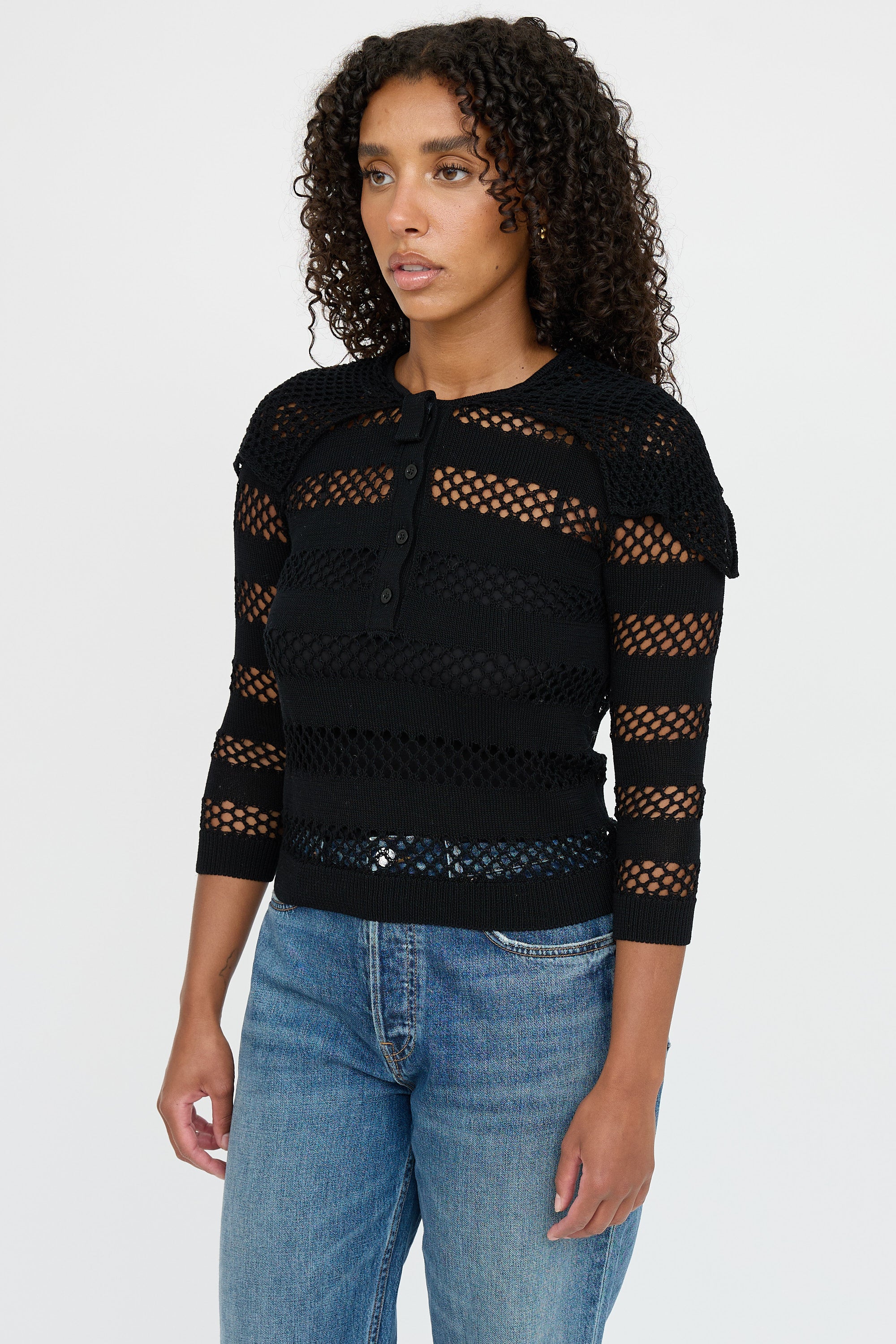 Pre-owned Dior knit black long sleeve top featuring sailor collar, three quarter button front, and detachable slip.