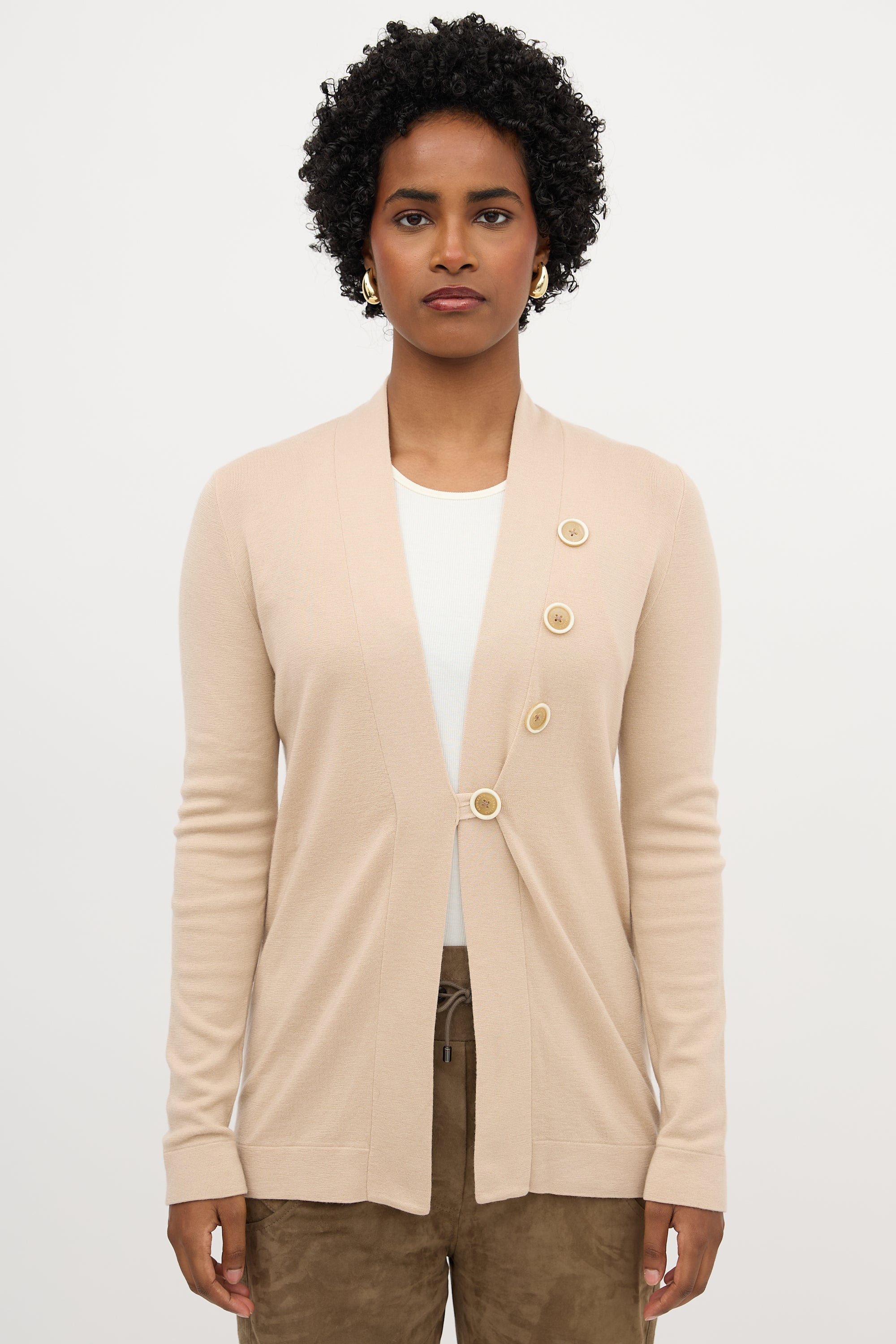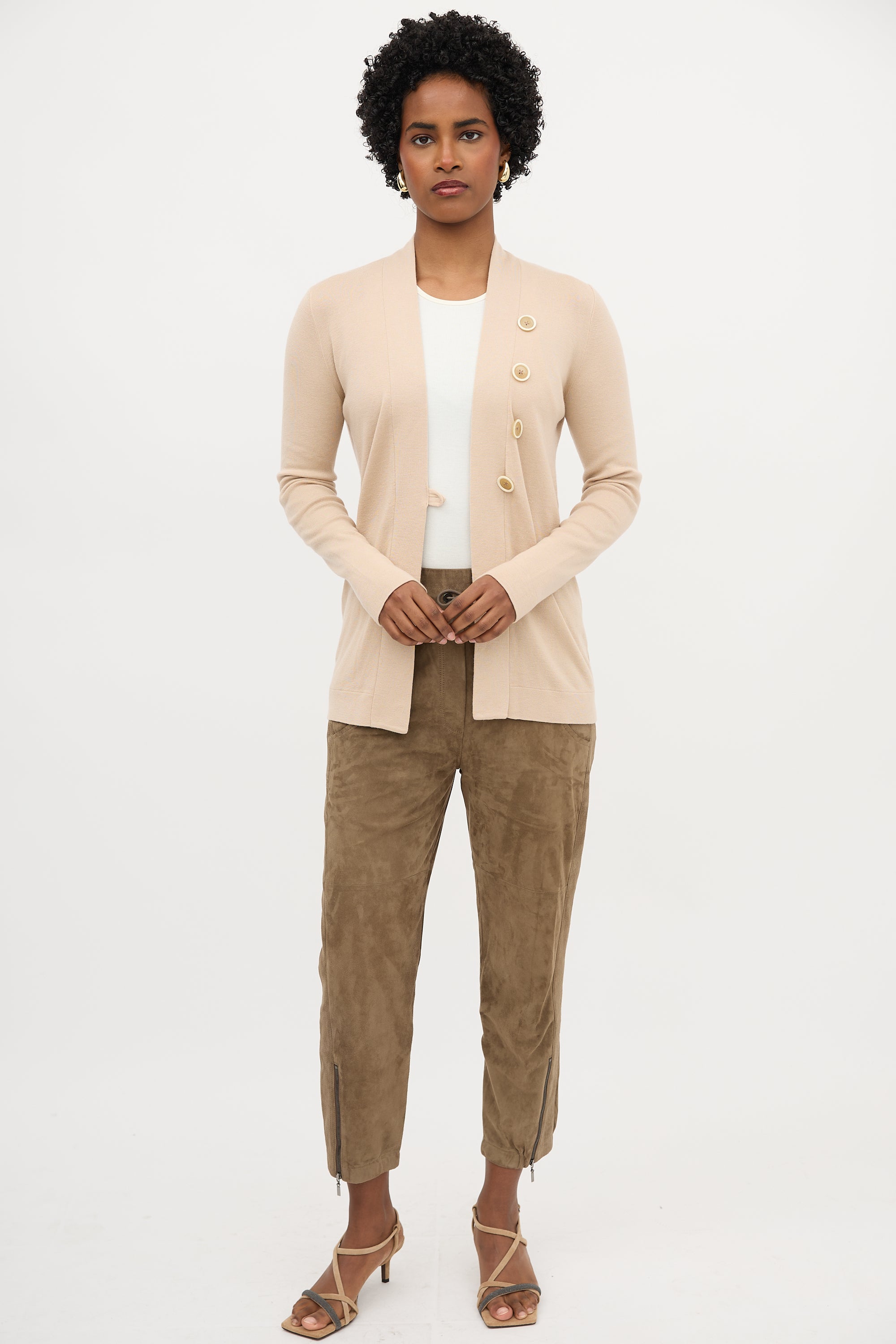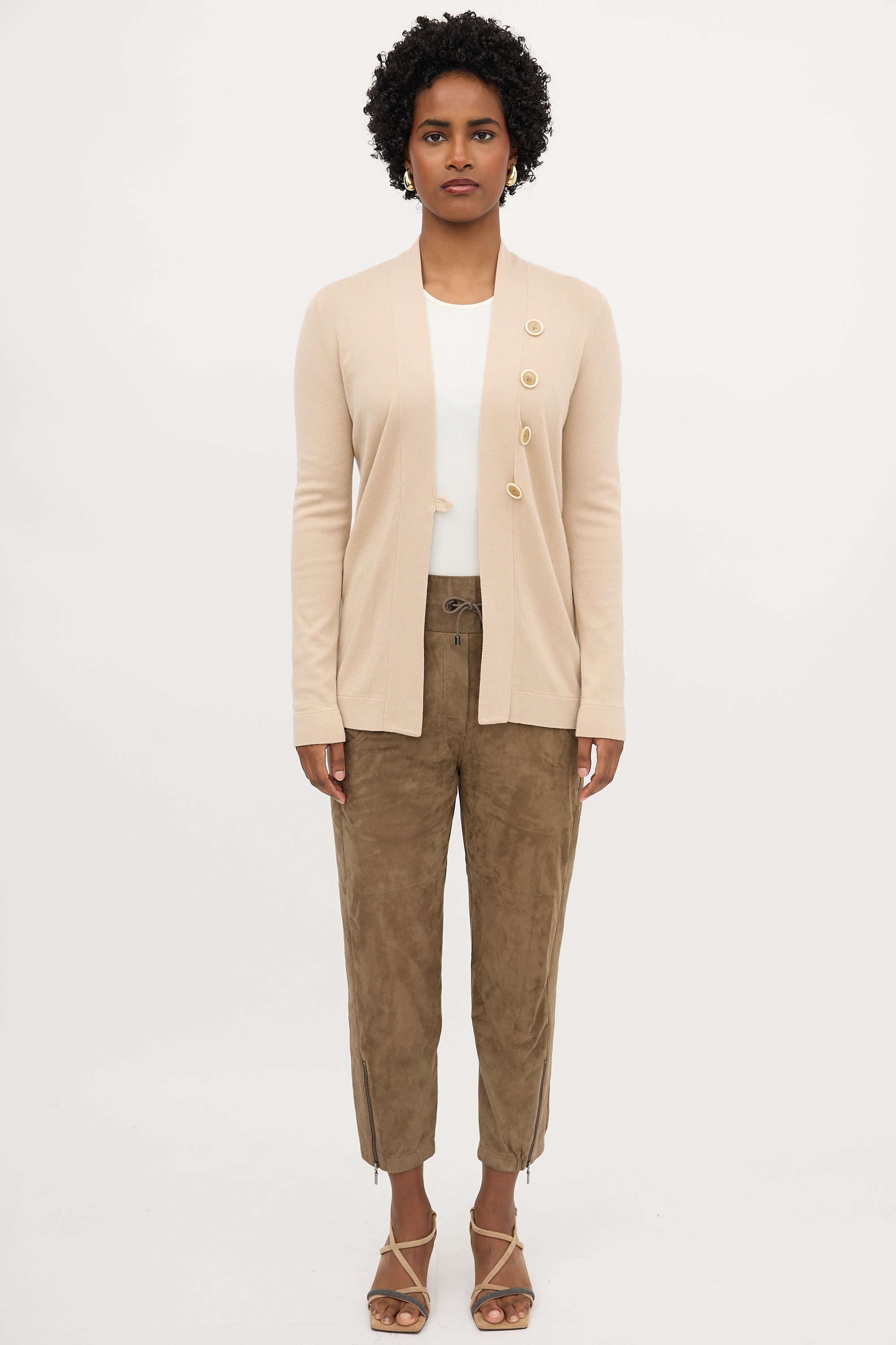 Pre-owned Brunello Cucinelli beige cashmere cardigan featuring V-neckline, button placket, and one loop closure.