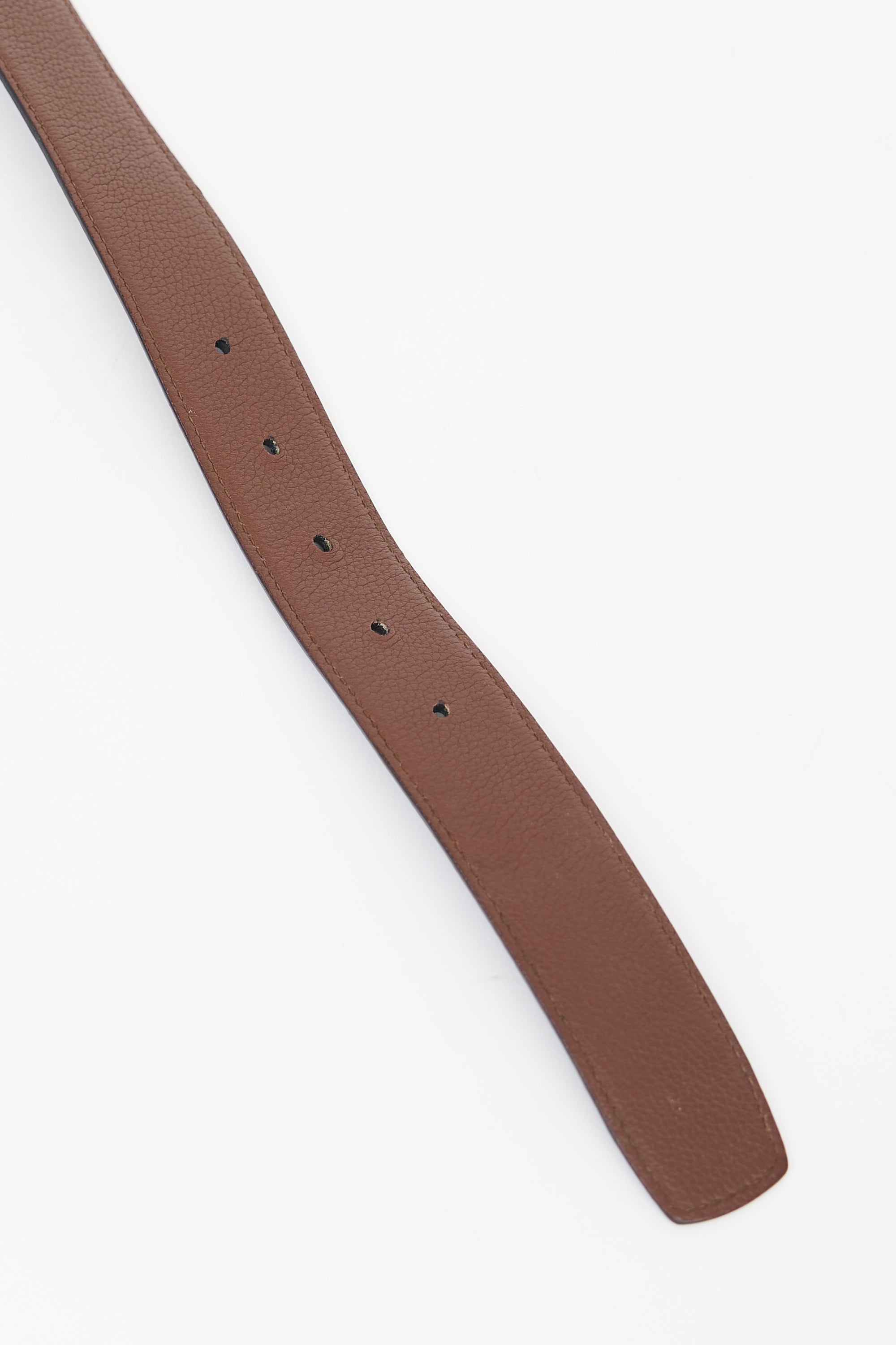 Good Moderate hairline scratches at buckle. Minor scuffing and warping at surface of leather. Wear from clipping at raw end of belt.