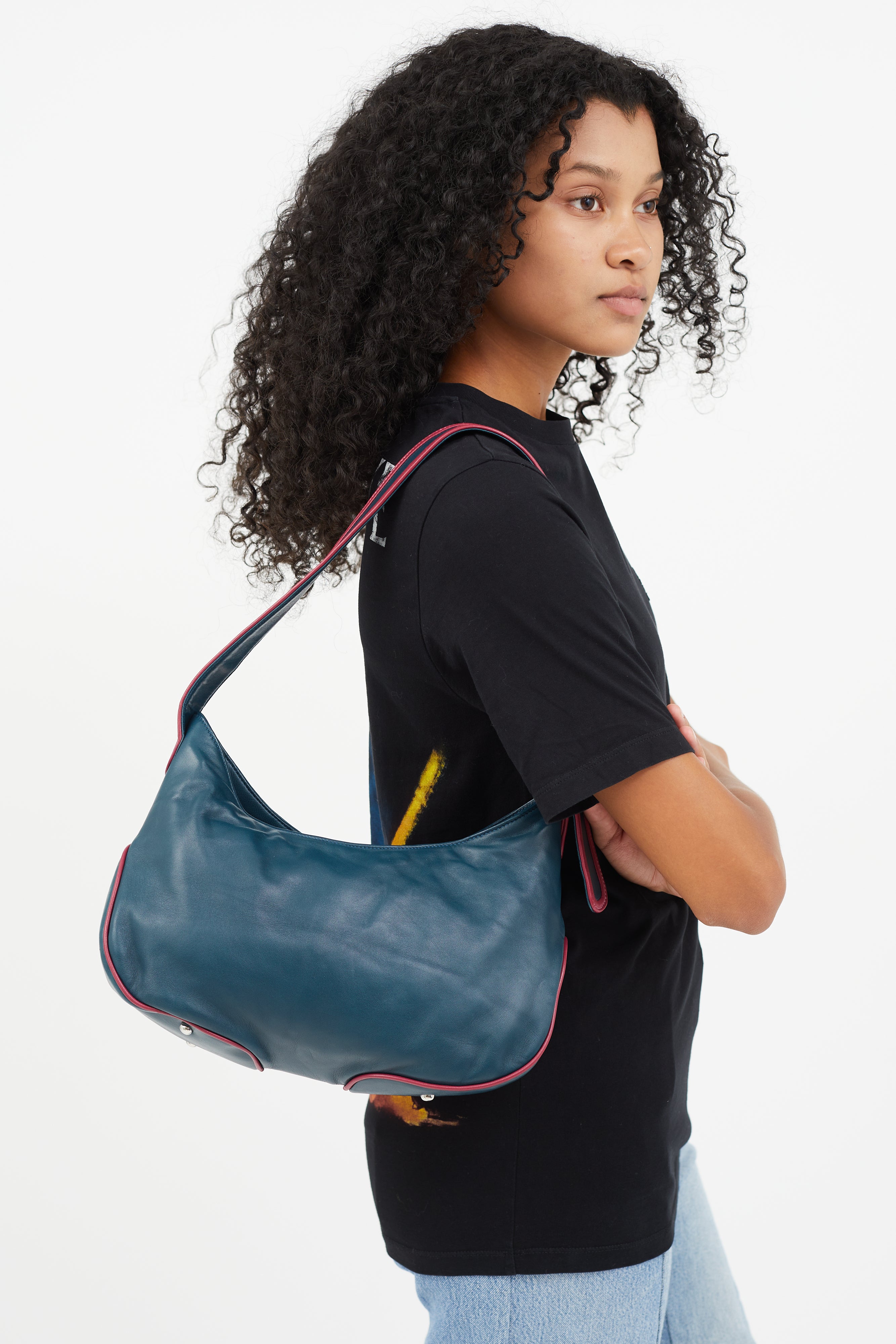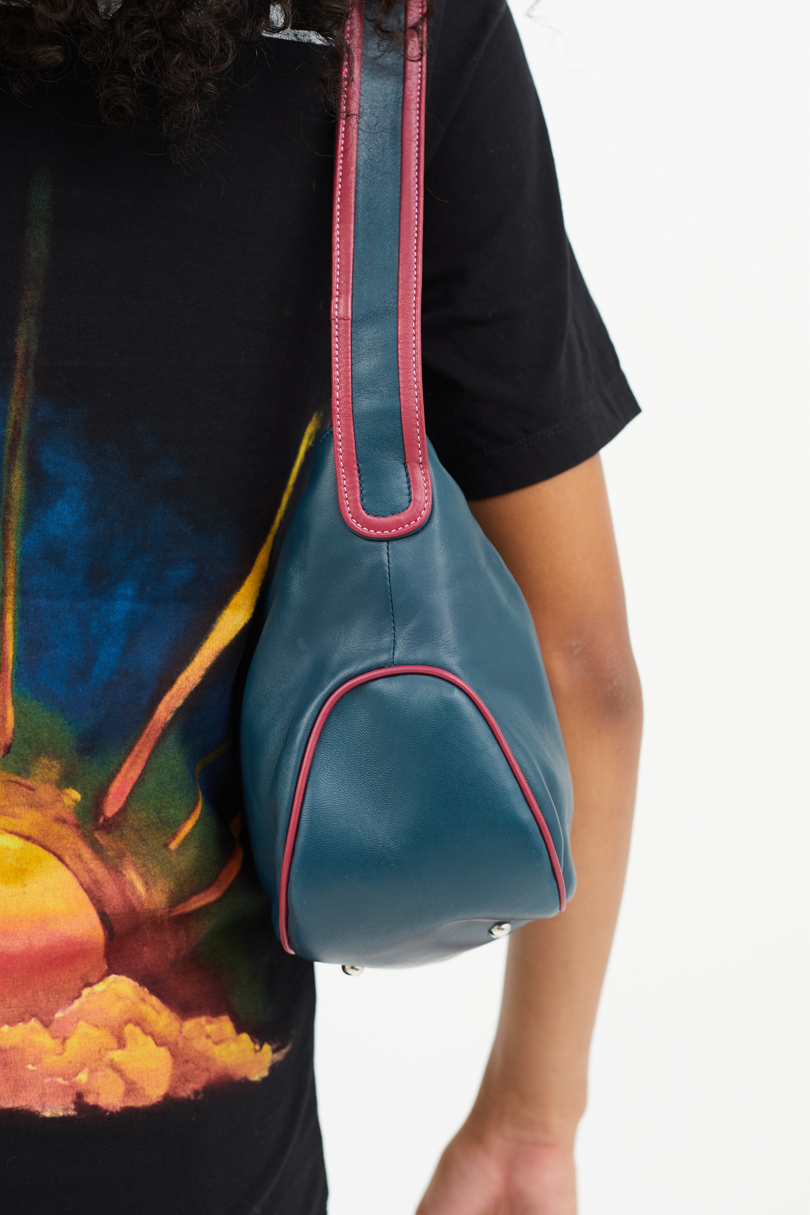 Blue & Pink Leather Shoulder Bag