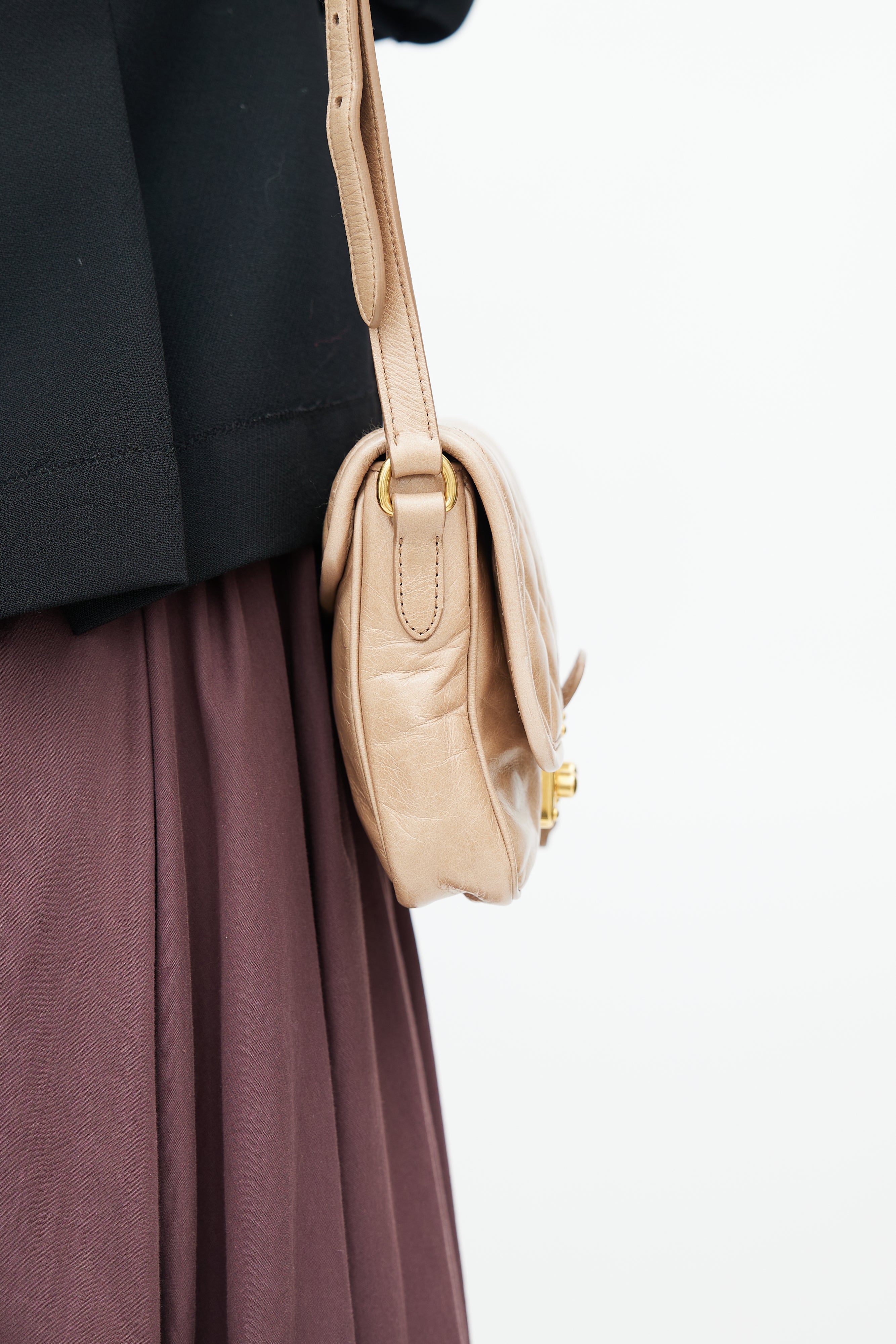 Beige Quilted Leather Crossbody Bag