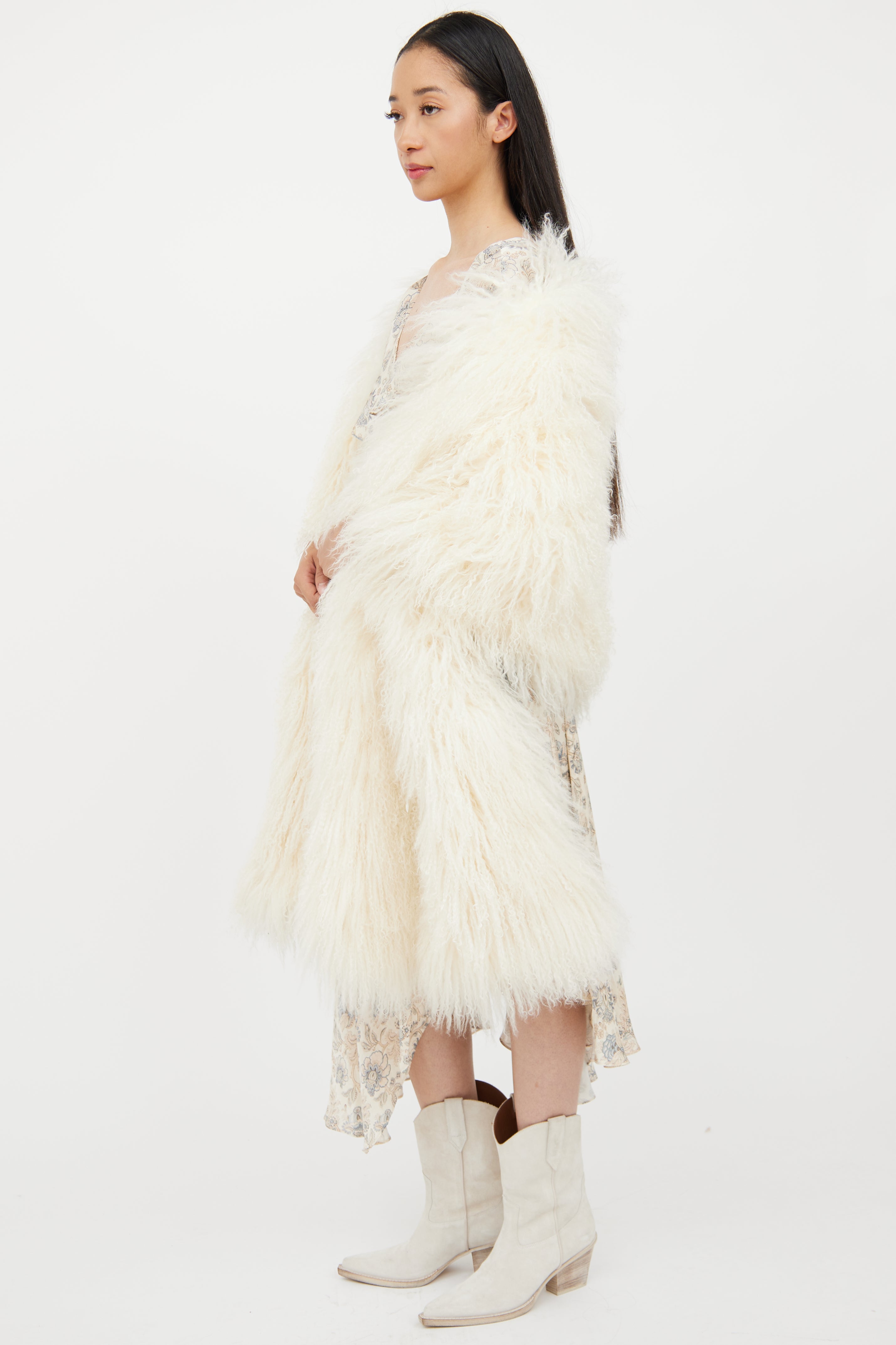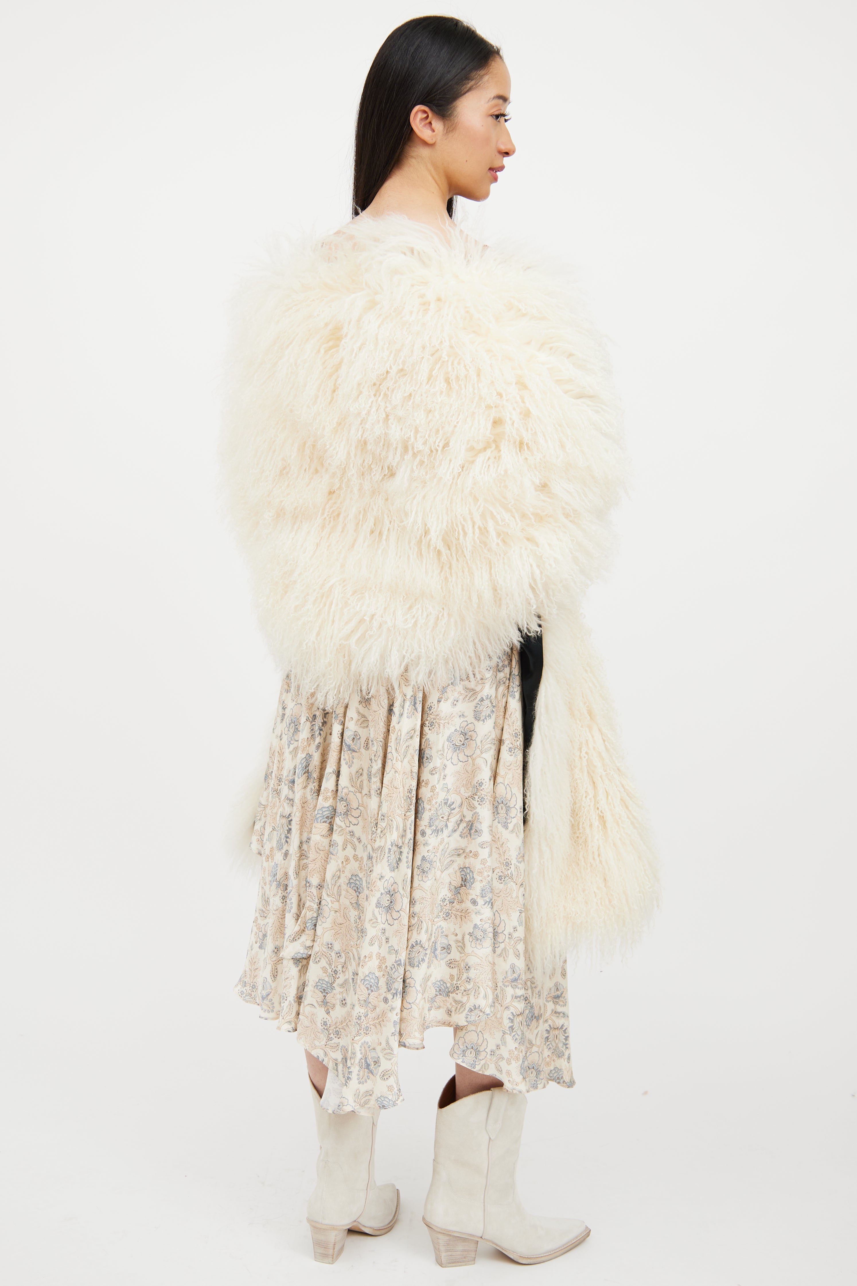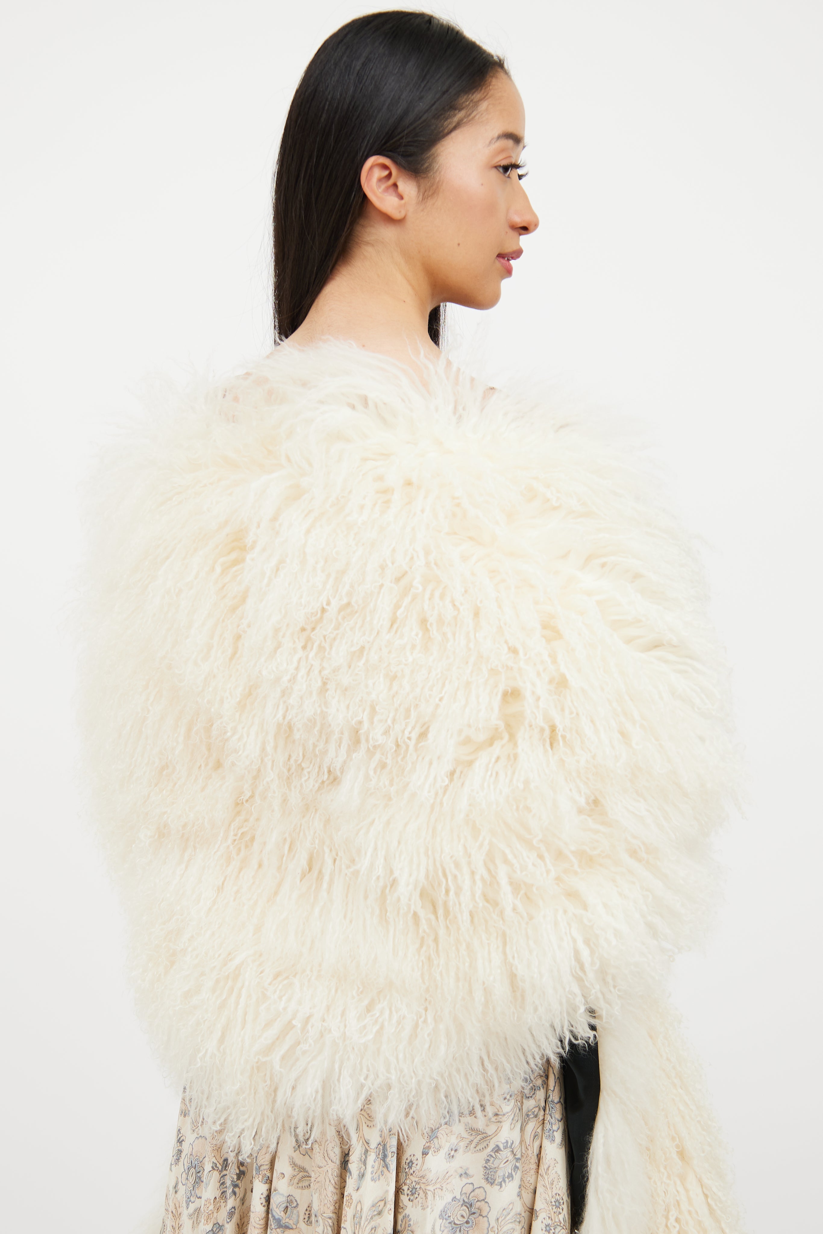 Pre-owned VSP Archive cream Mongolian lamb shawl featuring oversized styling and removeable black lining.