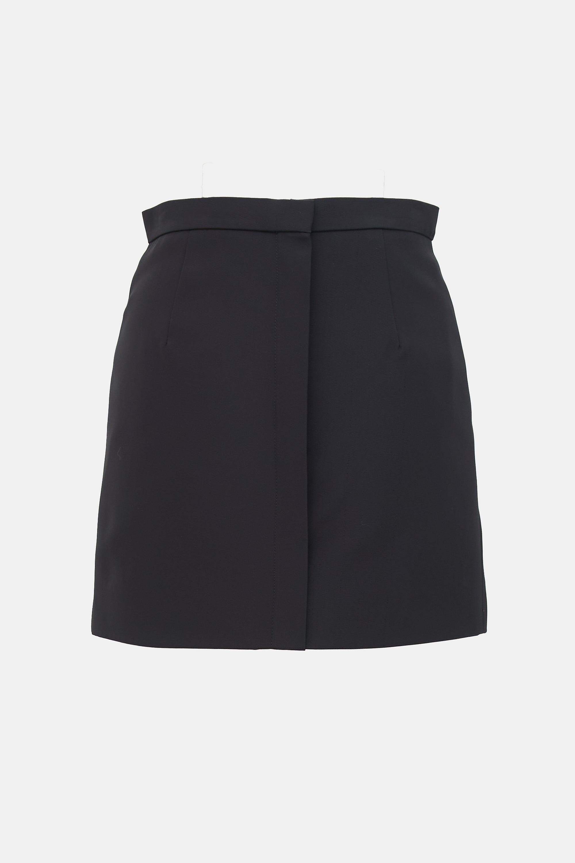 Pre-owned Balenciaga 2014 black mini skirt featuring high waist, lace up grommet detail at front, and concealed back zip closure. Lined.
