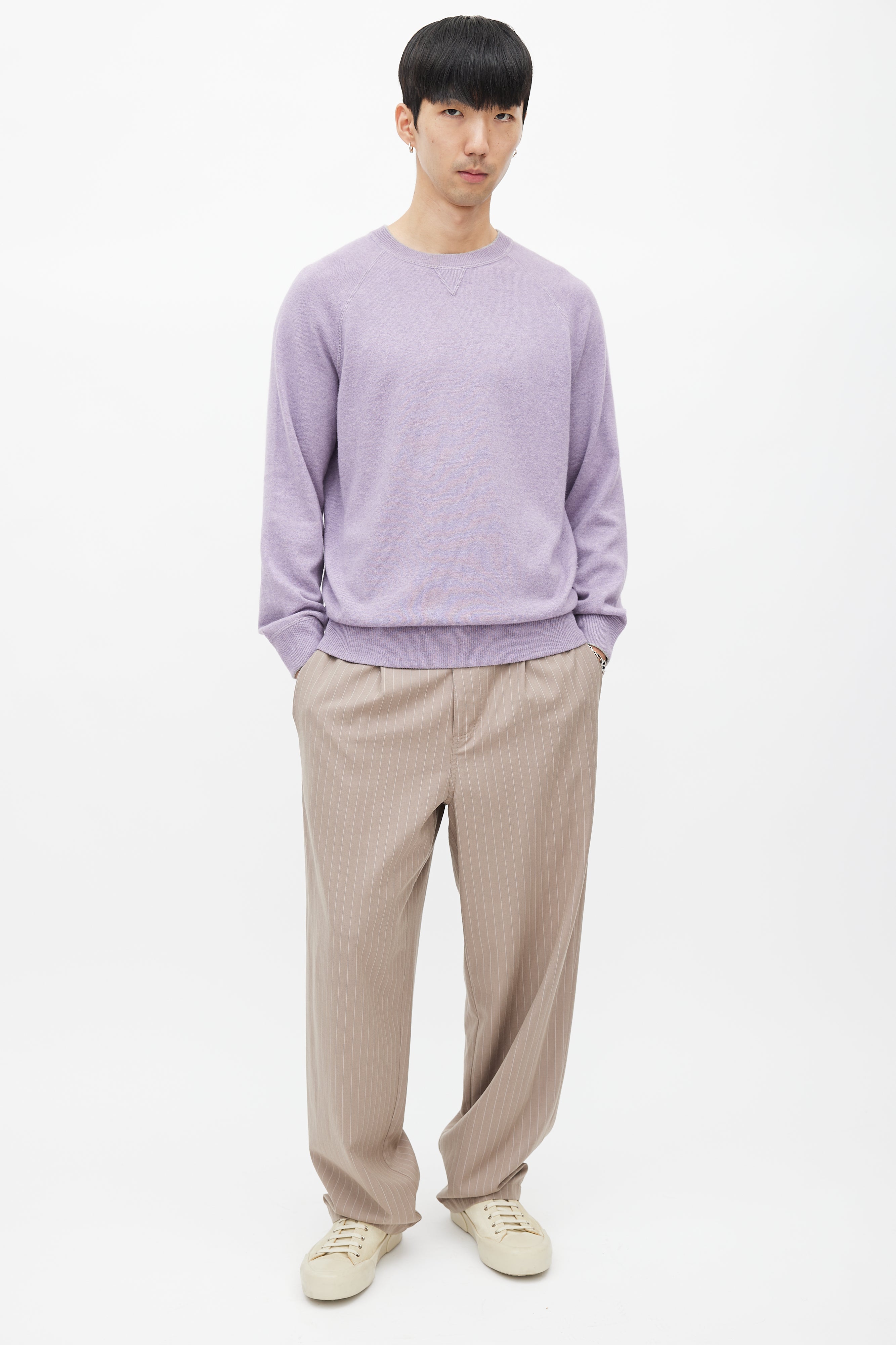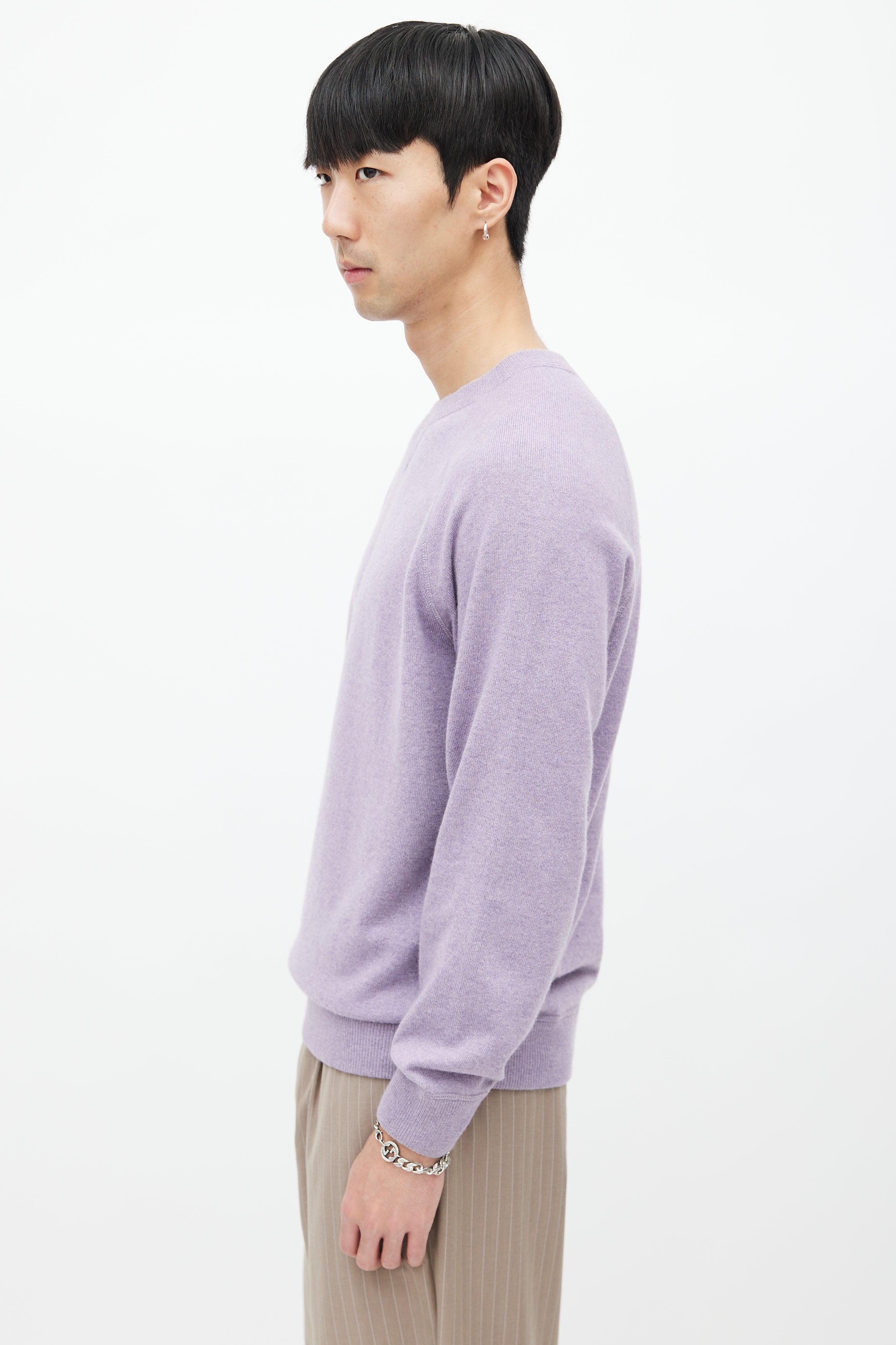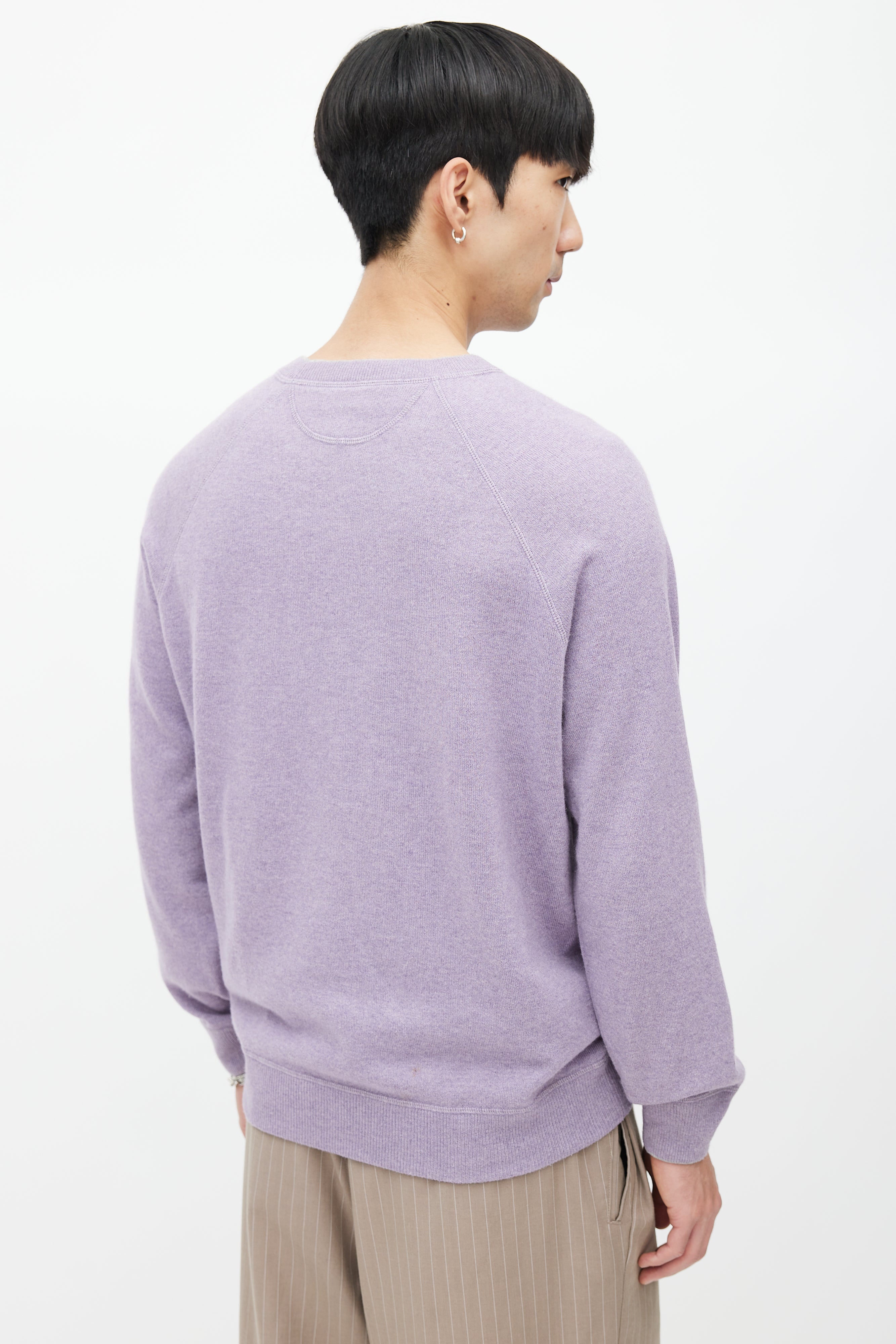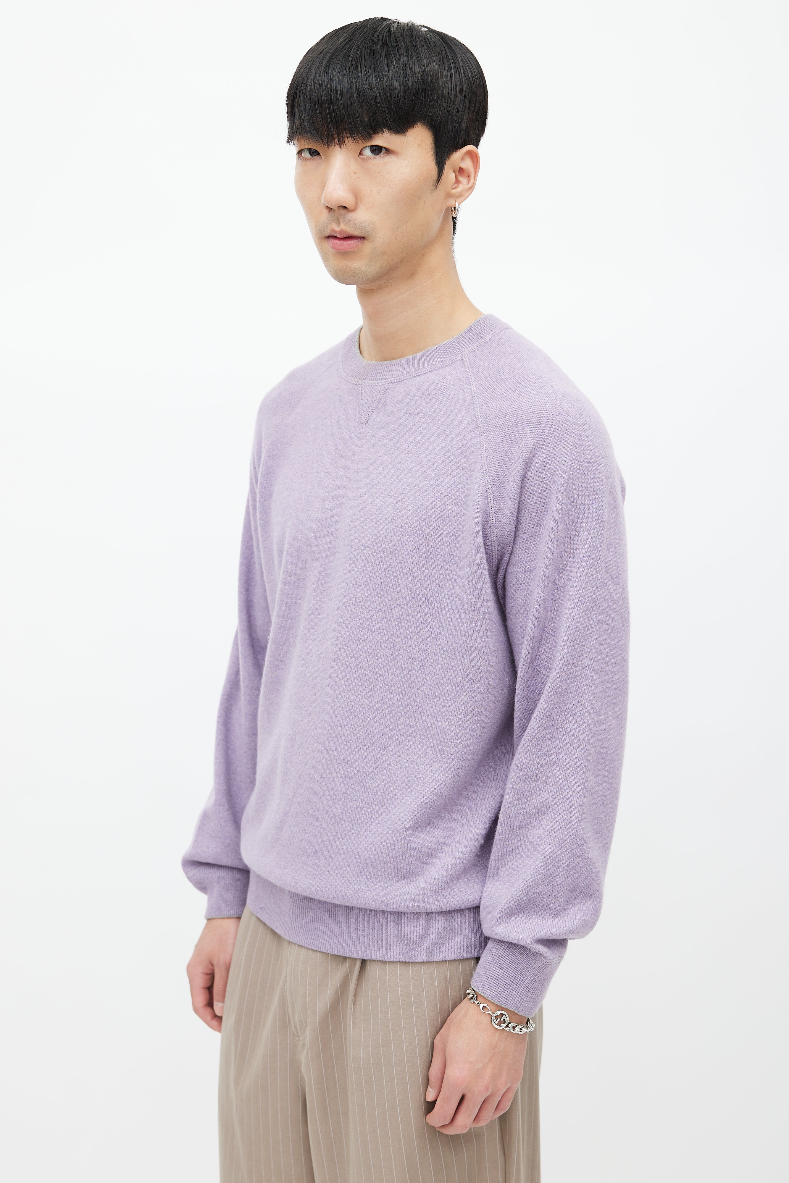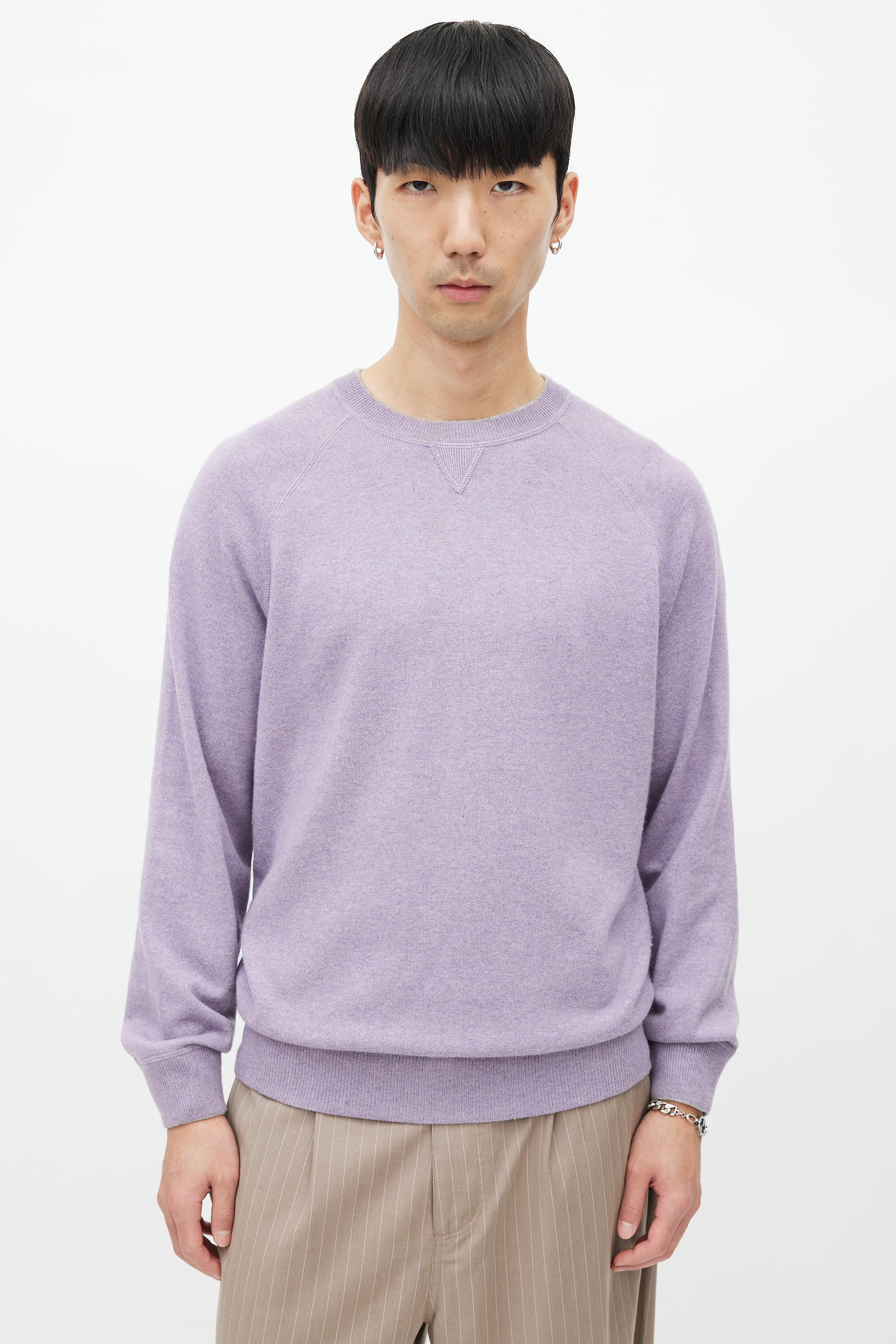 Pre-owned Brunello Cucinelli purple wool knit sweater featuring a crew neckline, long raglan sleeves, and ribbed hem.
