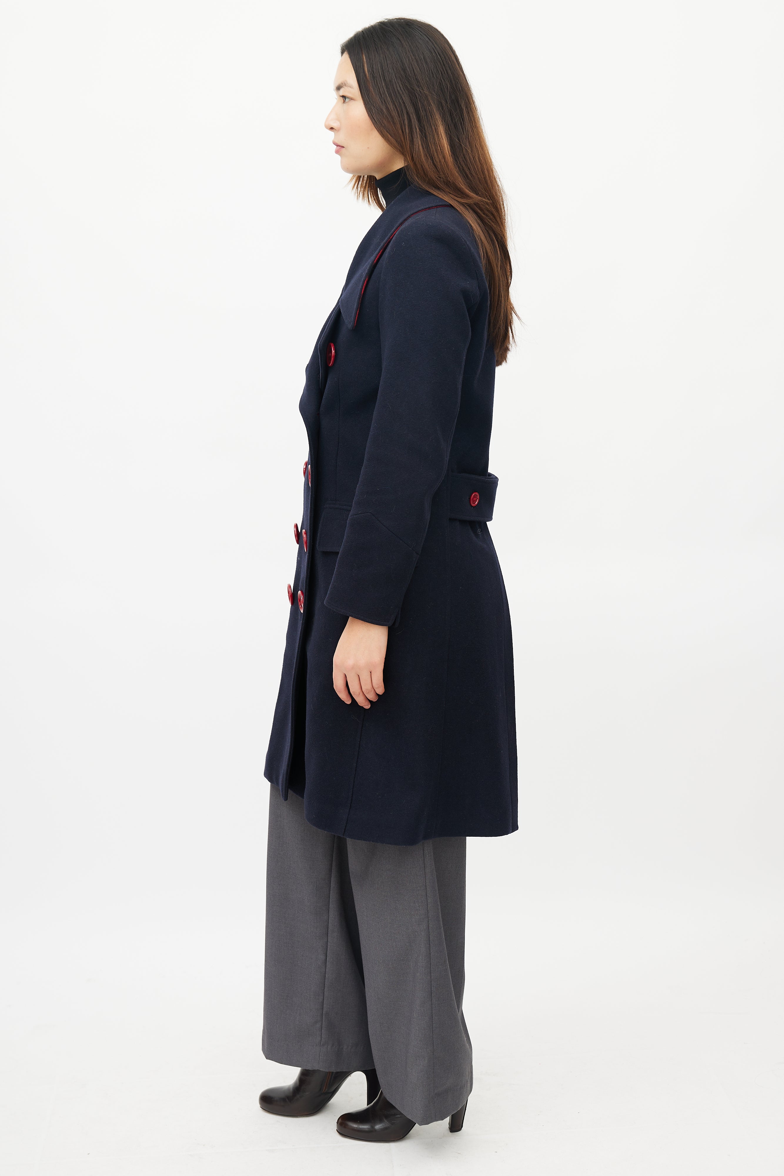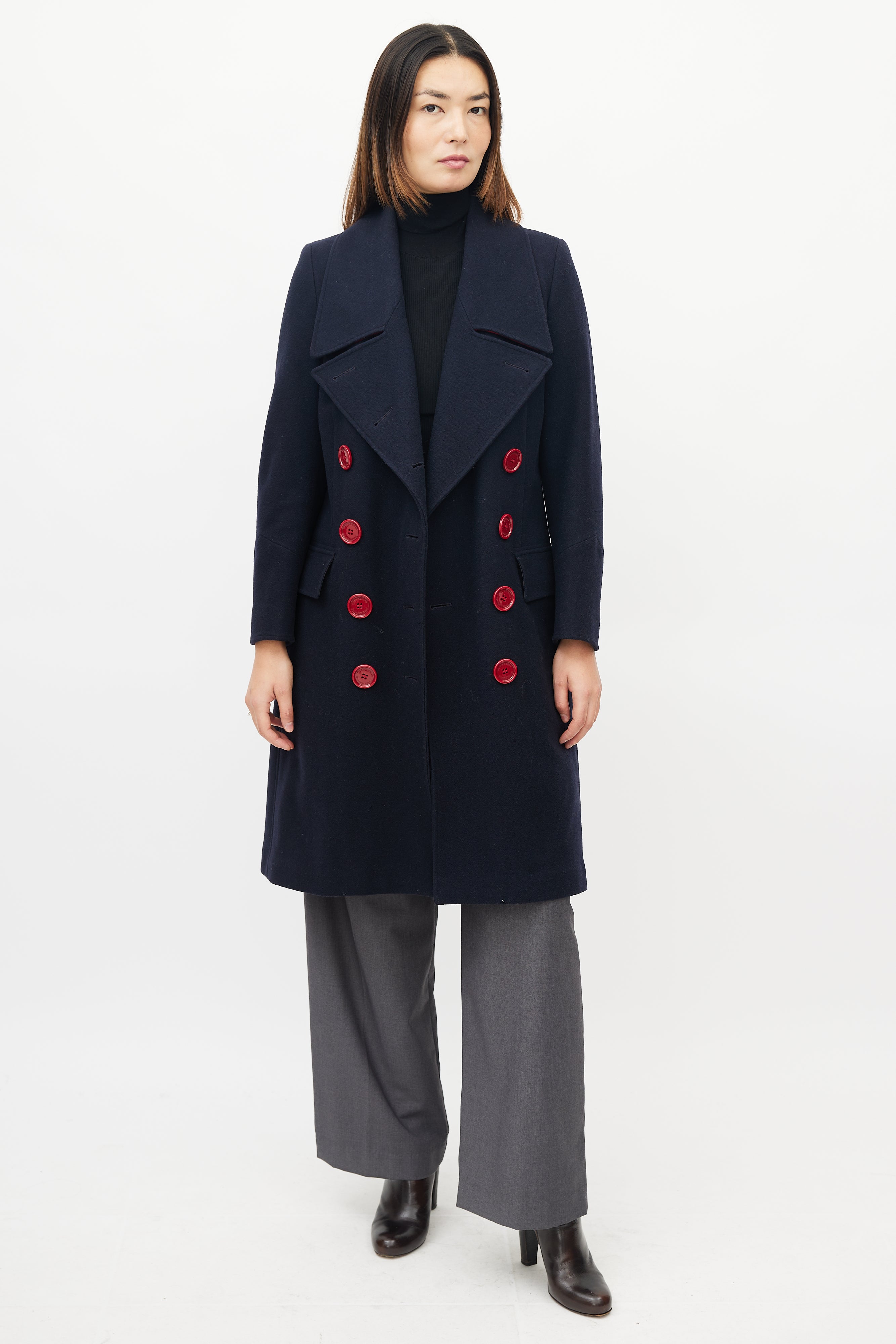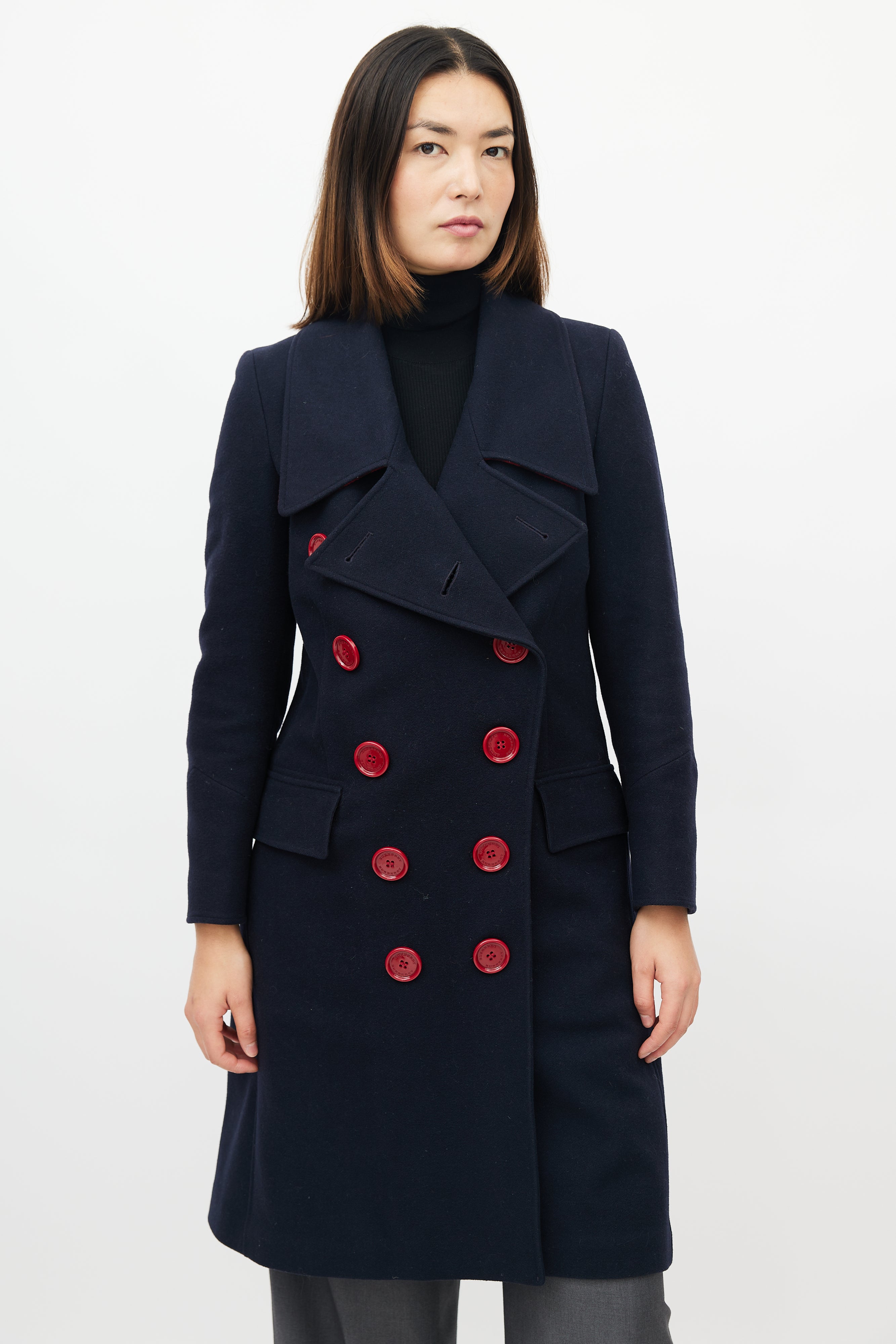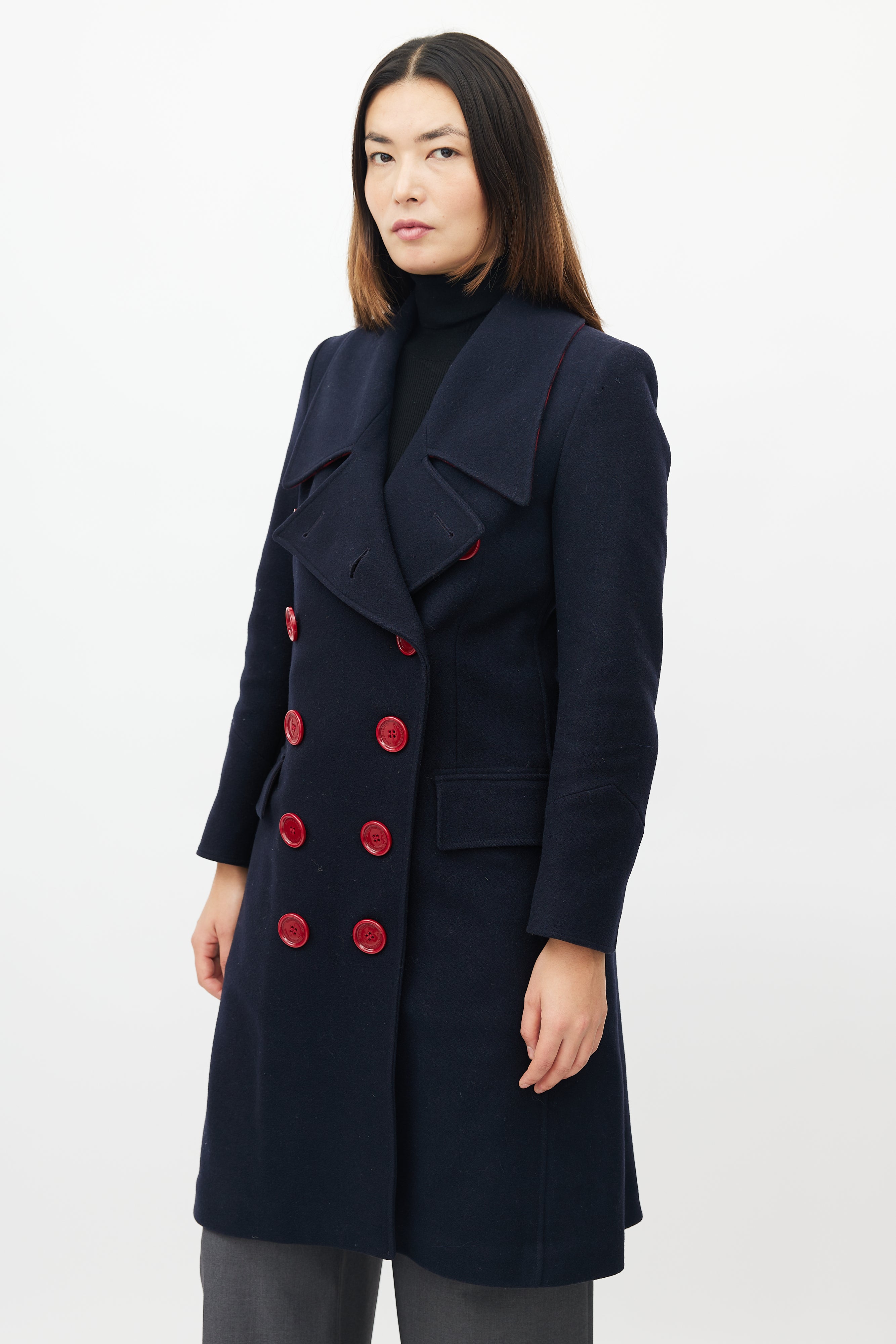 Navy & Red Wool Double Breasted Coat US 8 Size Guide