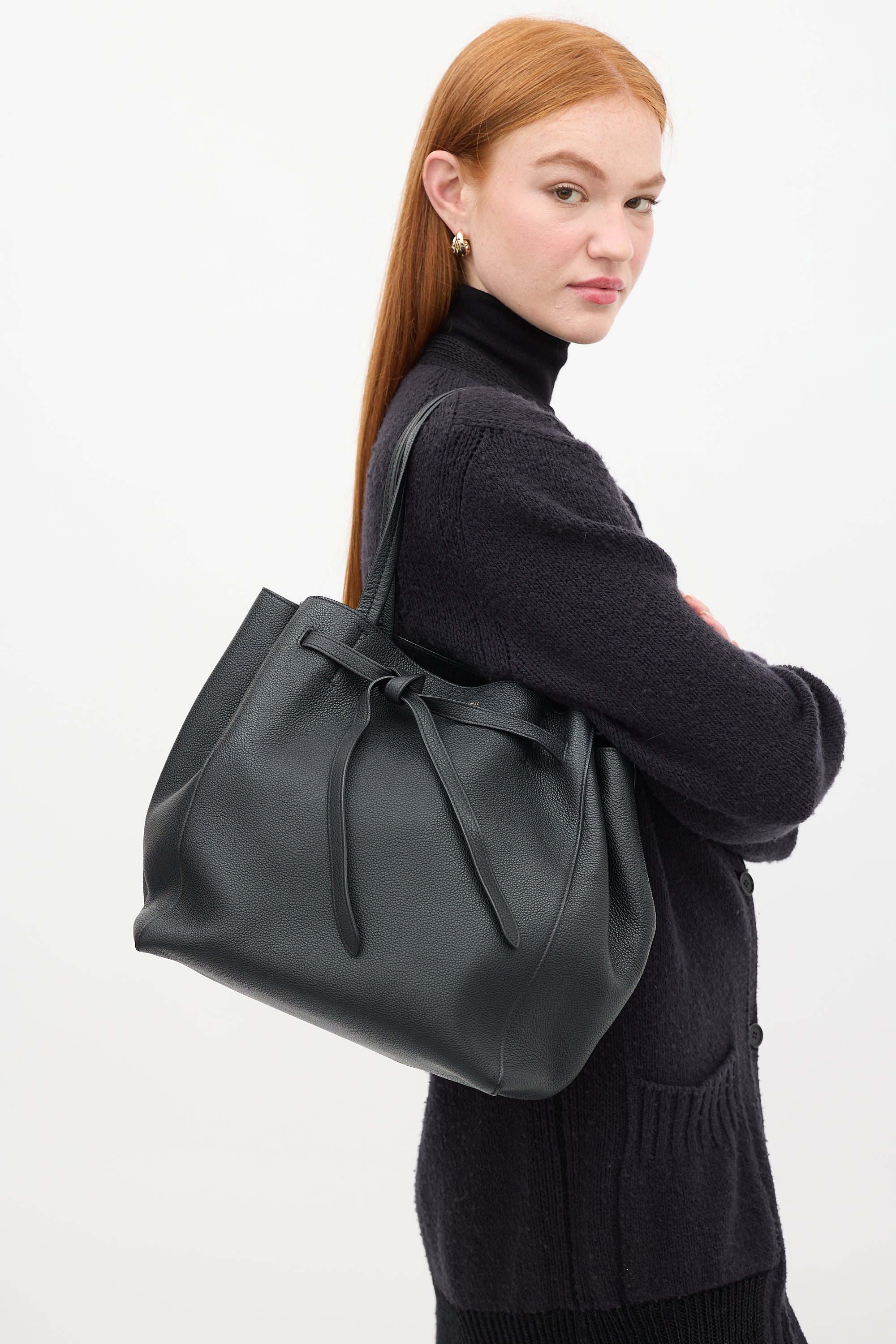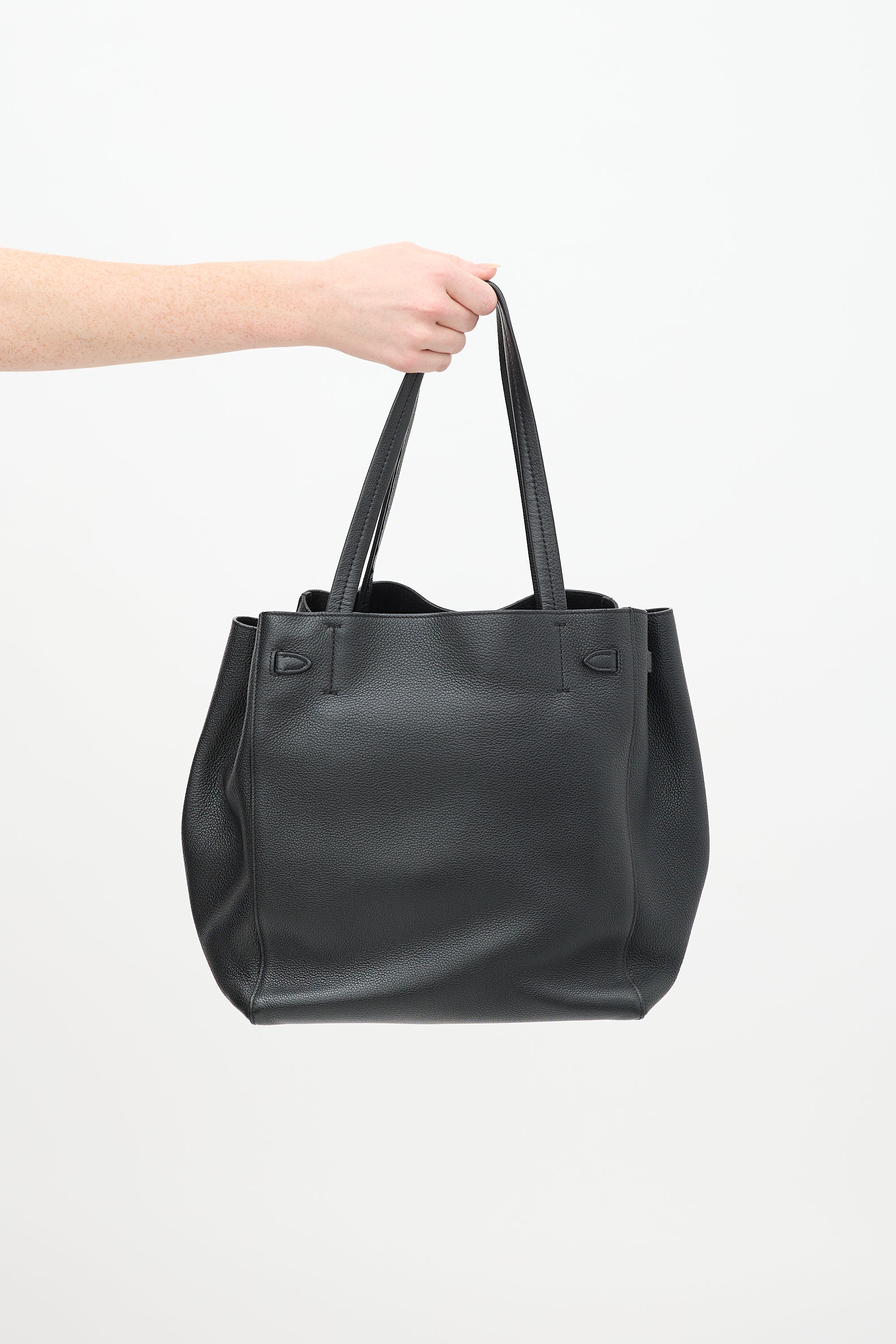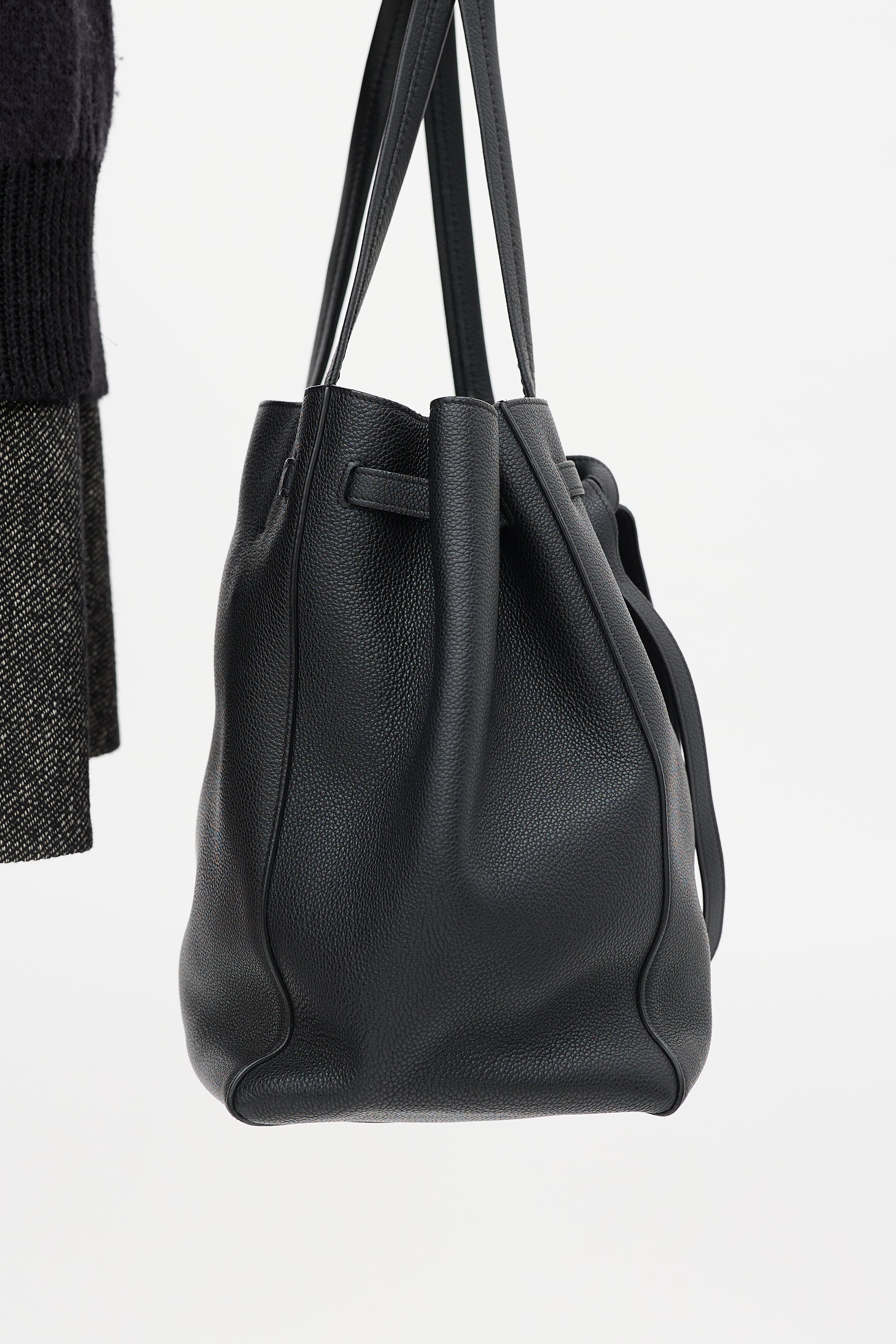 Black Leather Small Cabas Phantom Tote Bag