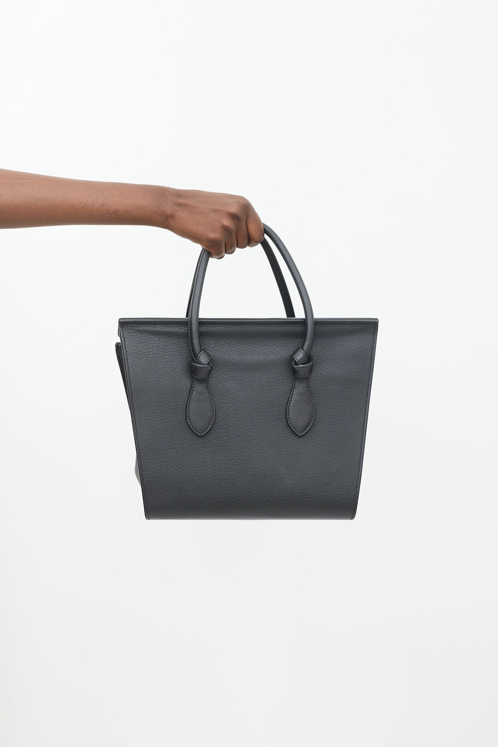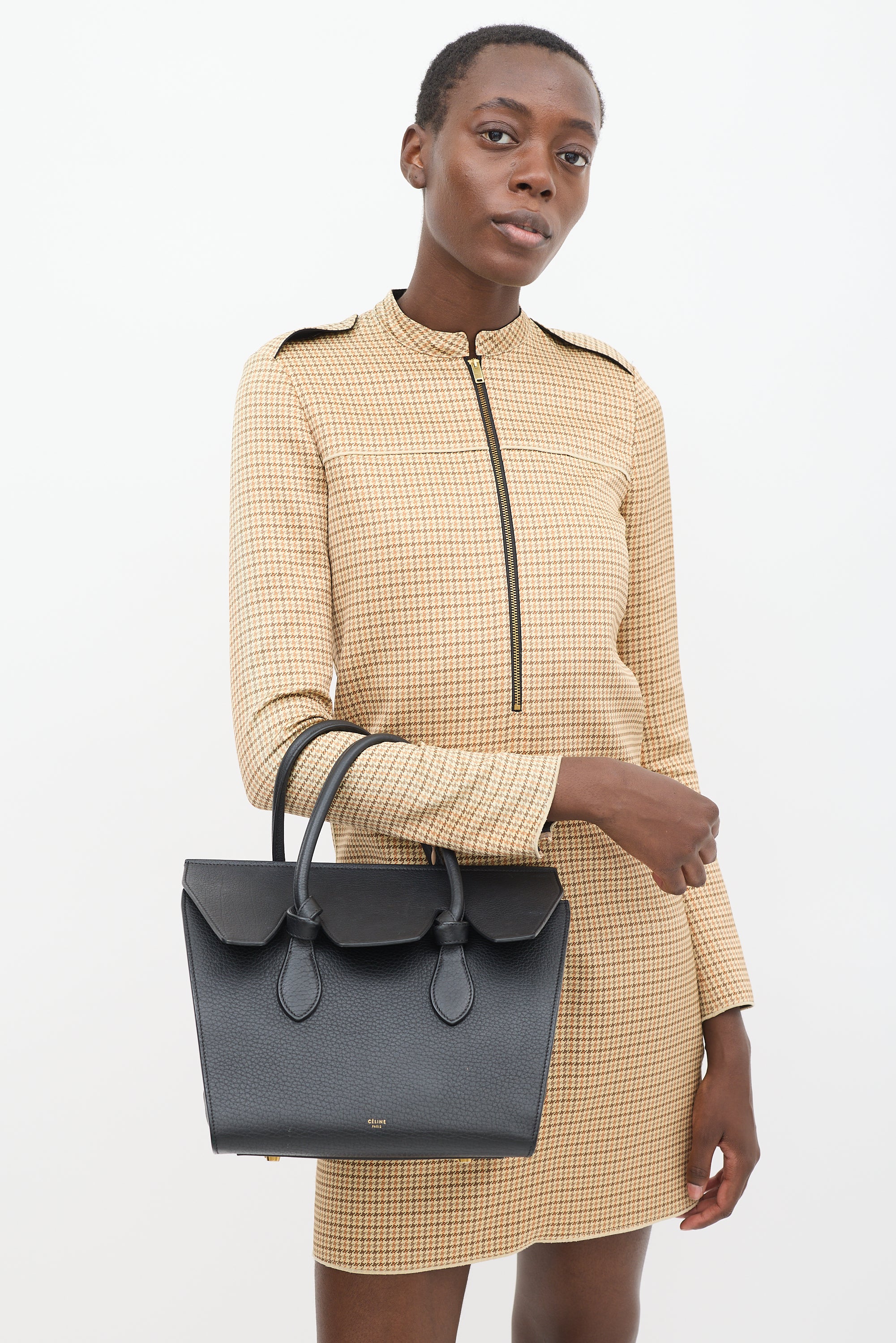 Pre-owned Celine black Tie Knot leather tote featuring two rolled knotted top handles, printed logo at front, top flap, one main compartment with two slip pockets and one zip pocket, and top latch closure. Comes with original dust bag.