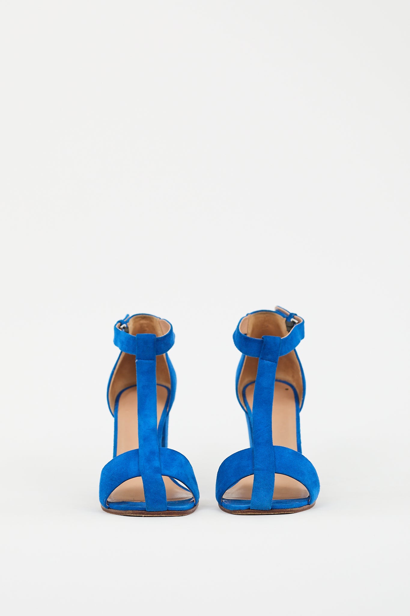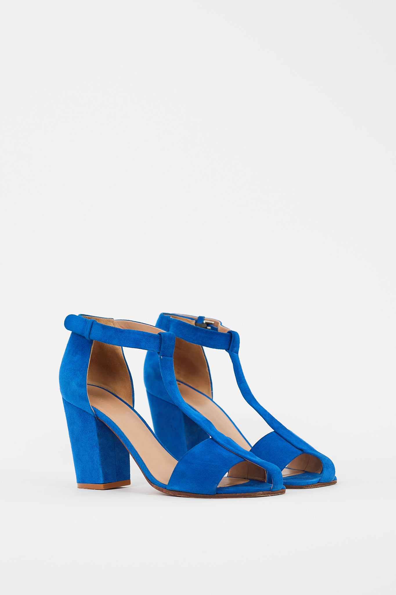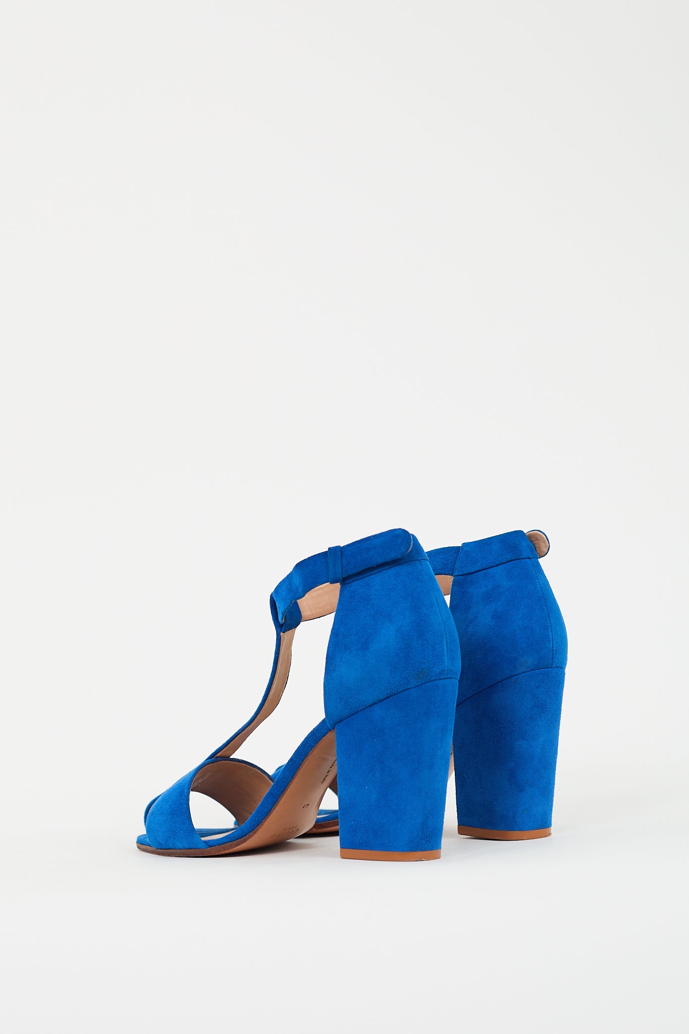 Blue Suede Strappy Block Heel IT 41 Size Guide