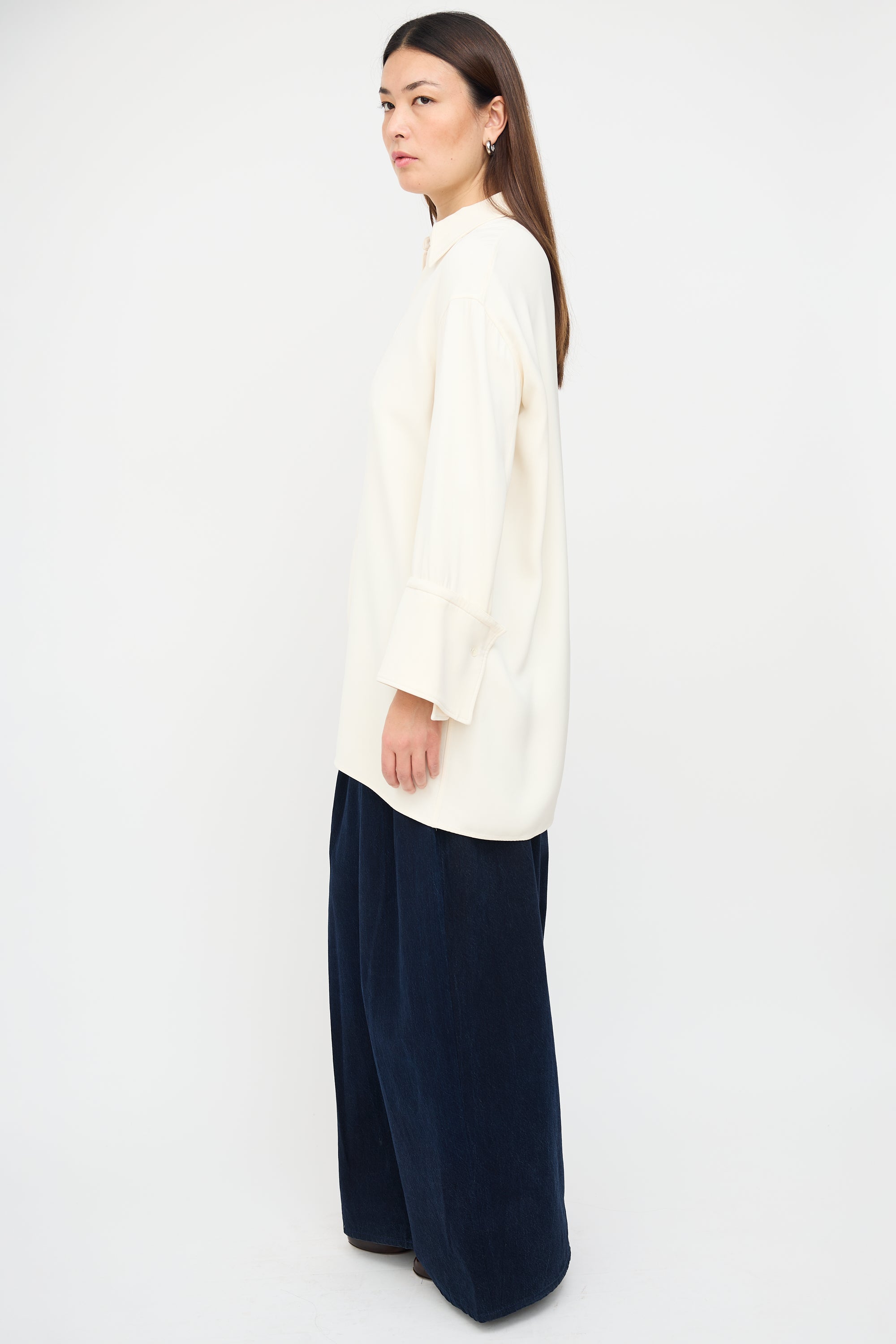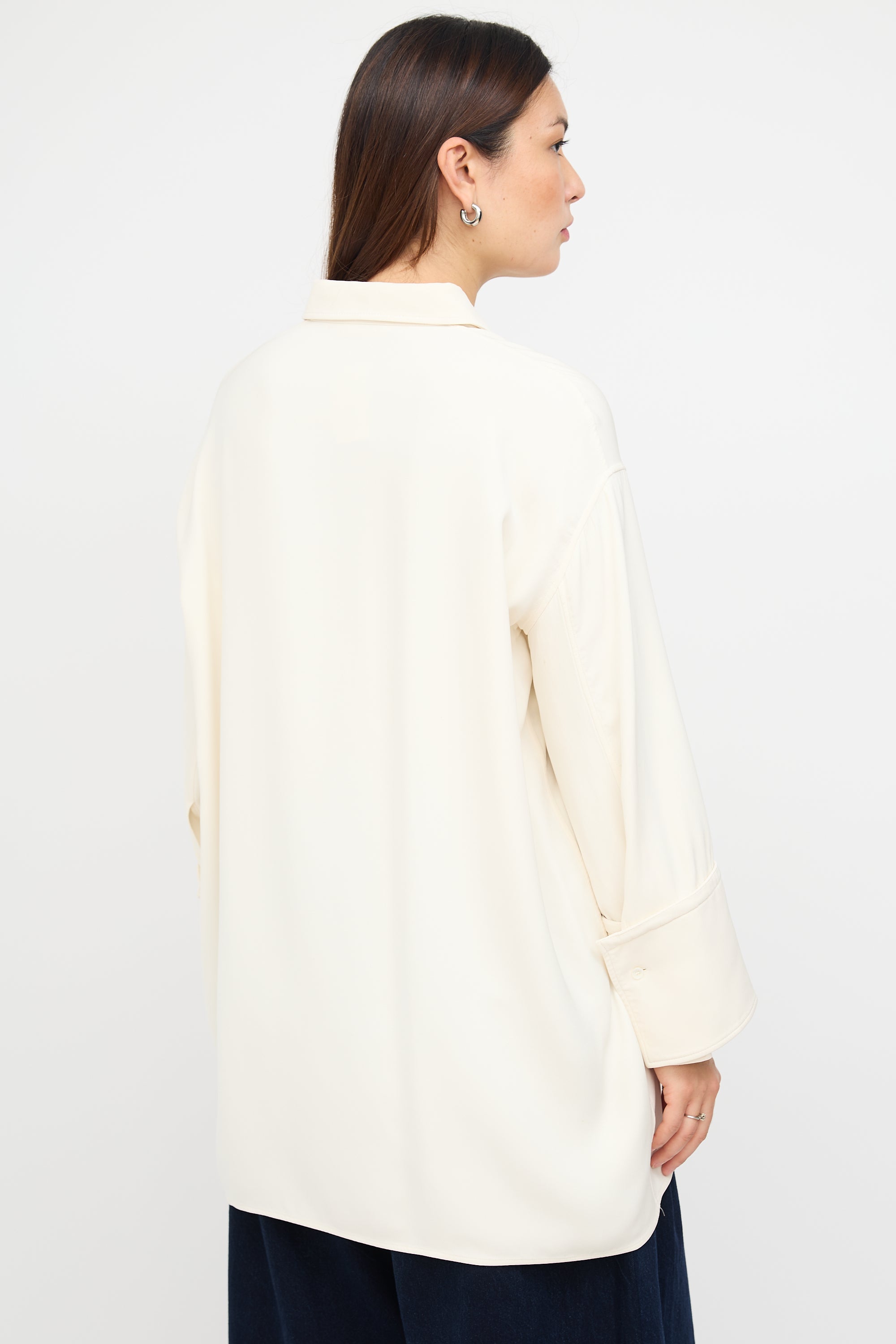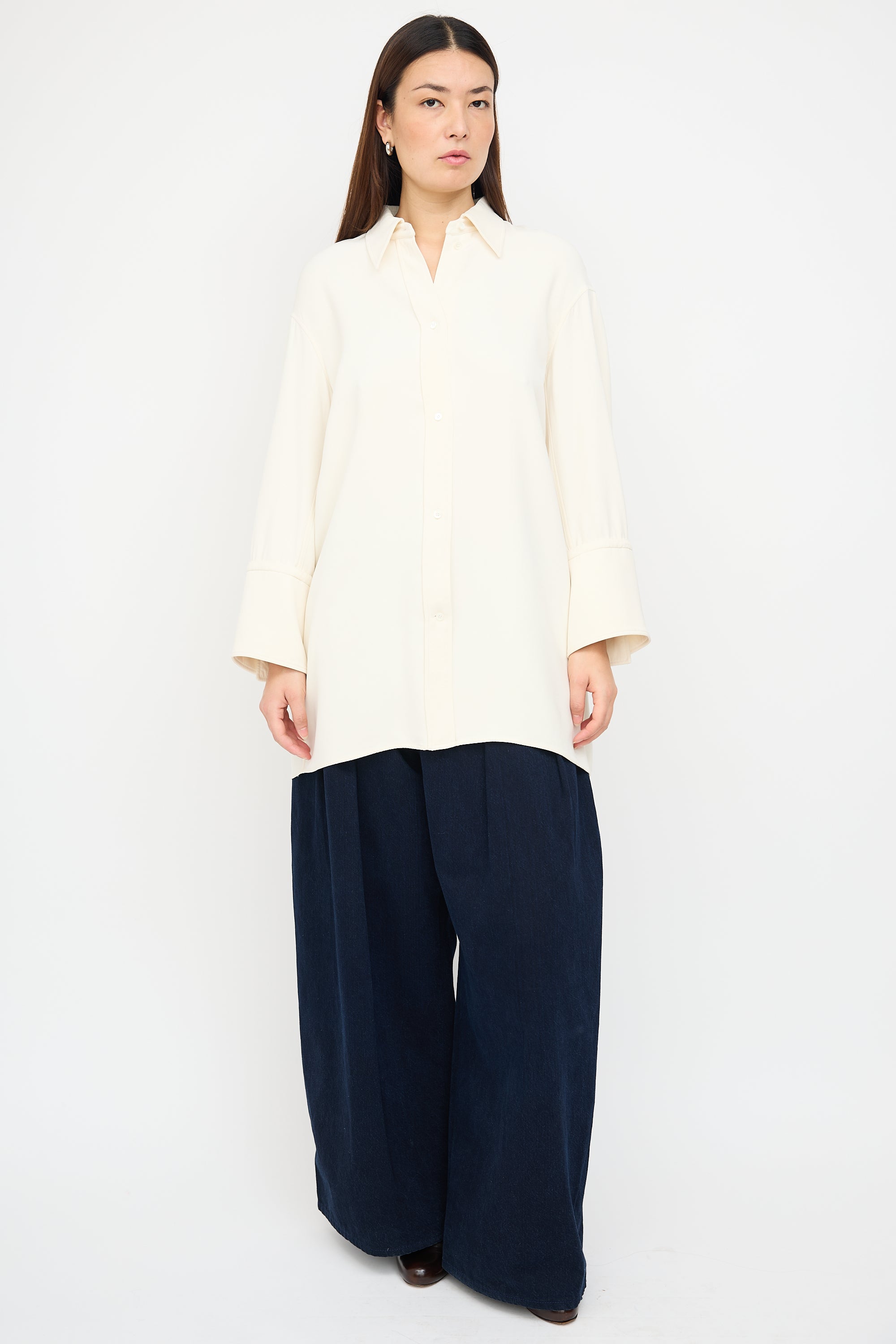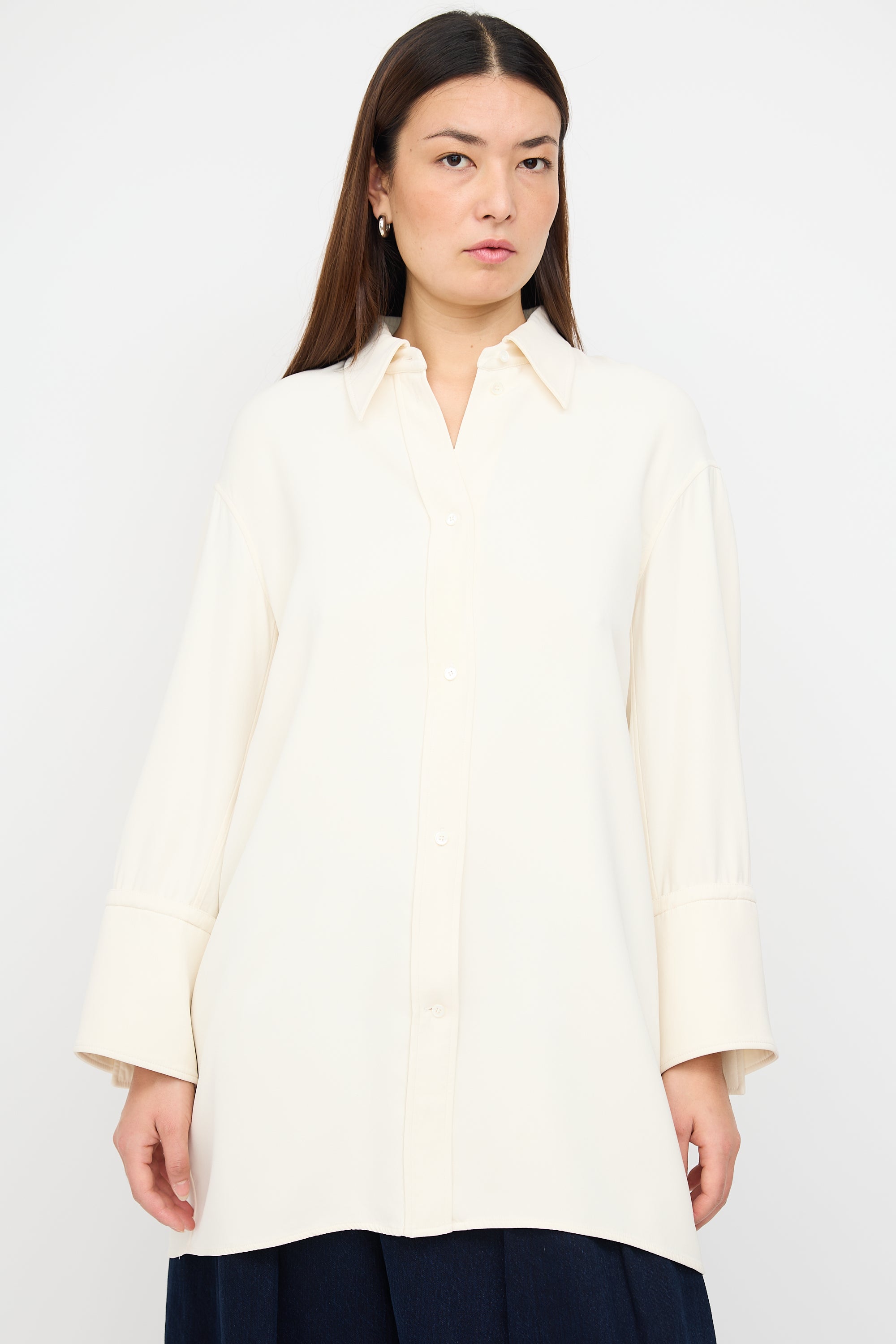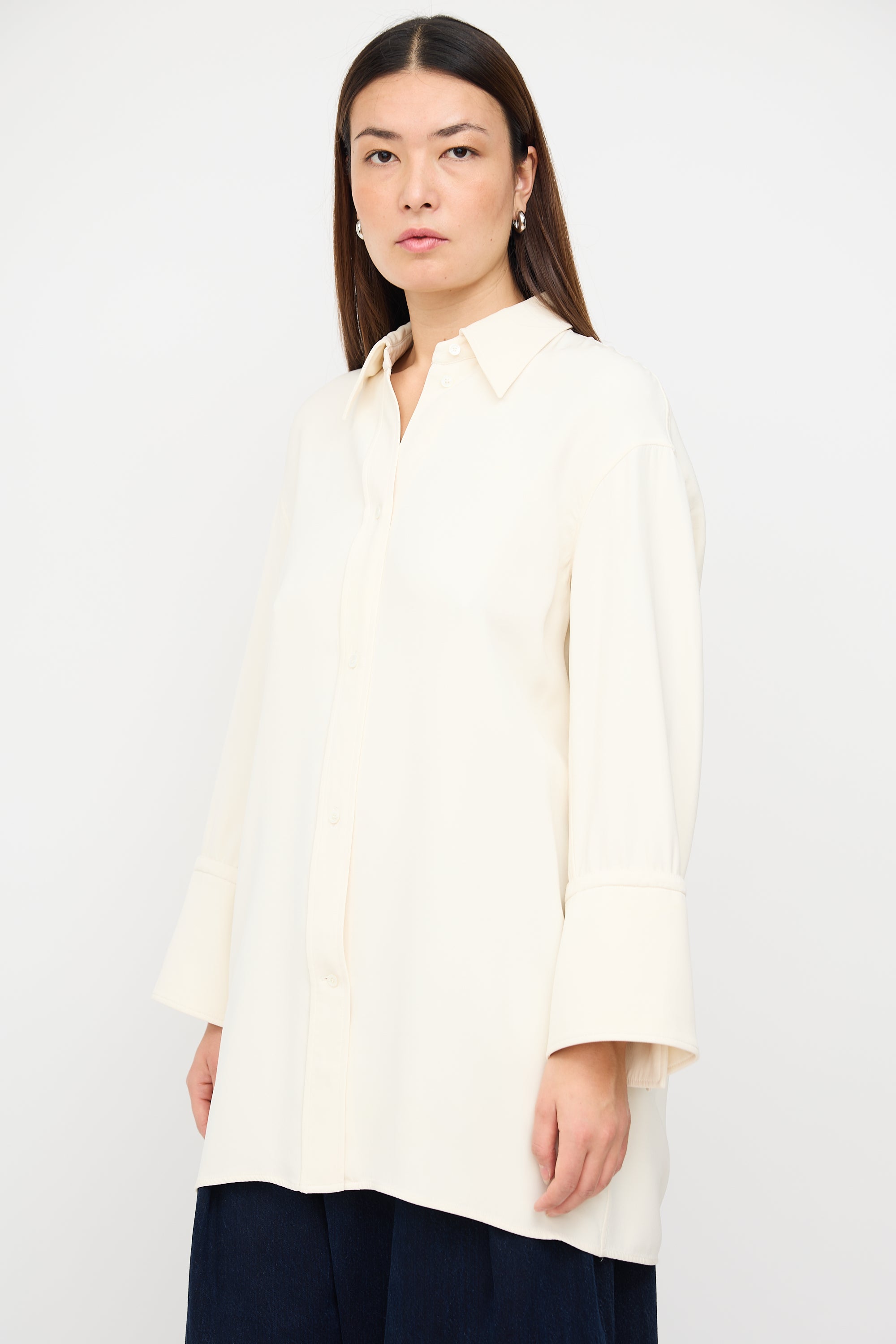 Cream Silk Wide Cuff Shirt Dress FR 40 Size Guide