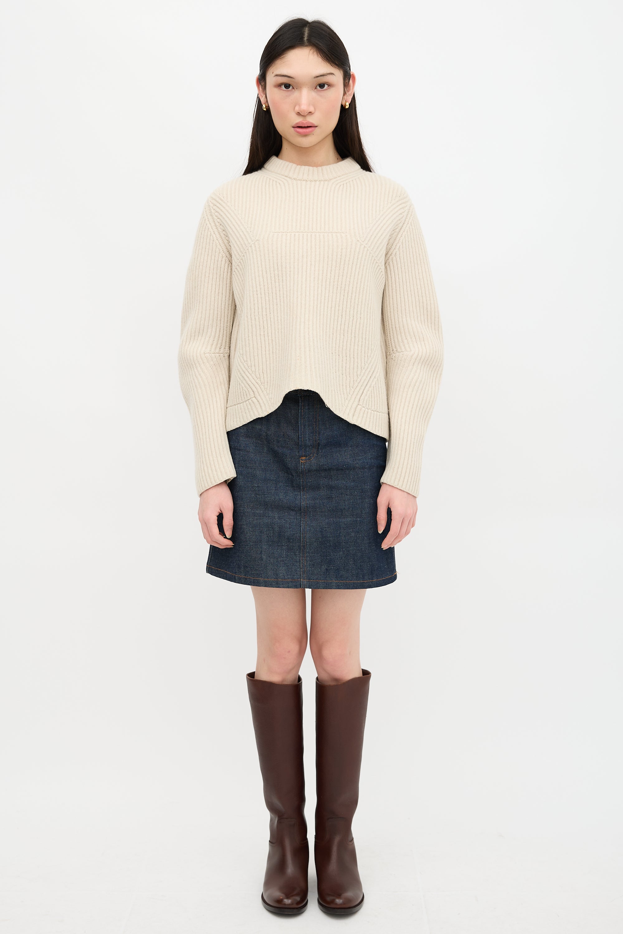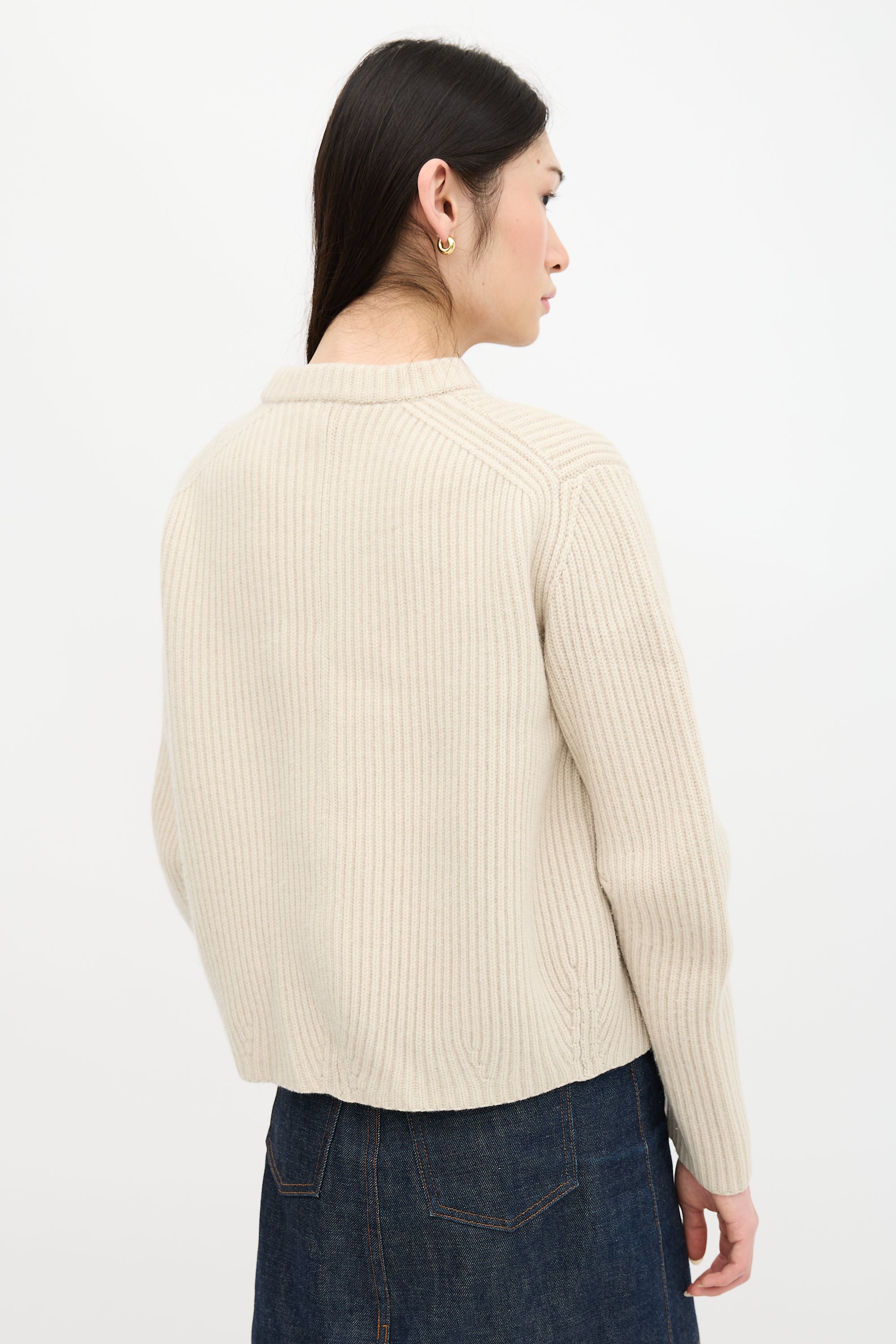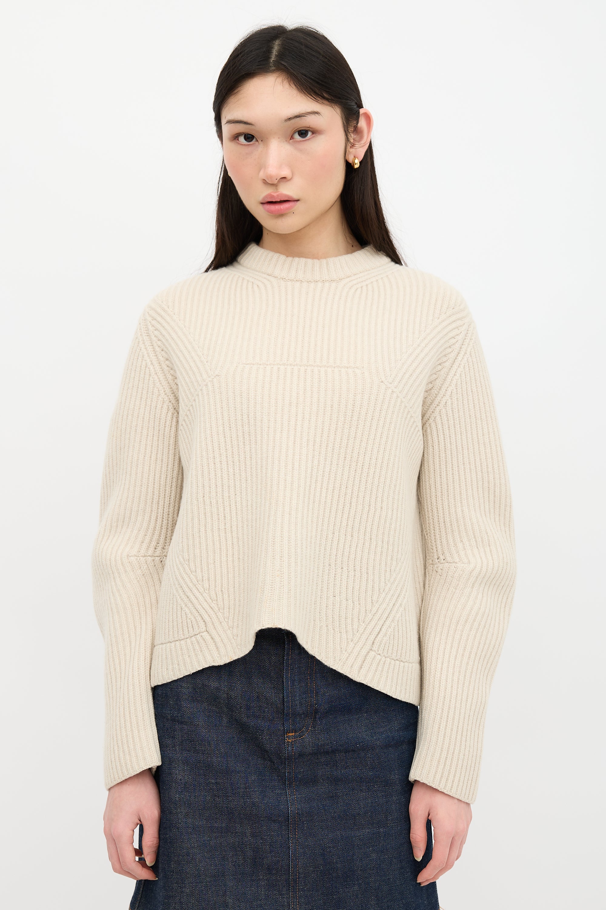 Pre-owned Celine beige wool and cashmere sweater featuring crew neckline, ribbed knit, and panelled design.