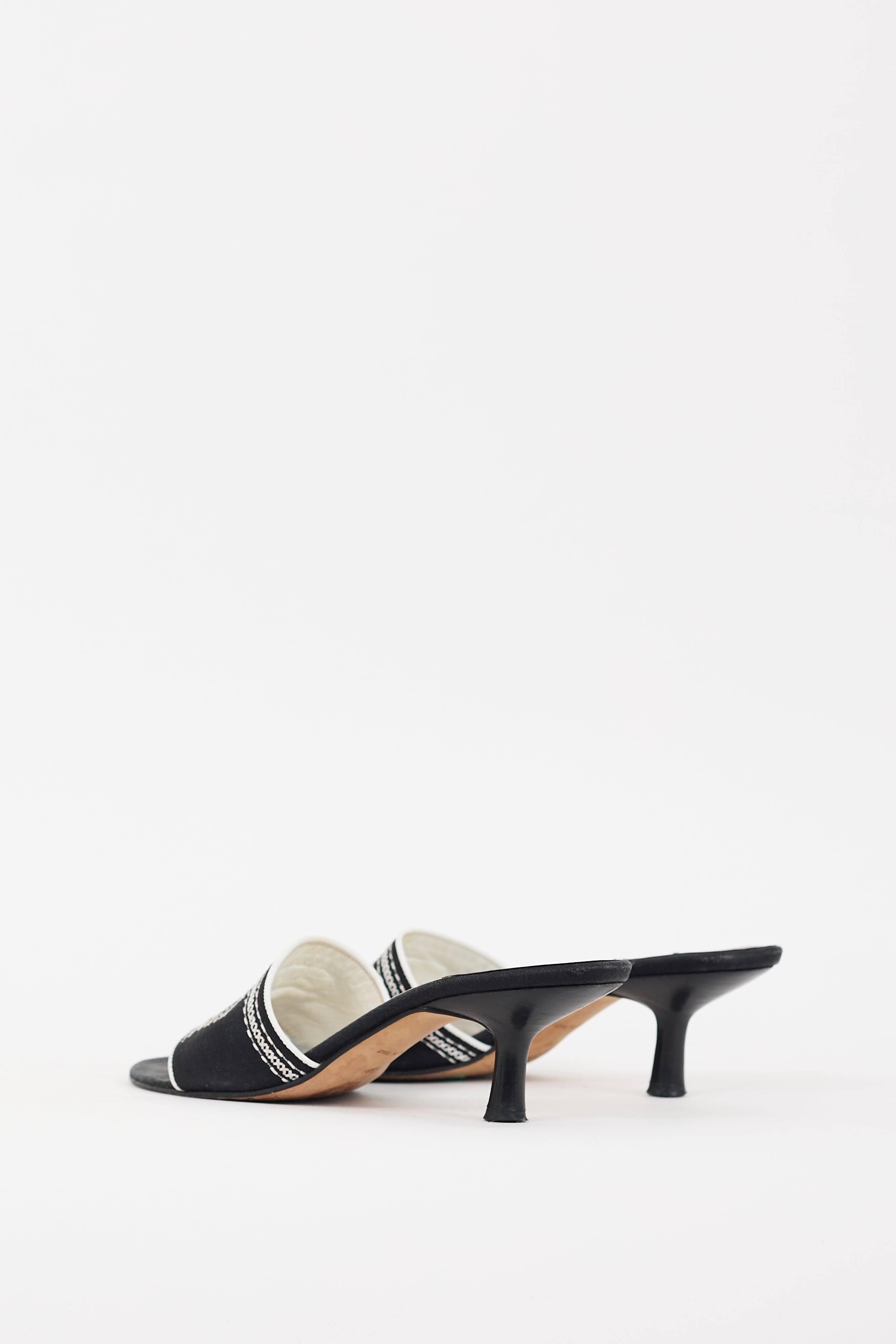 SS 2001 Black & White Embroidered Logo Mule FR 38 Size Guide