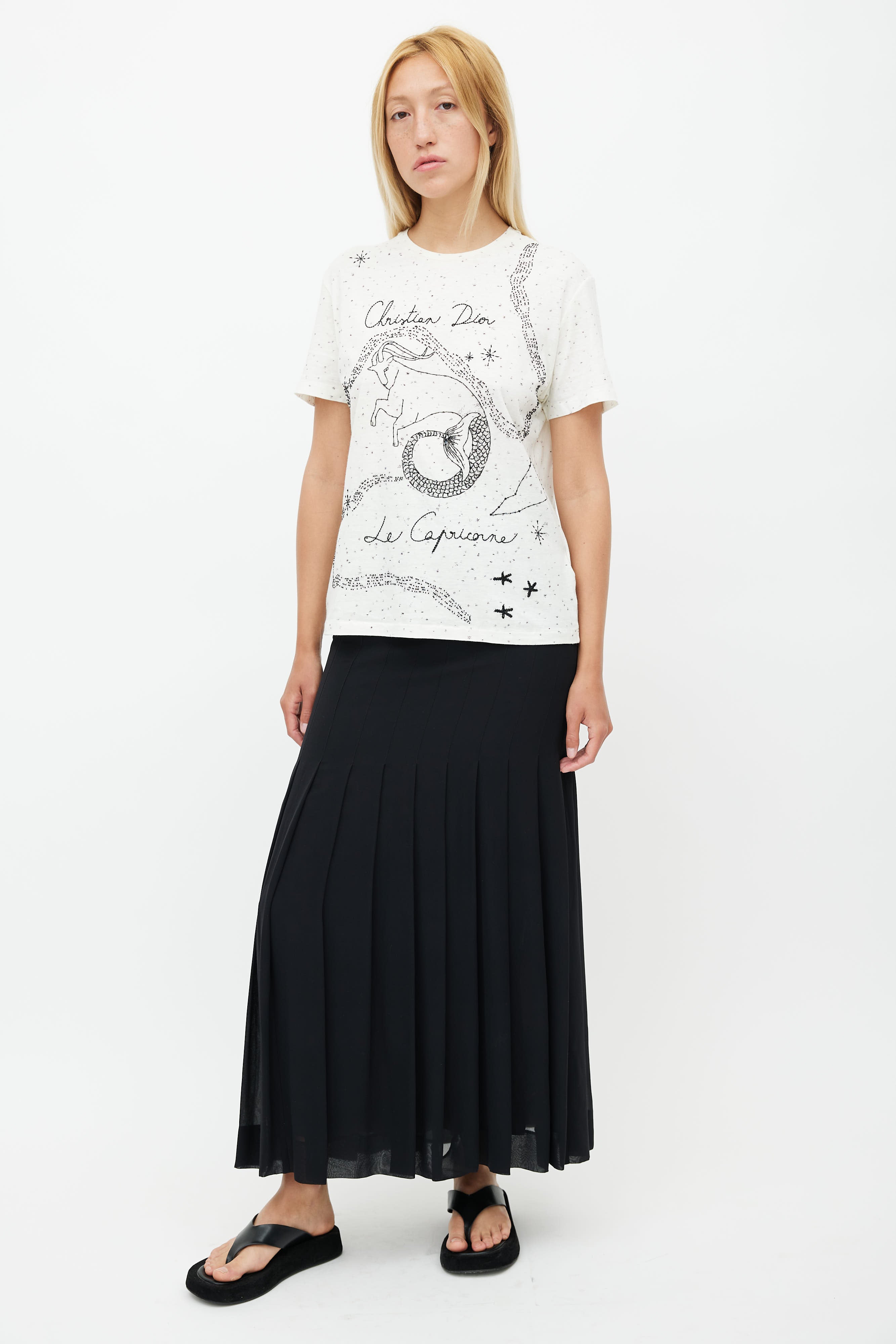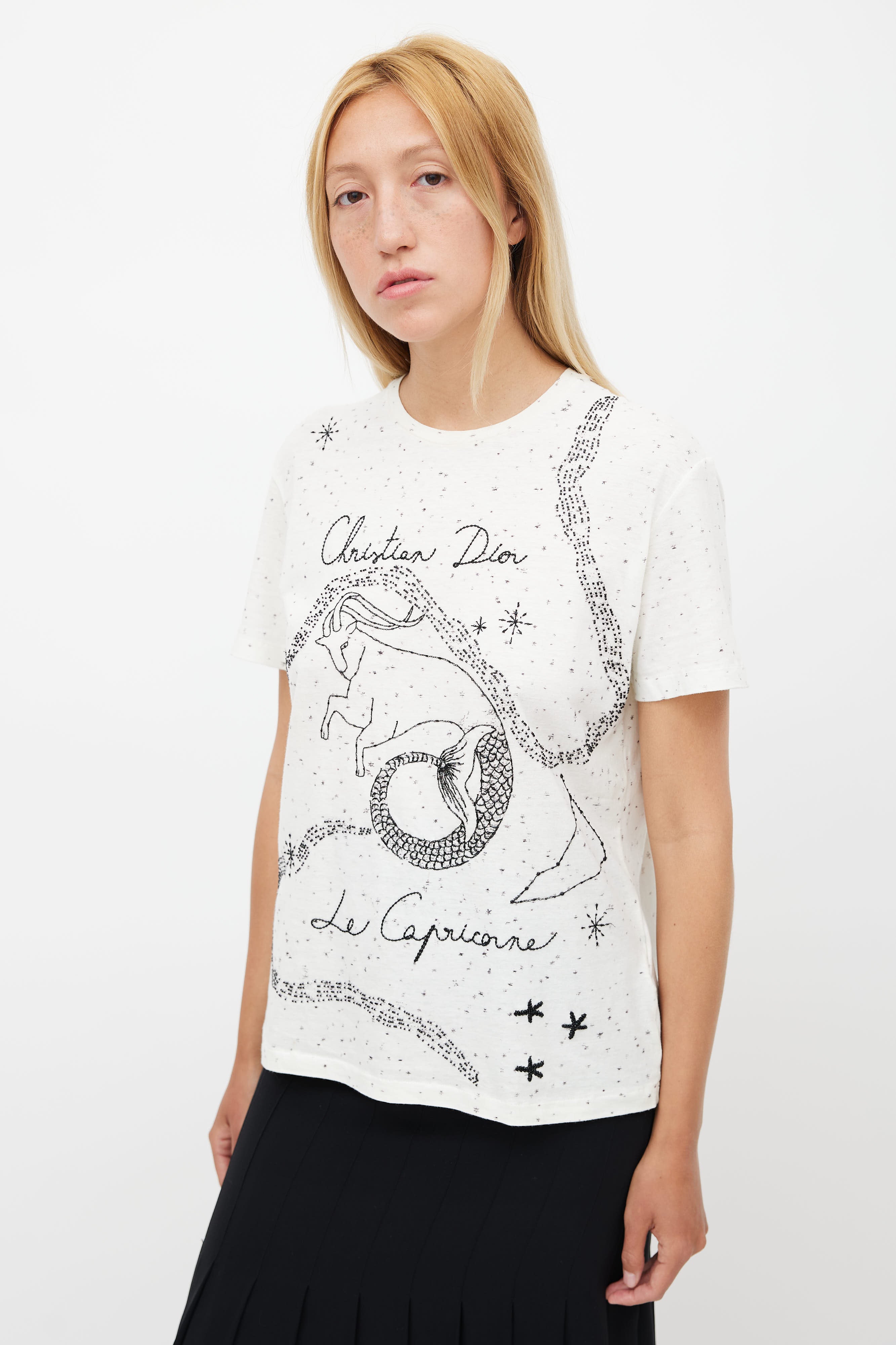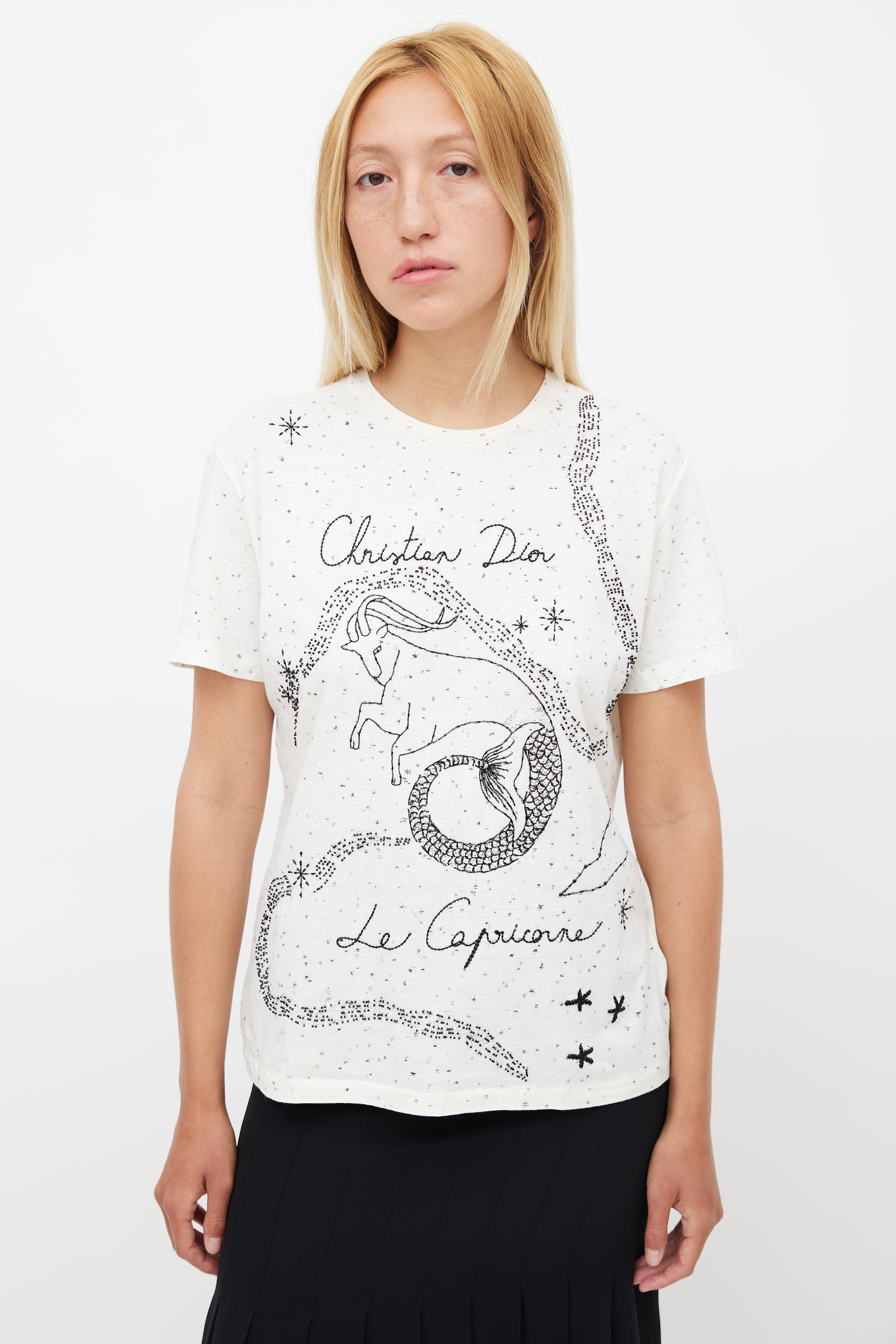 White Embroidered Le Capricorne T-Shirt Small Size Guide