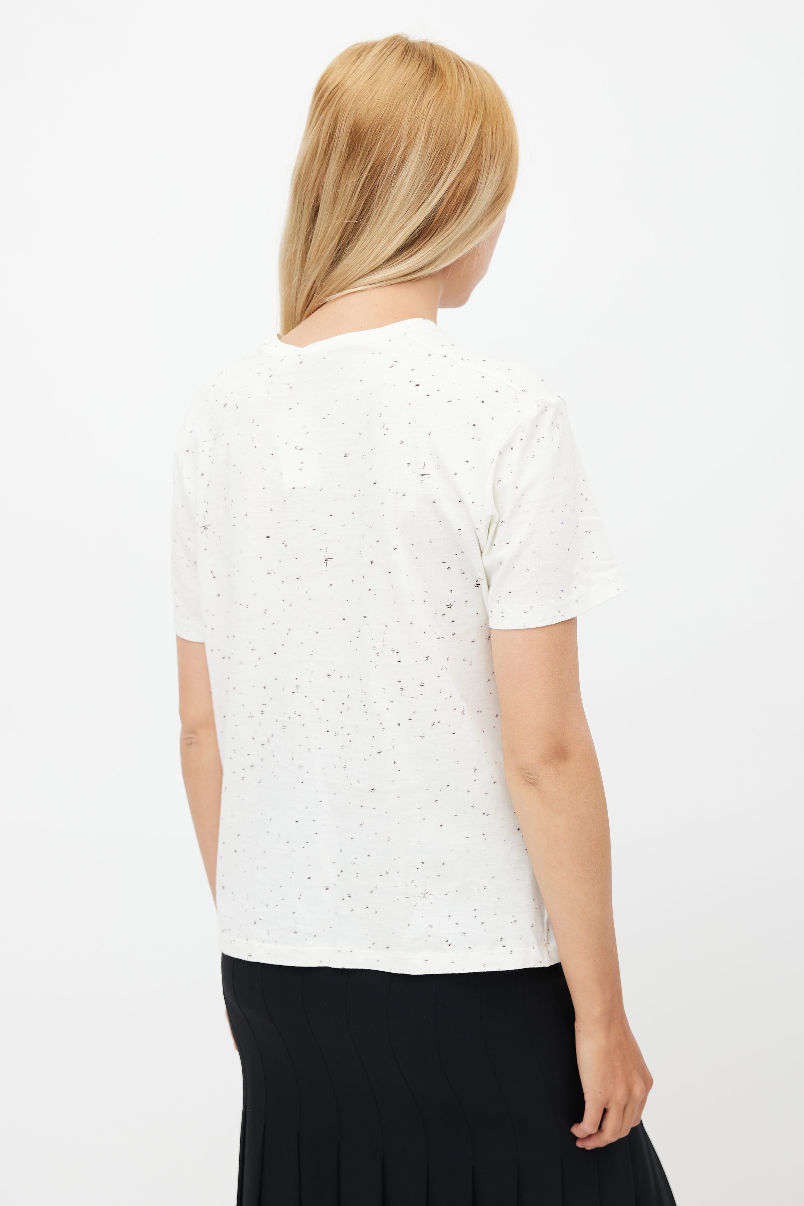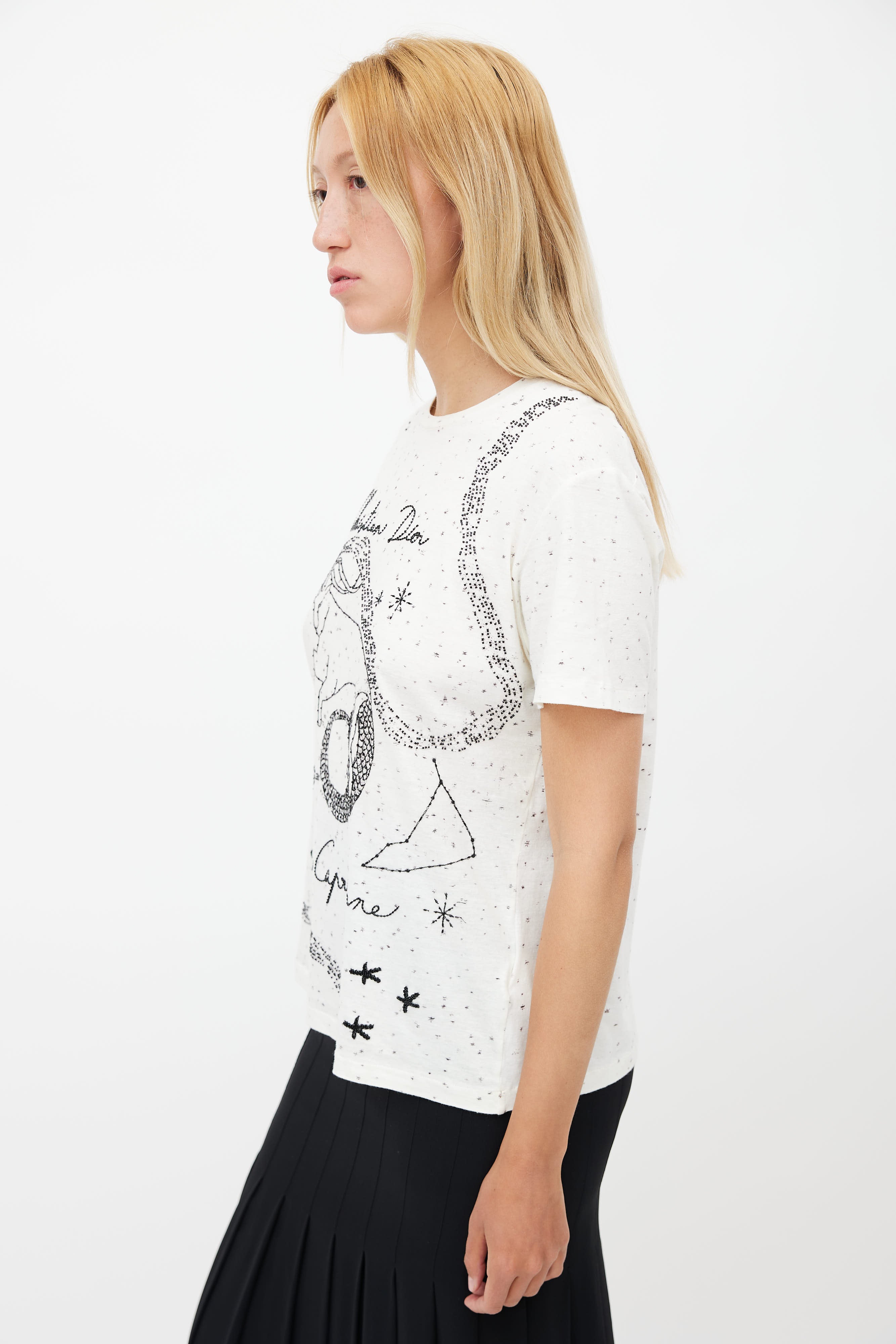 Pre-owned Dior white T-shirt featuring crew neckline, star sparkle print throughout, and embroidered Le Capricorne and logo at front.