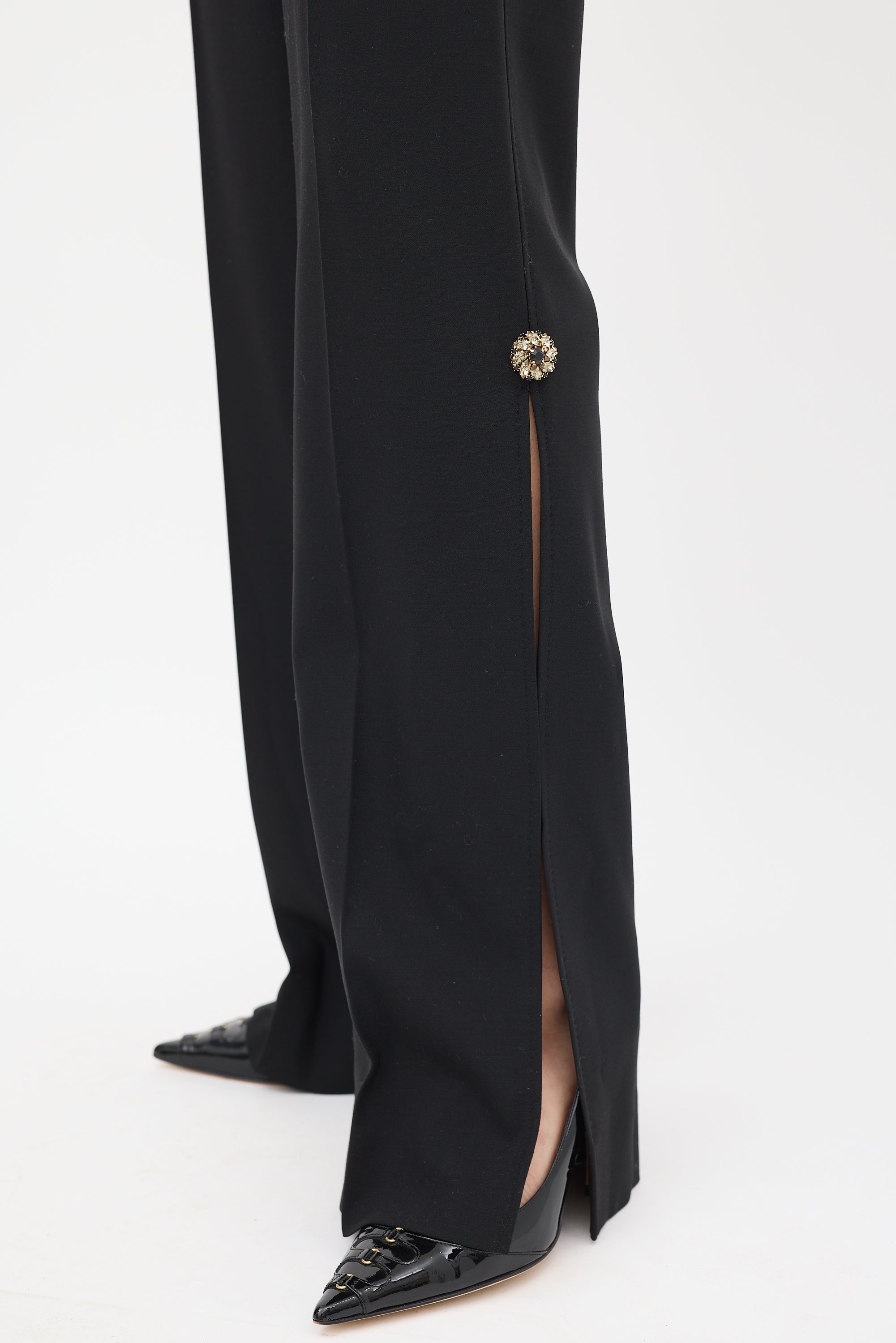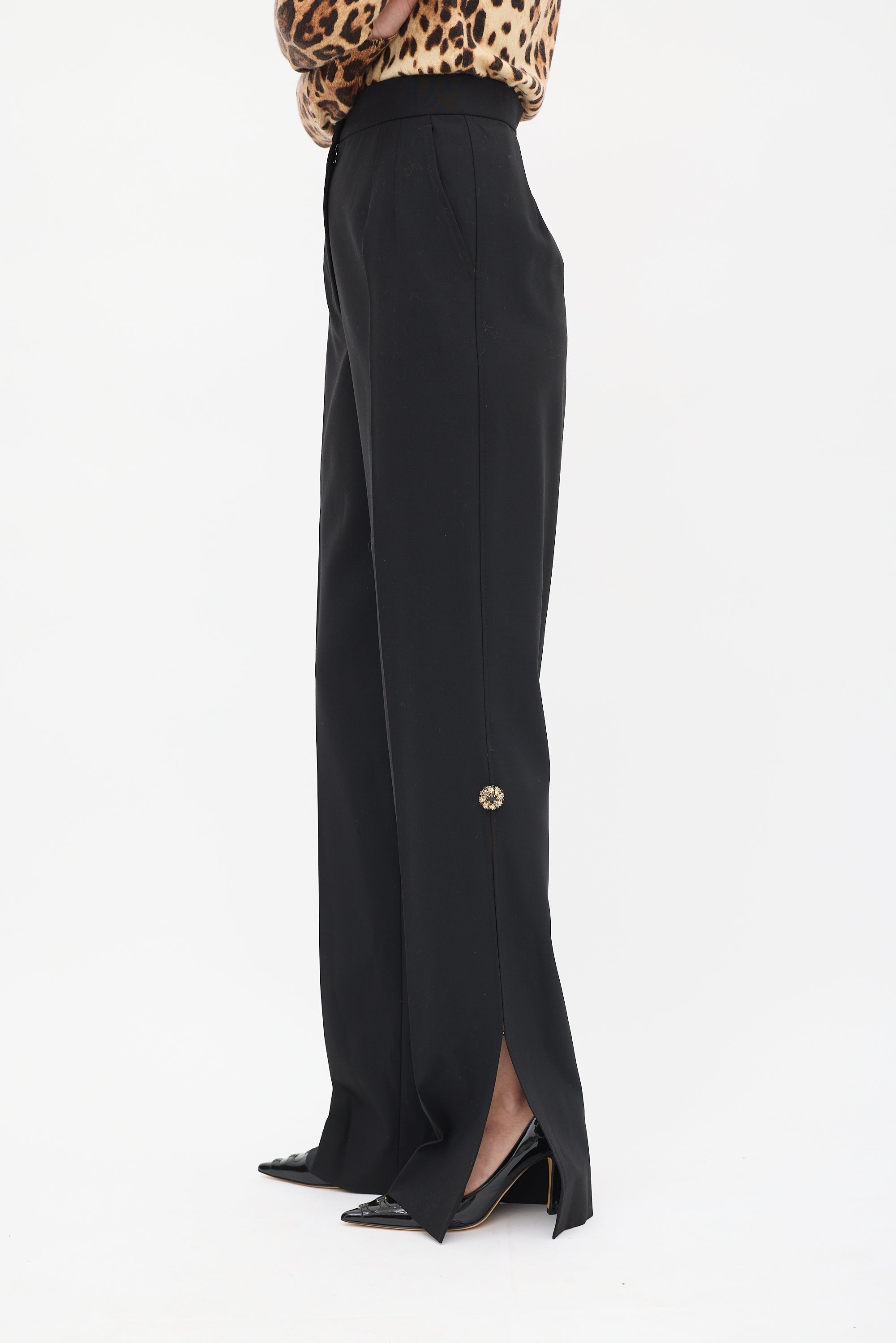Black Wool Embellished Split Trouser IT 40 Size Guide