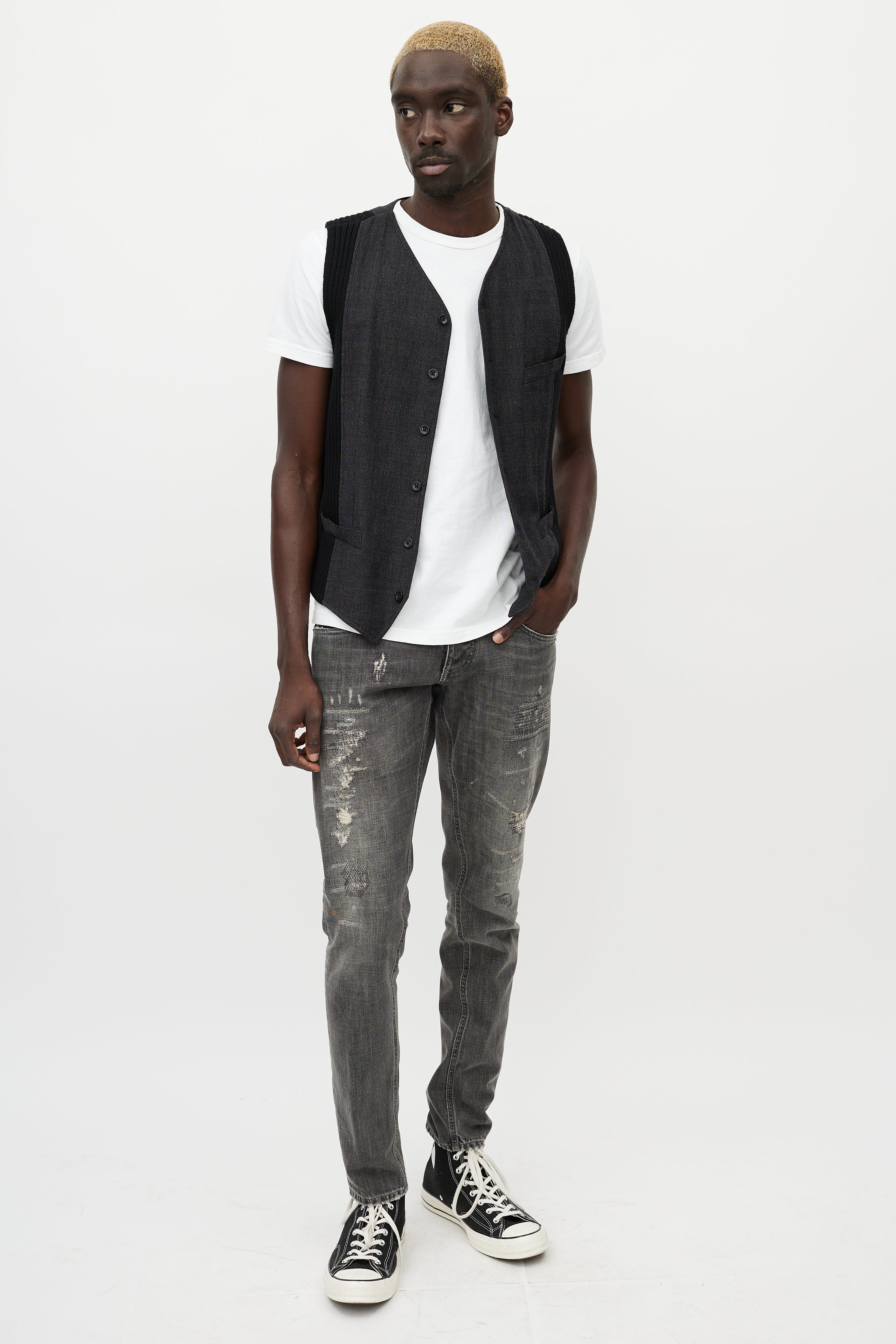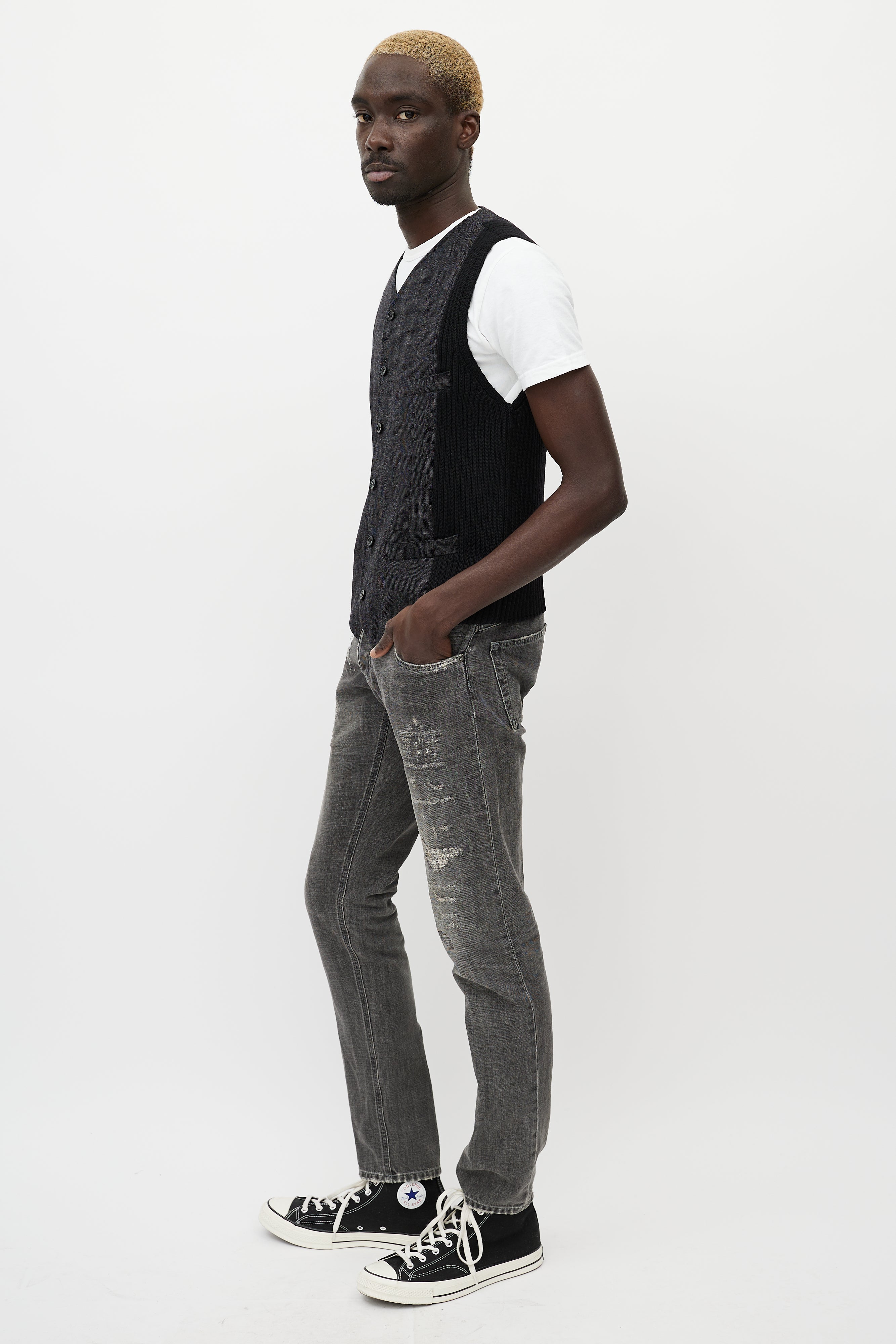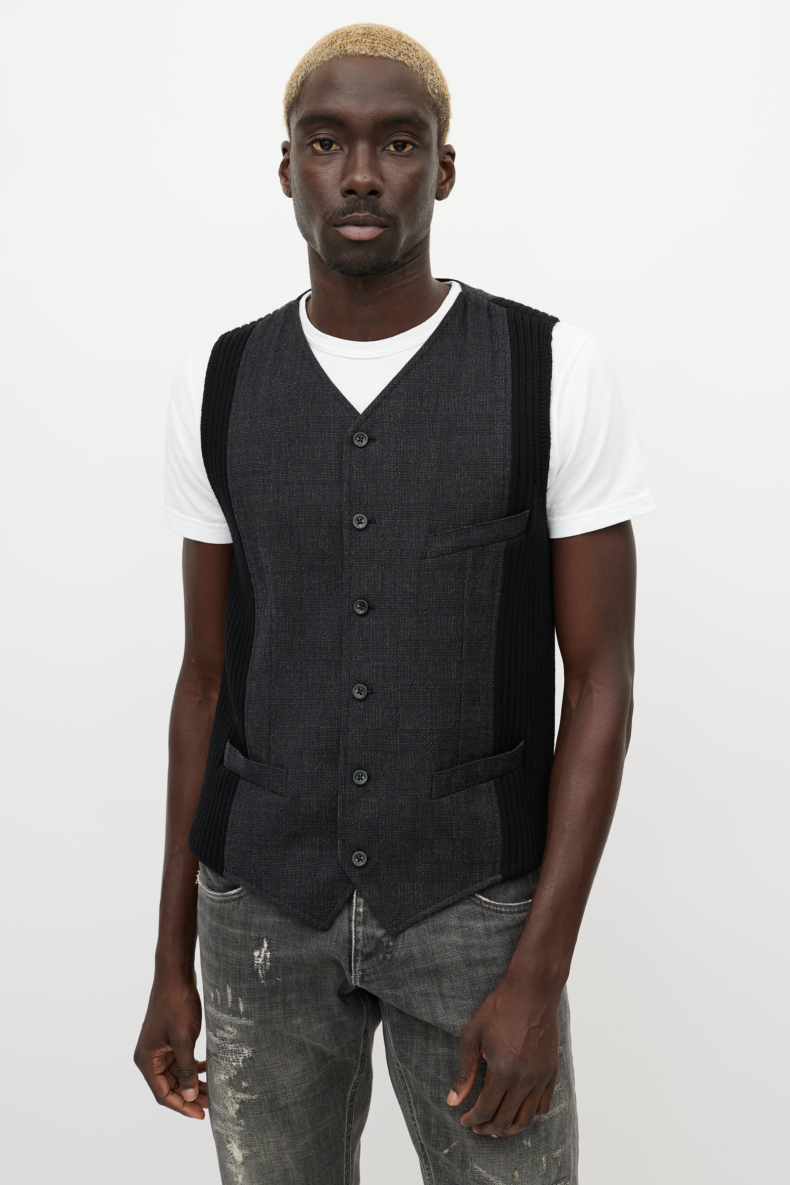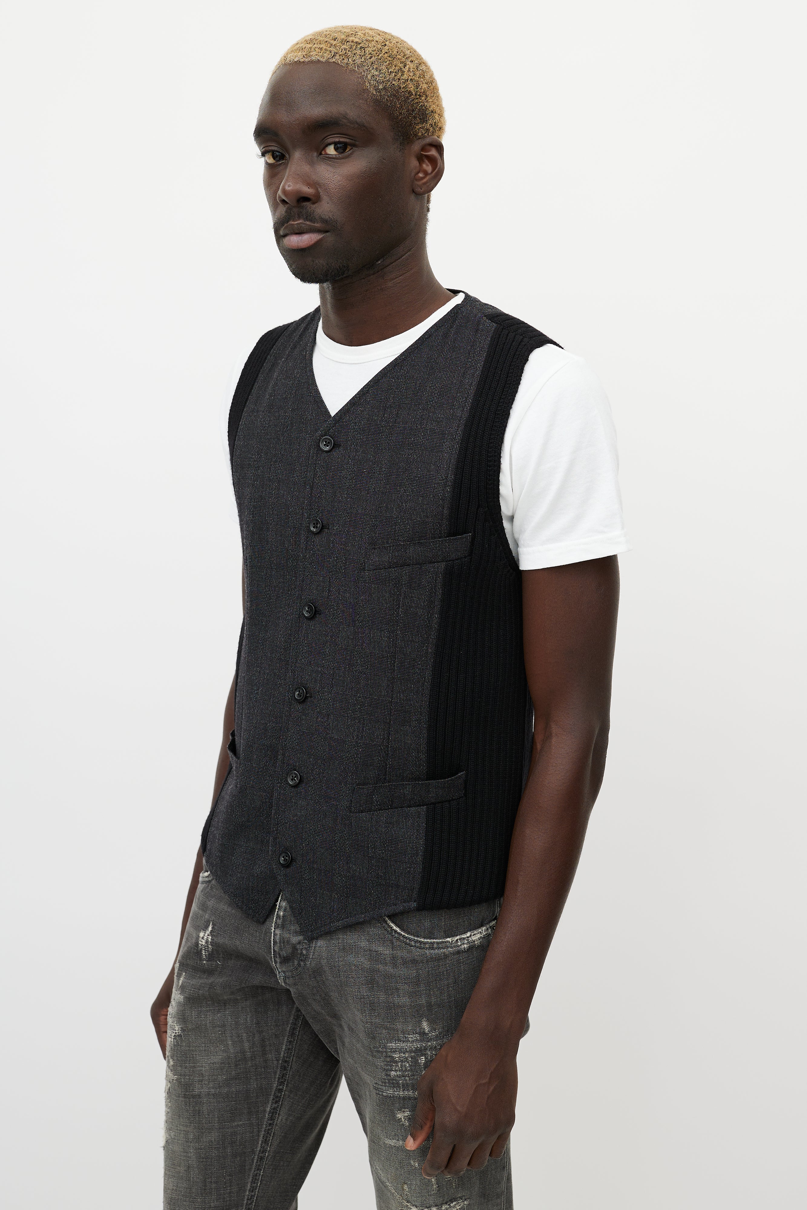 Grey & Black Wool Knit Contrast Vest IT 50 Size Guide