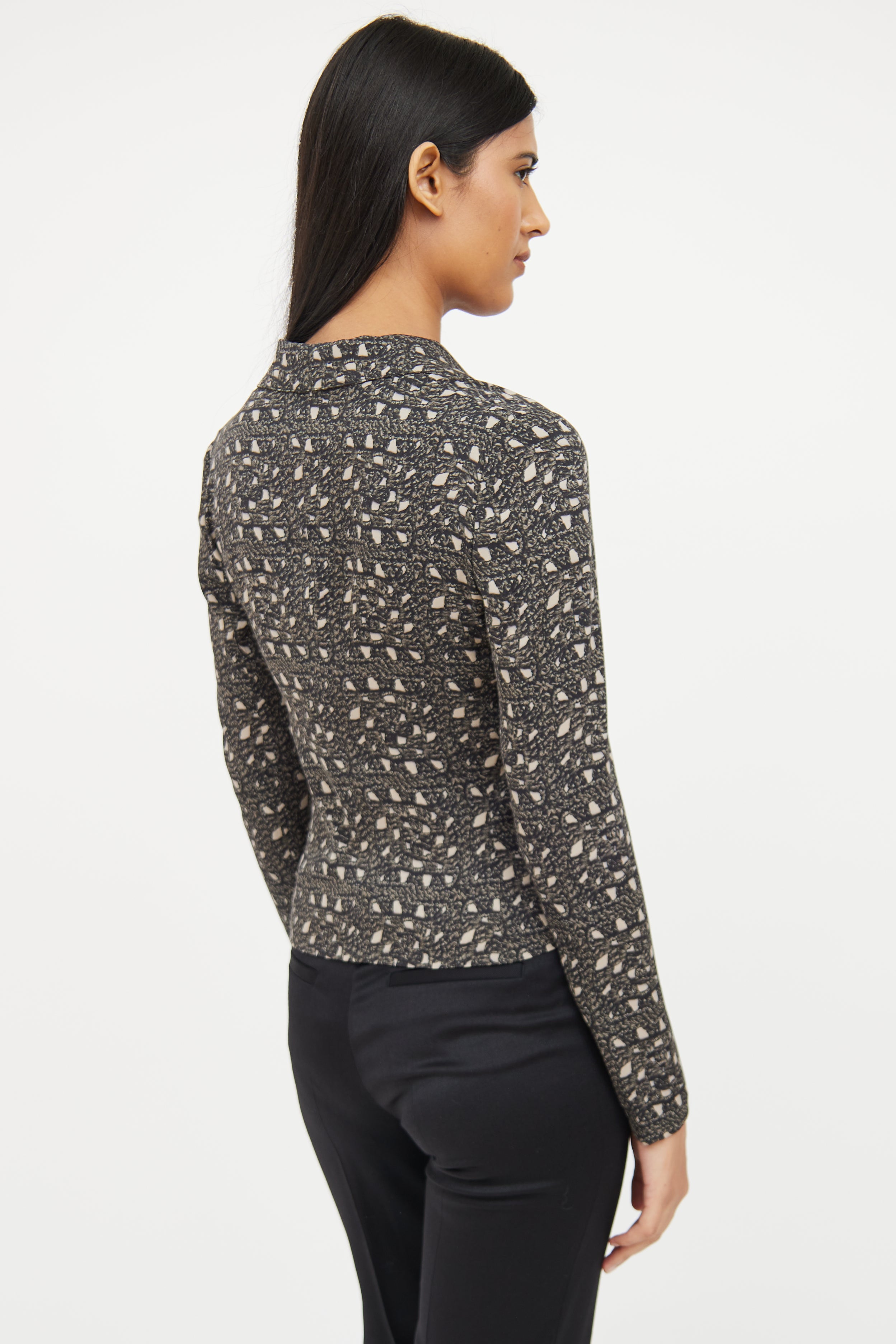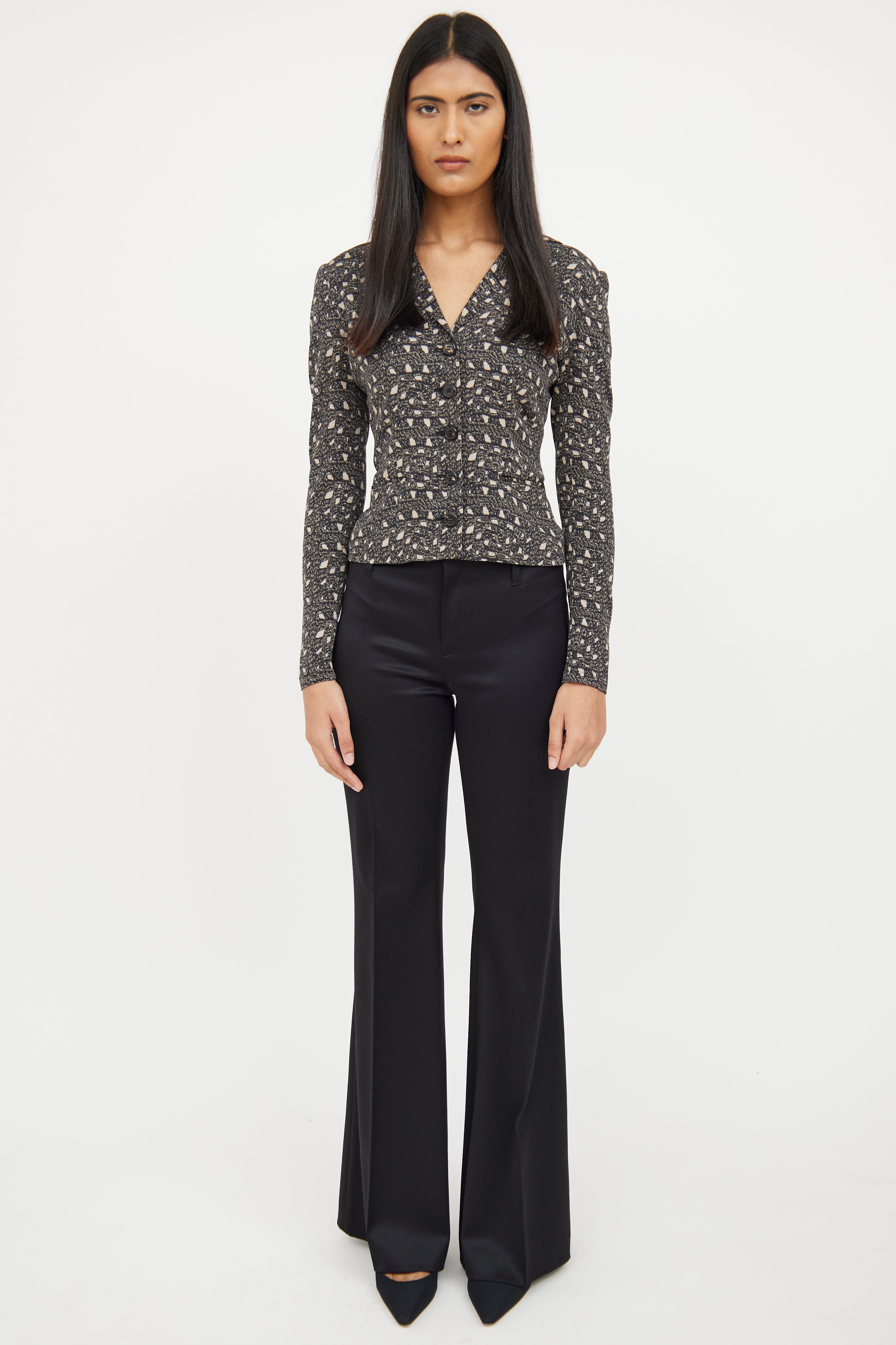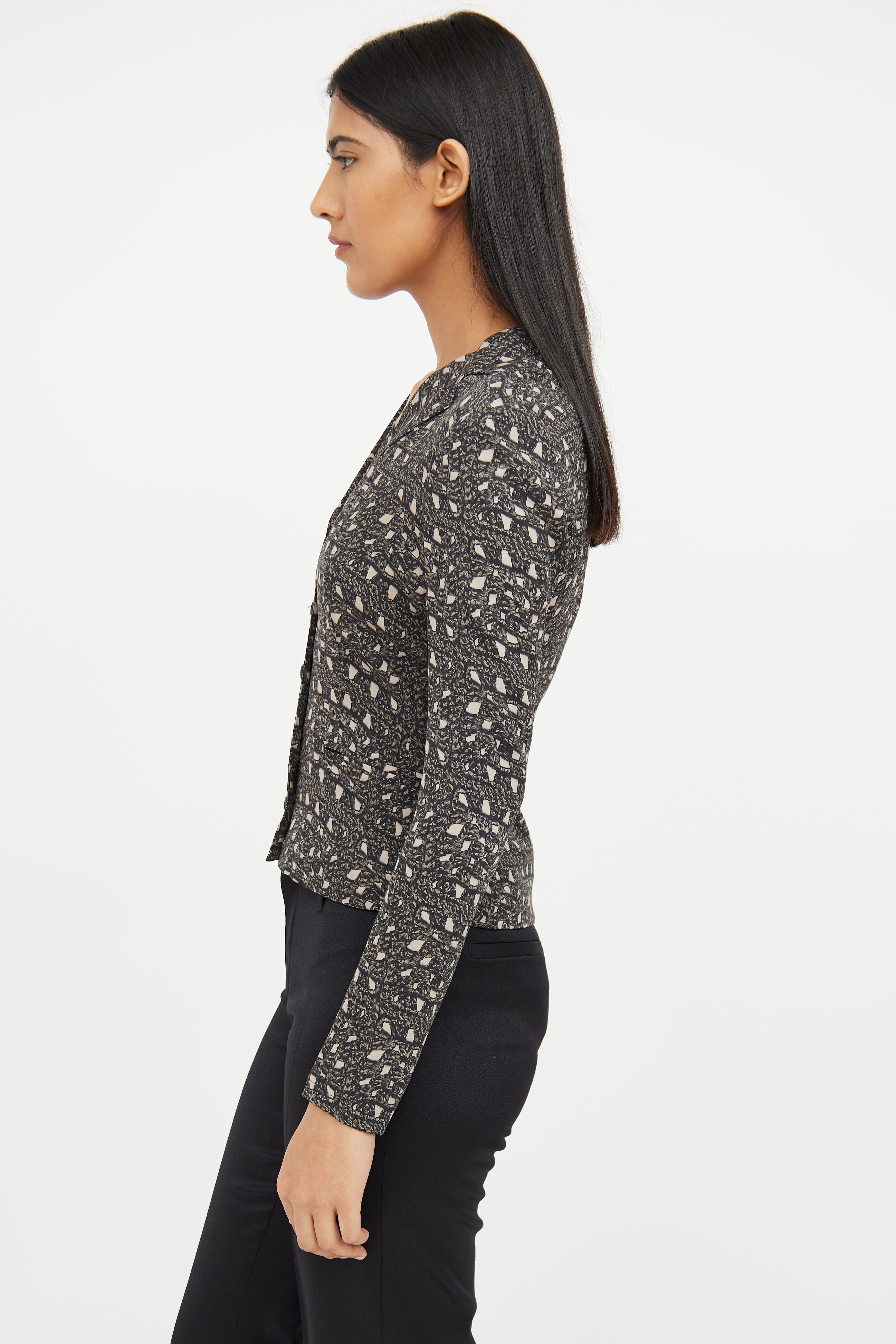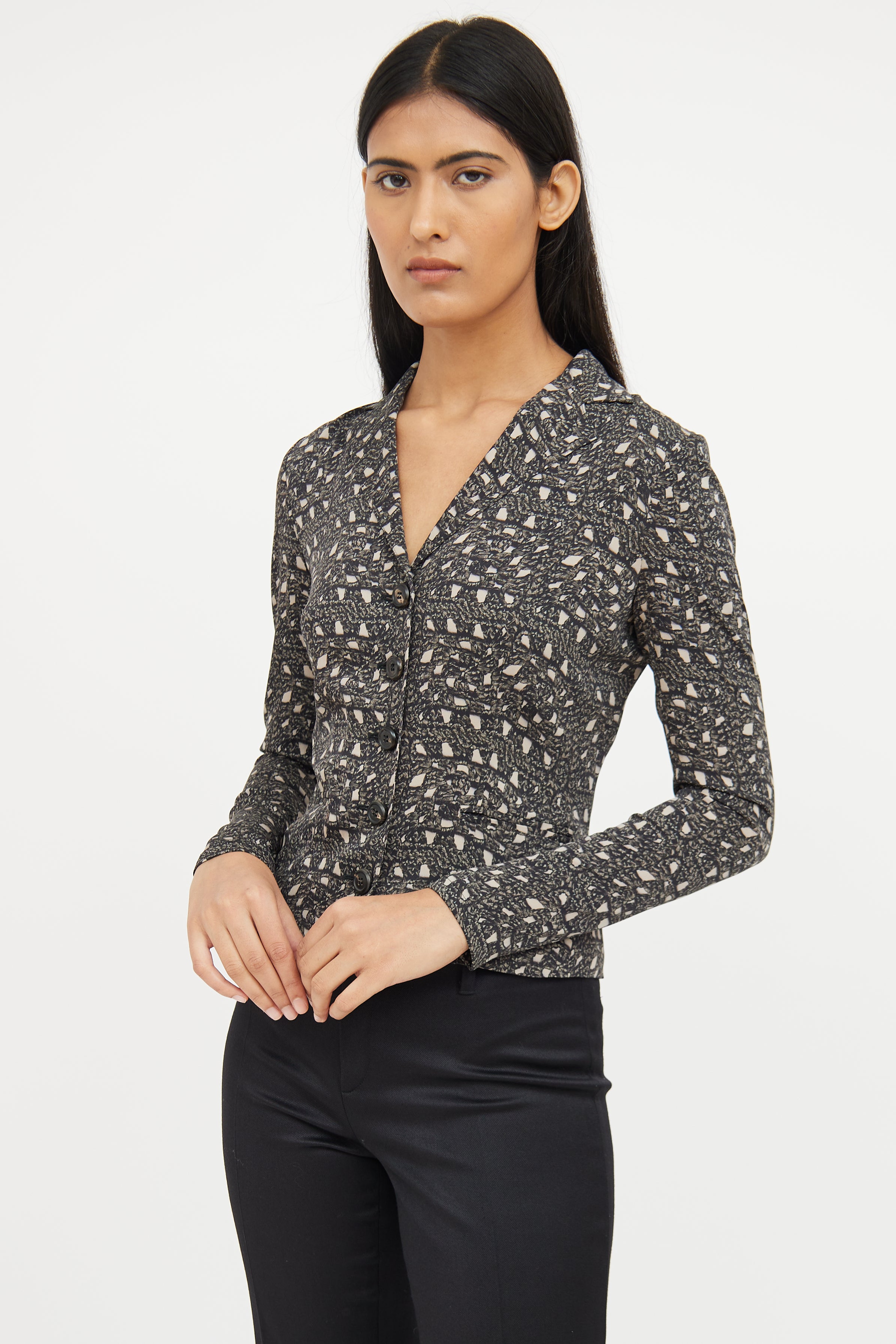 Pre-owned Dolce & Gabbana grey long sleeve shirt featuring notch lapel collar, button up, crop fit, abstract print and dual stitched pockets on waist.